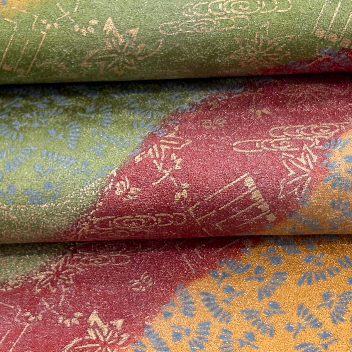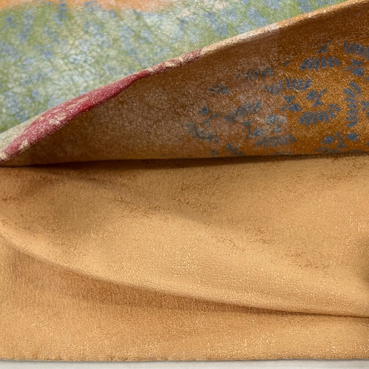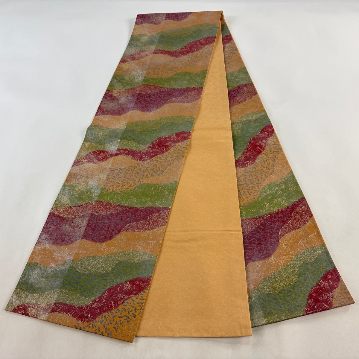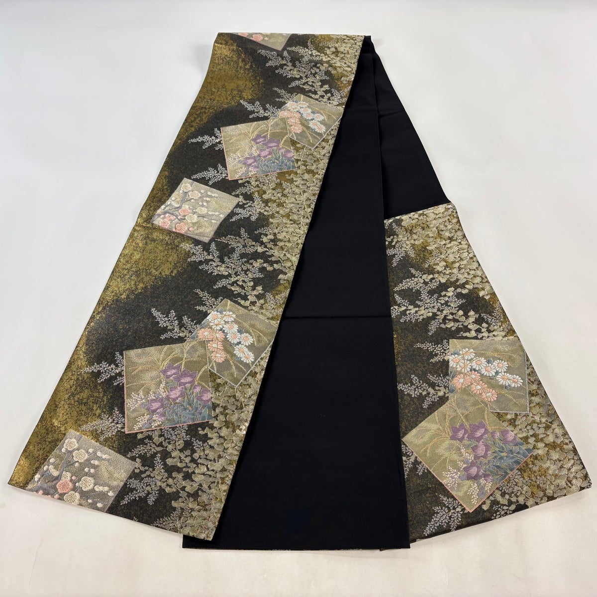 袋帯 逸品 じゅらく 落款あり 色紙 草花 唐織 金銀糸 金色 六通 正絹