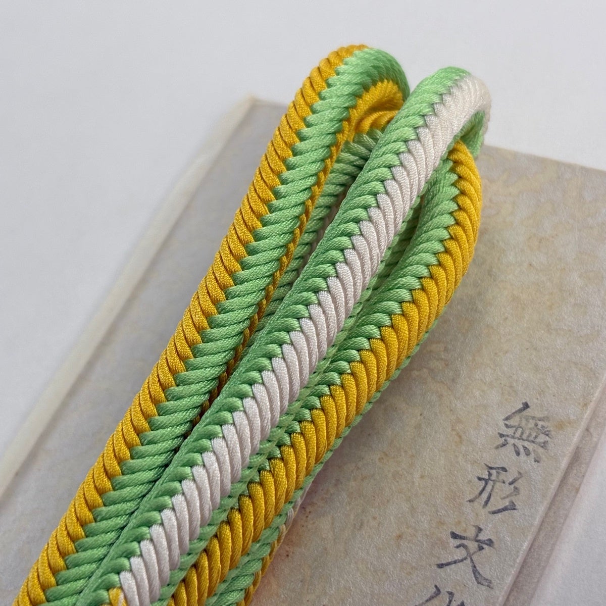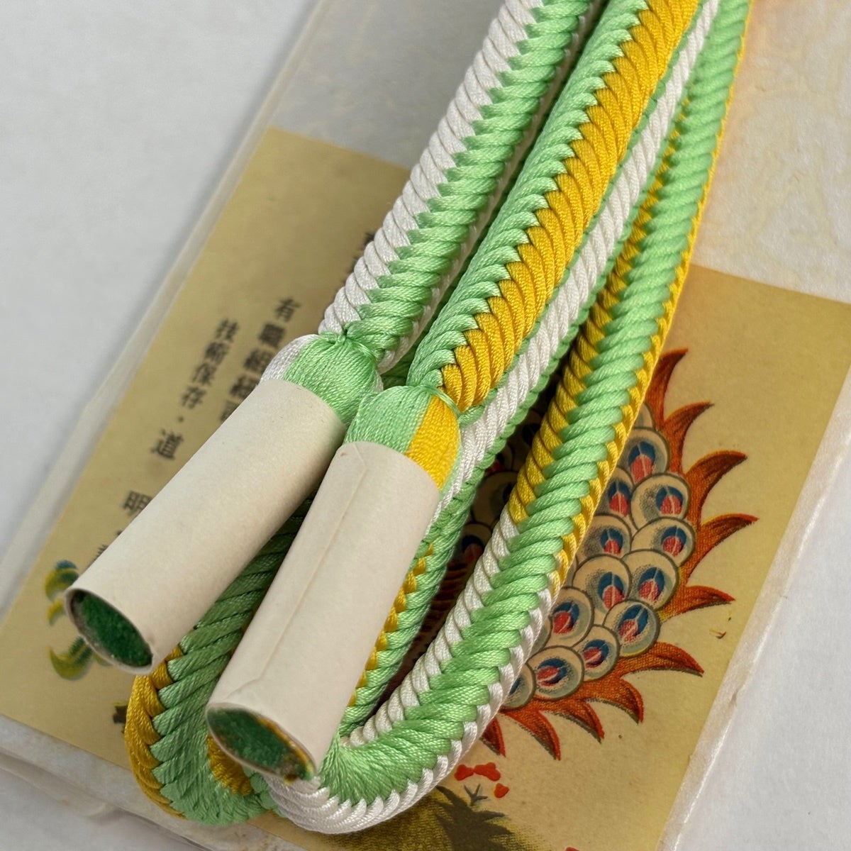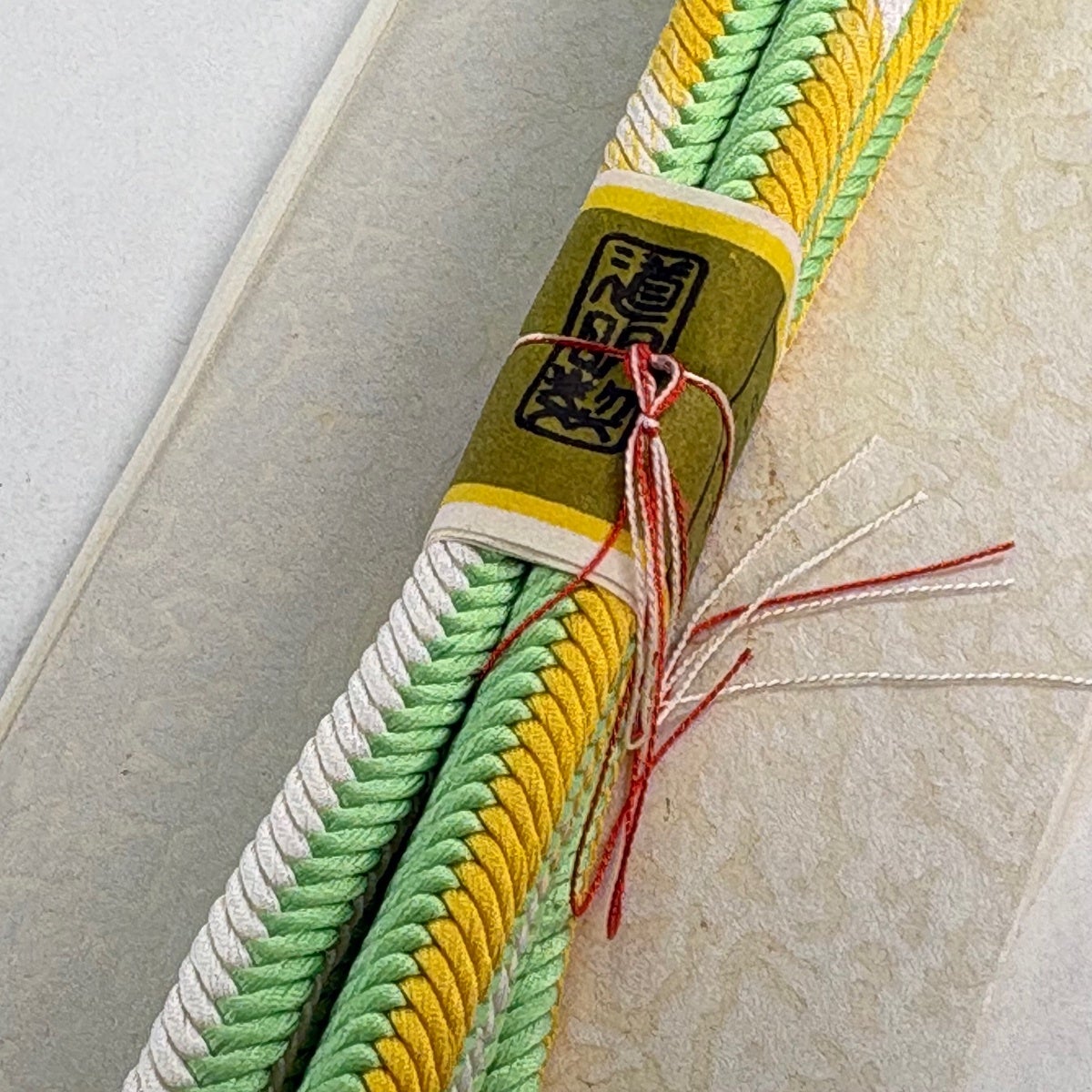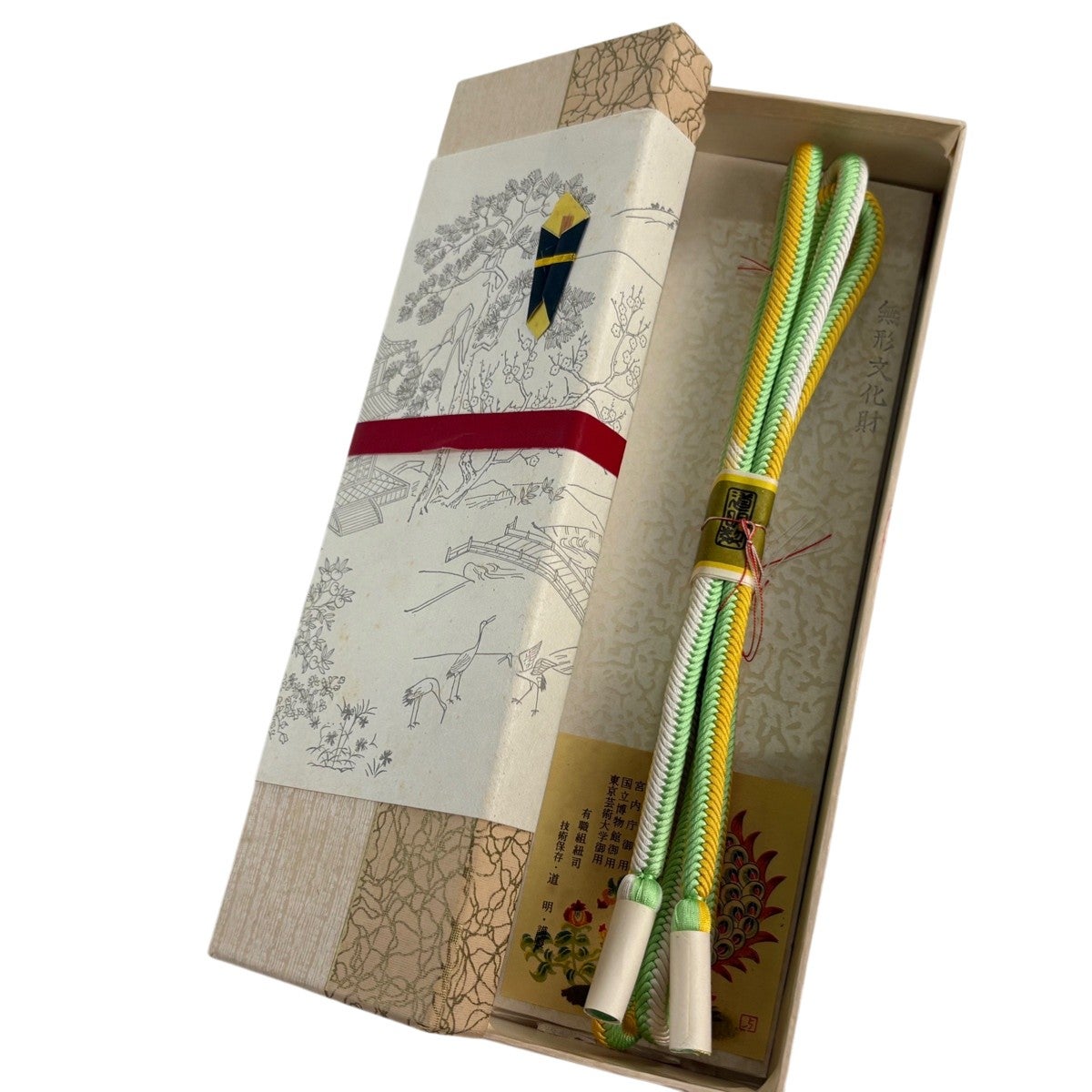 【美品】帯締め 逸品 無形文化財 有職組紐 道明 黄緑色 正絹 和装小物