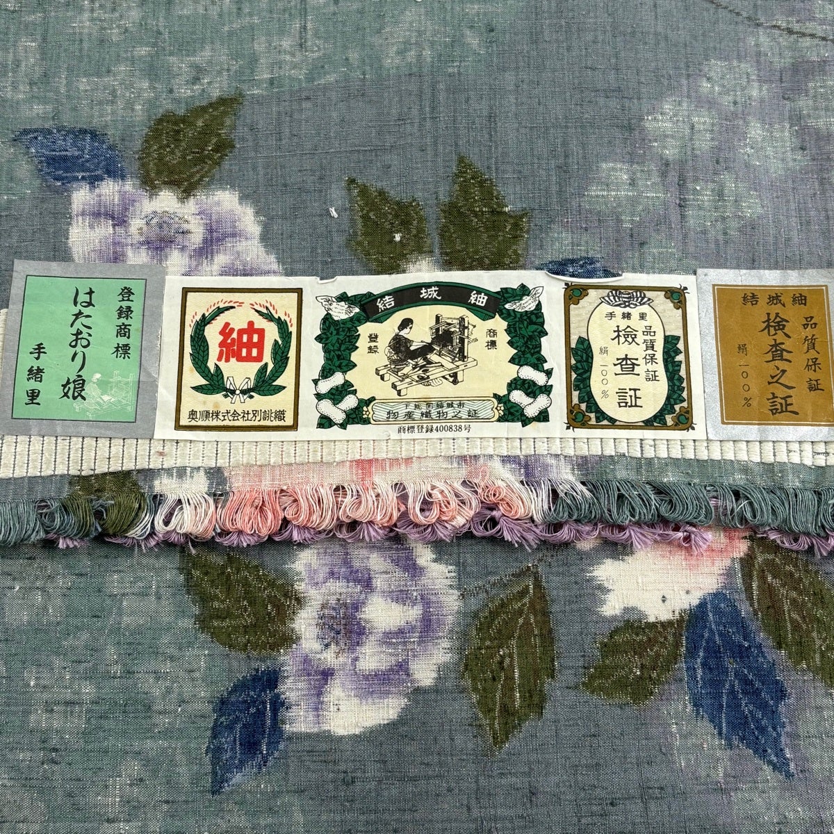 お召 身丈164.5cm 裄丈64cm M 袷 雪輪 花 灰色 正絹 逸品