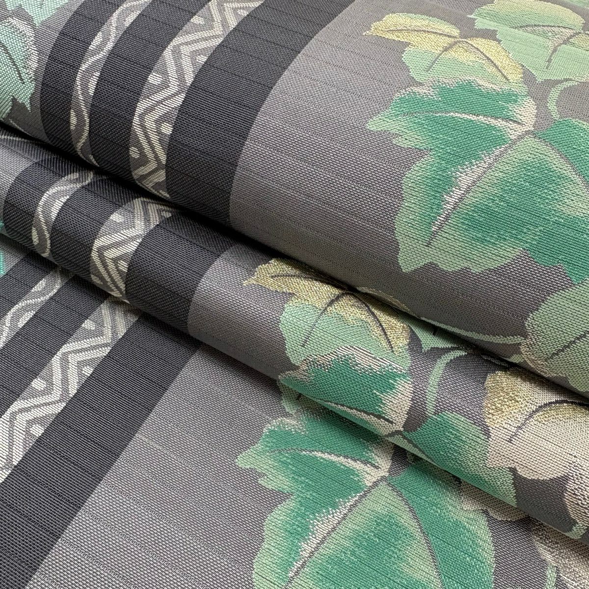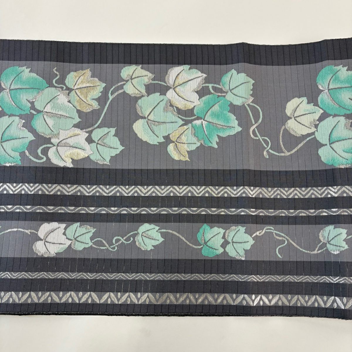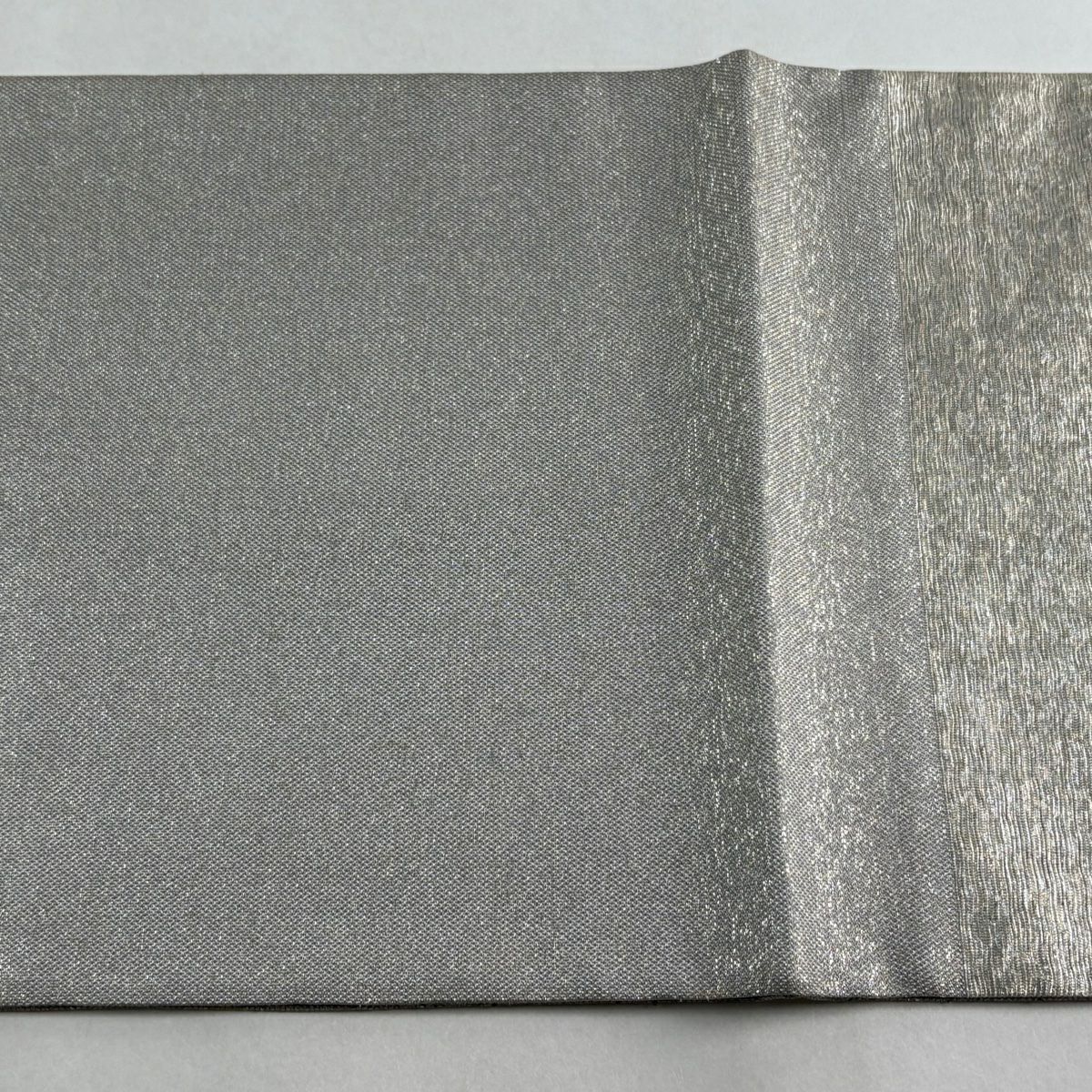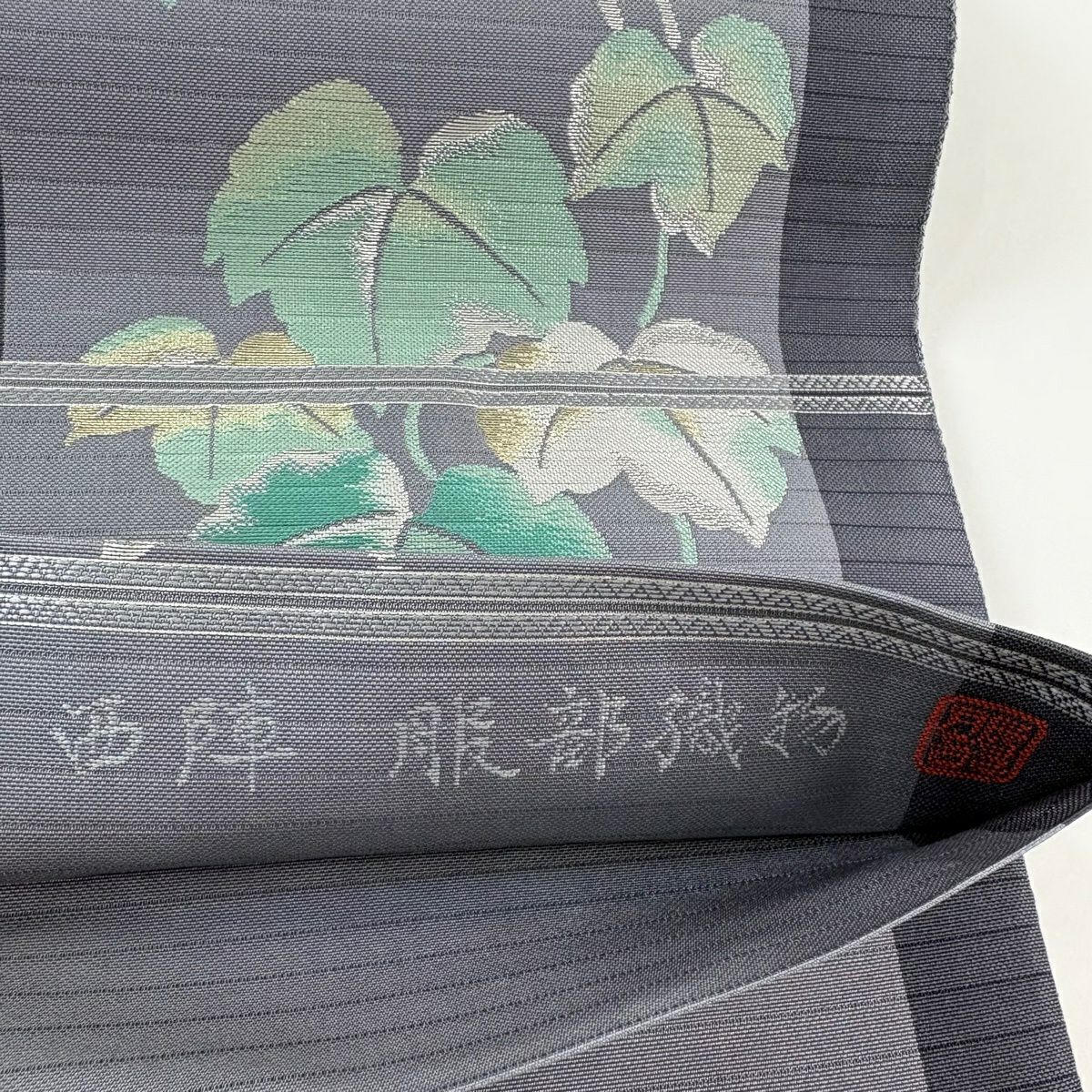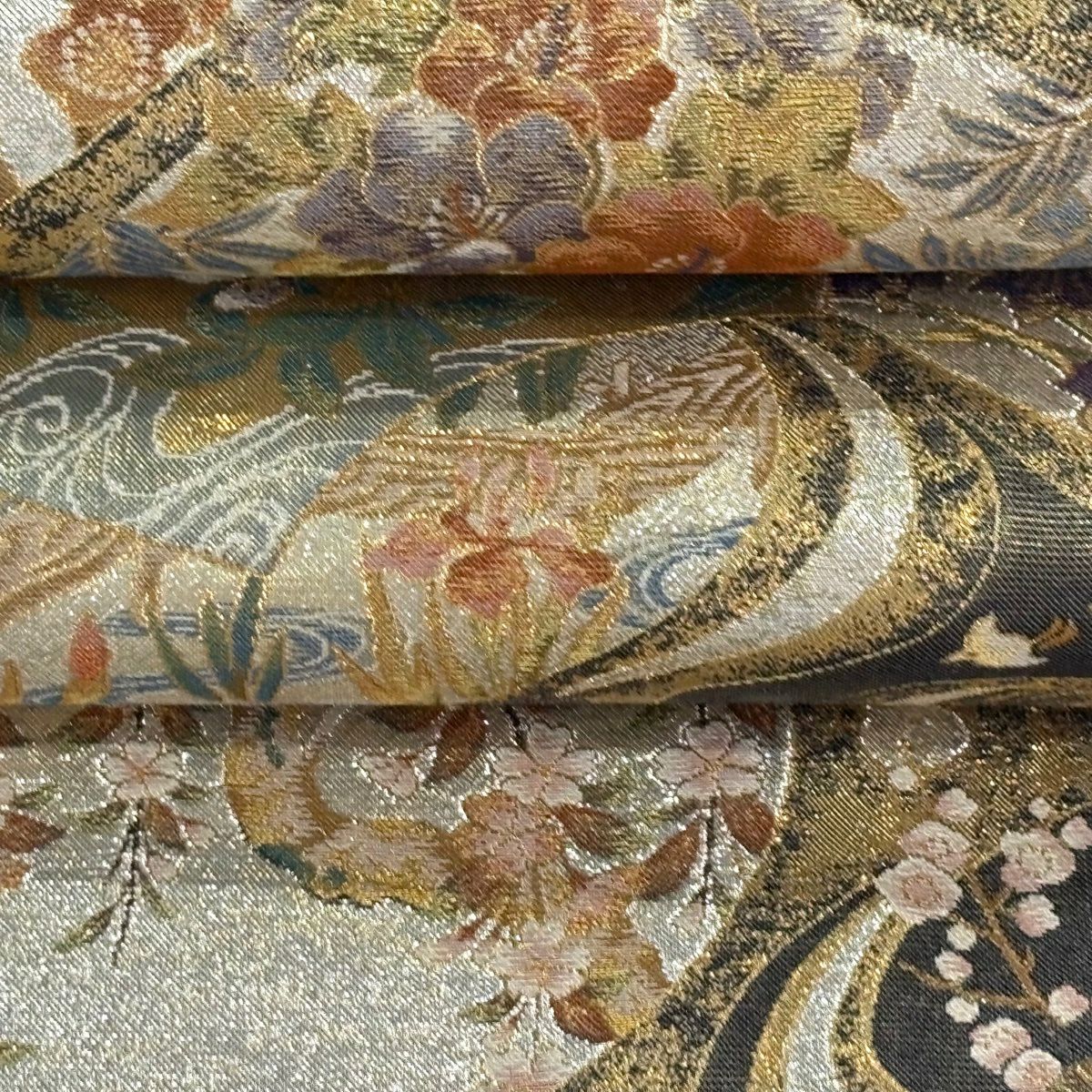 【在庫一掃】 袋帯 逸品 夏帯 草花 観世水 金銀糸 灰色 お太鼓柄 正絹