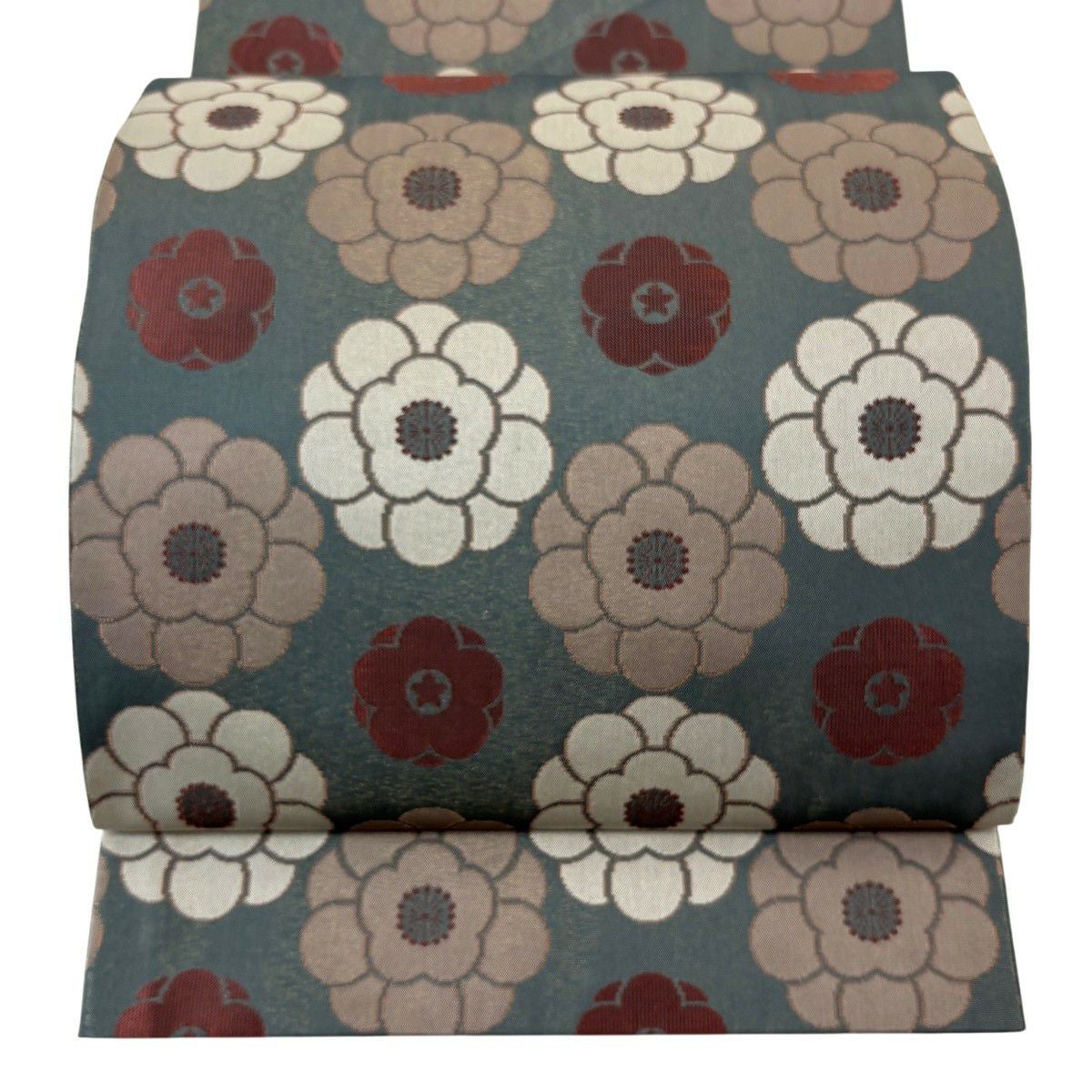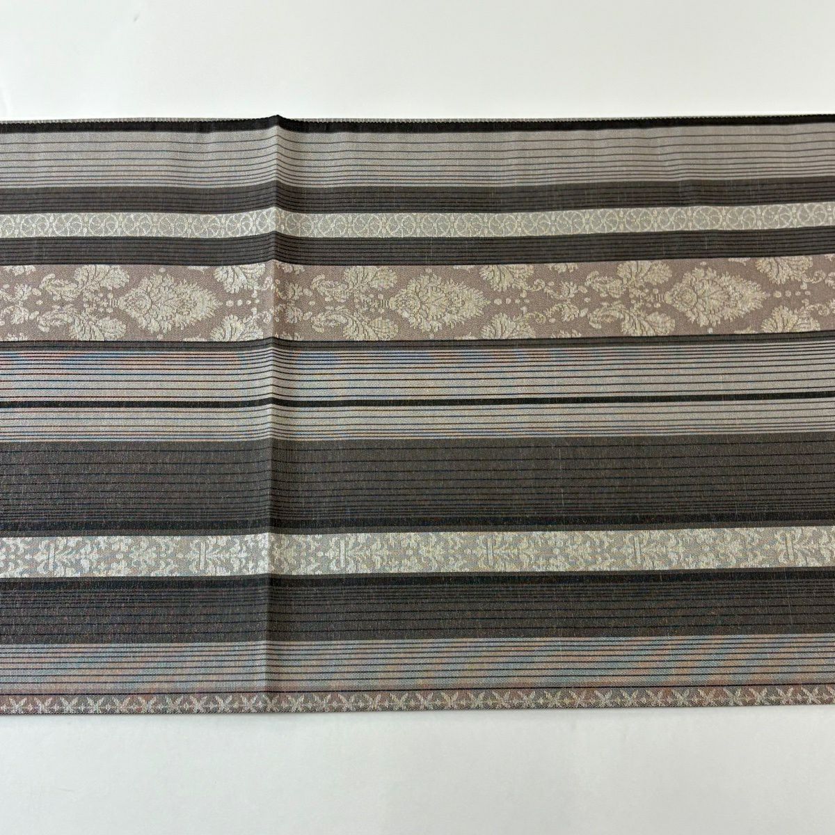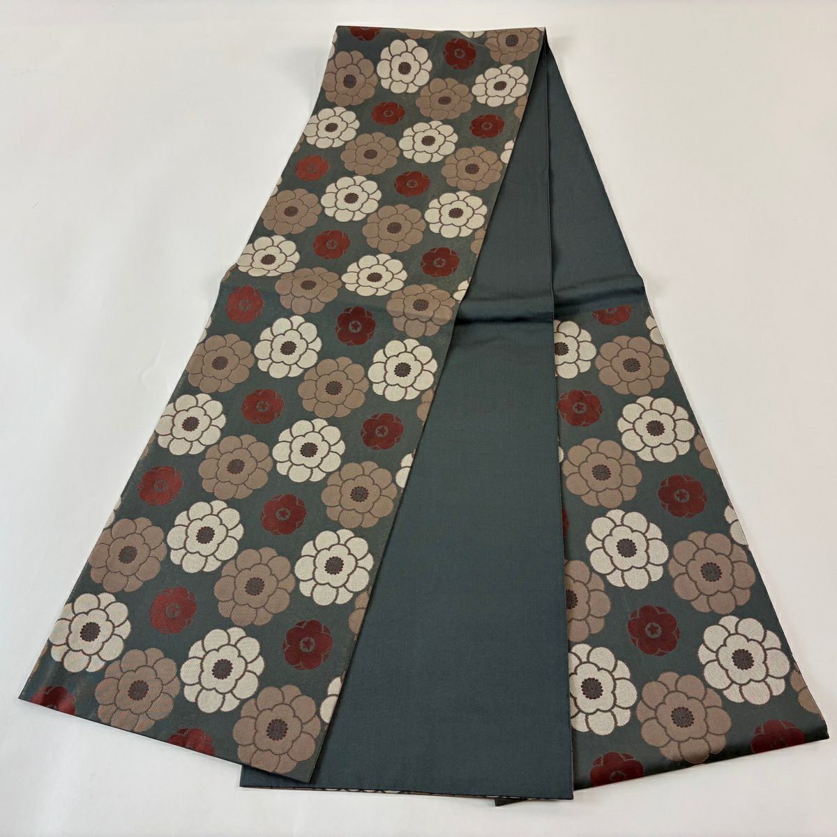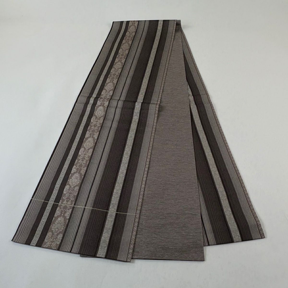 【在庫一掃】 袋帯 逸品 夏帯 草花 観世水 金銀糸 灰色 お太鼓柄 正絹