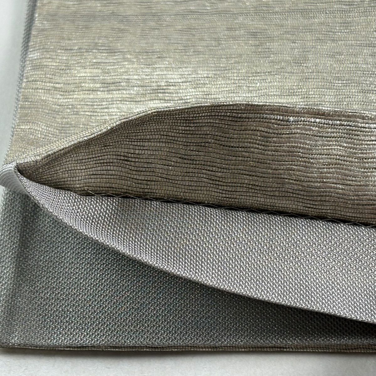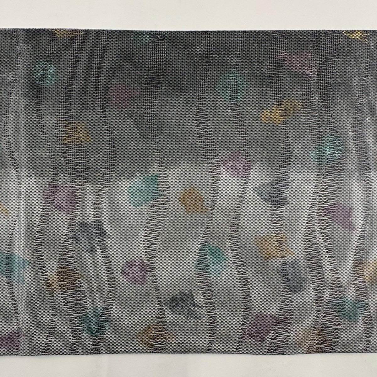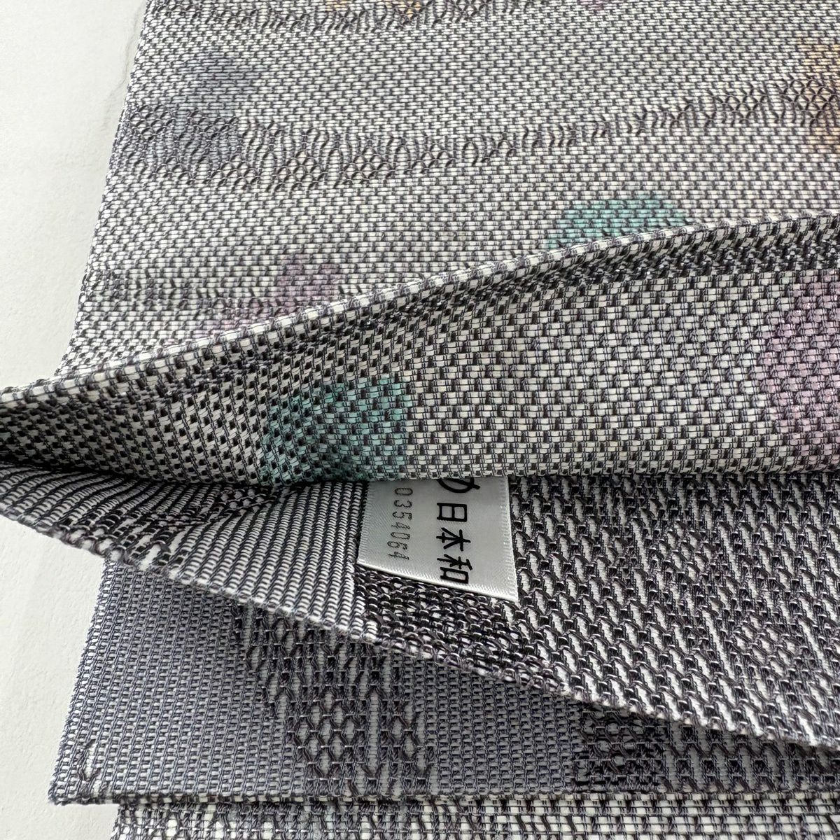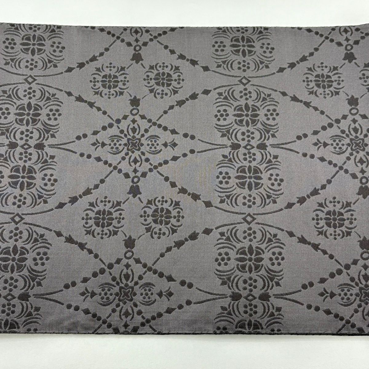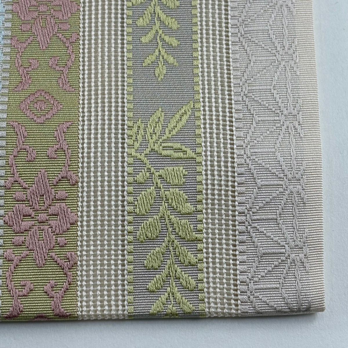 【在庫一掃】 袋帯 逸品 夏帯 草花 観世水 金銀糸 灰色 お太鼓柄 正絹