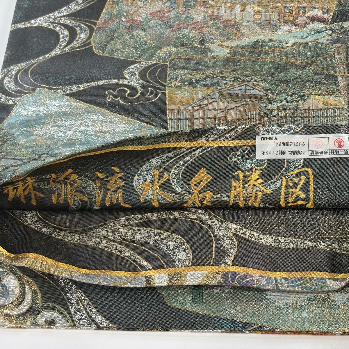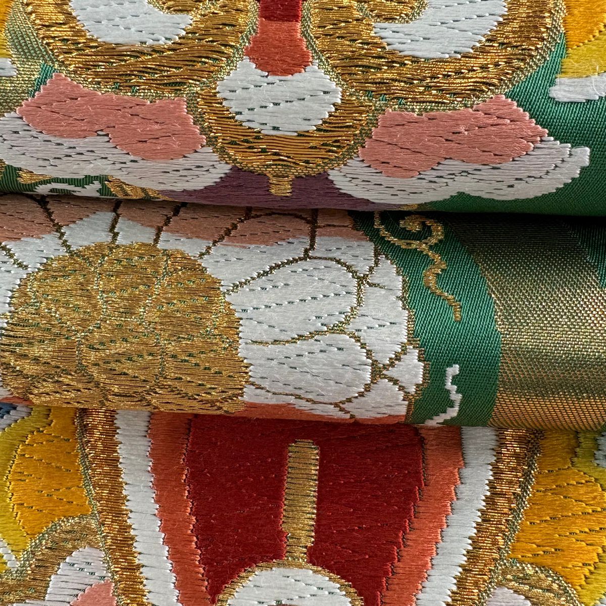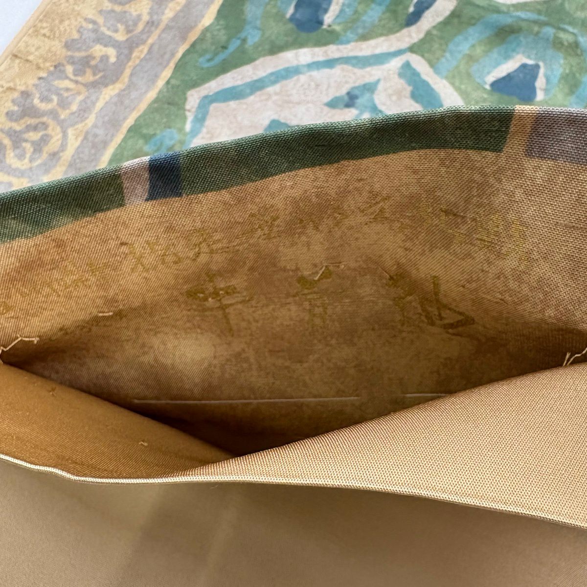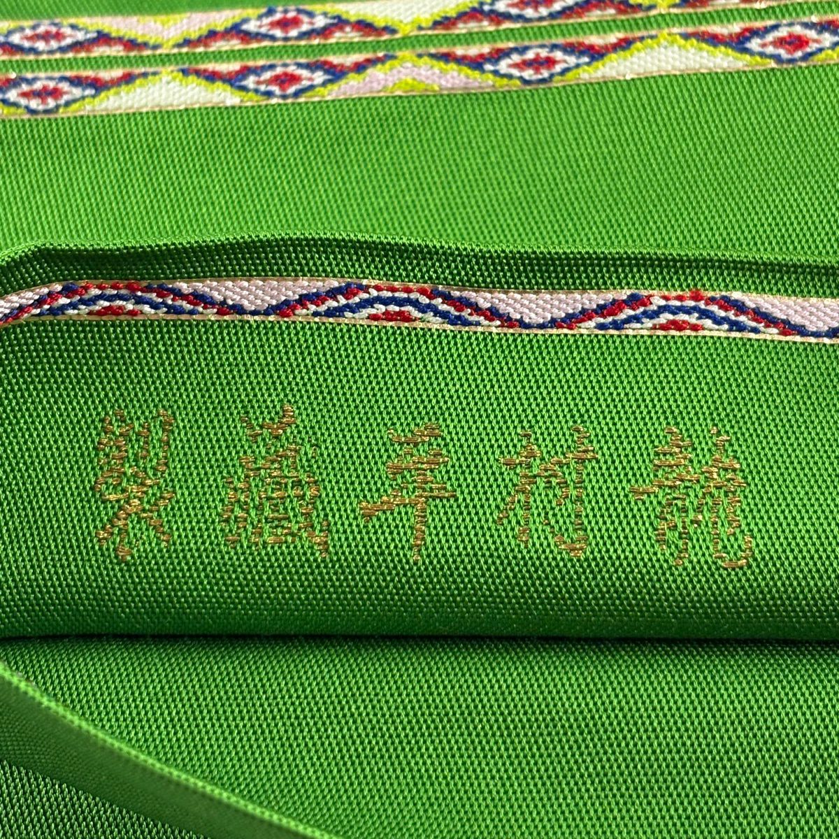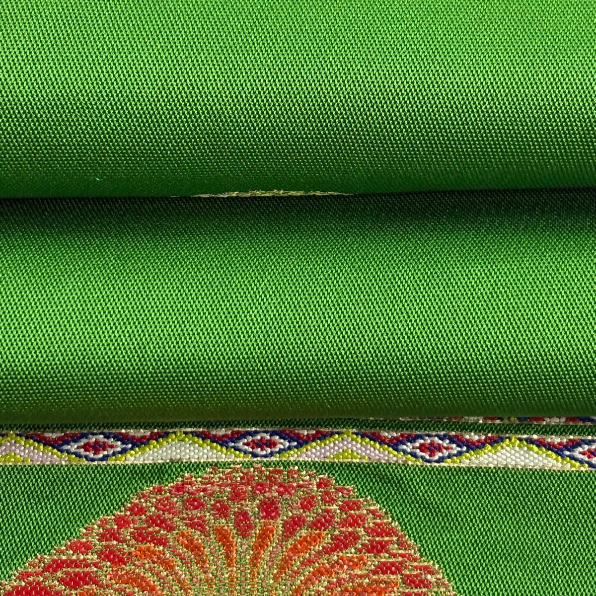 袋帯 逸品 河合美術織物 落款あり 華文 立涌 金糸 唐織 緑 六通 正絹
