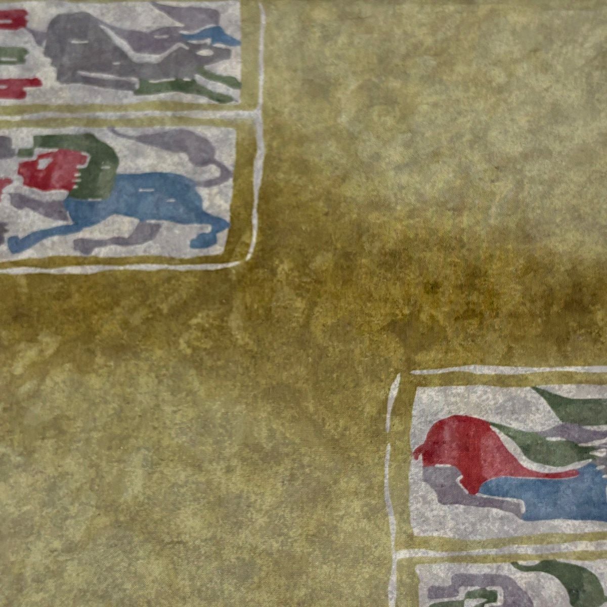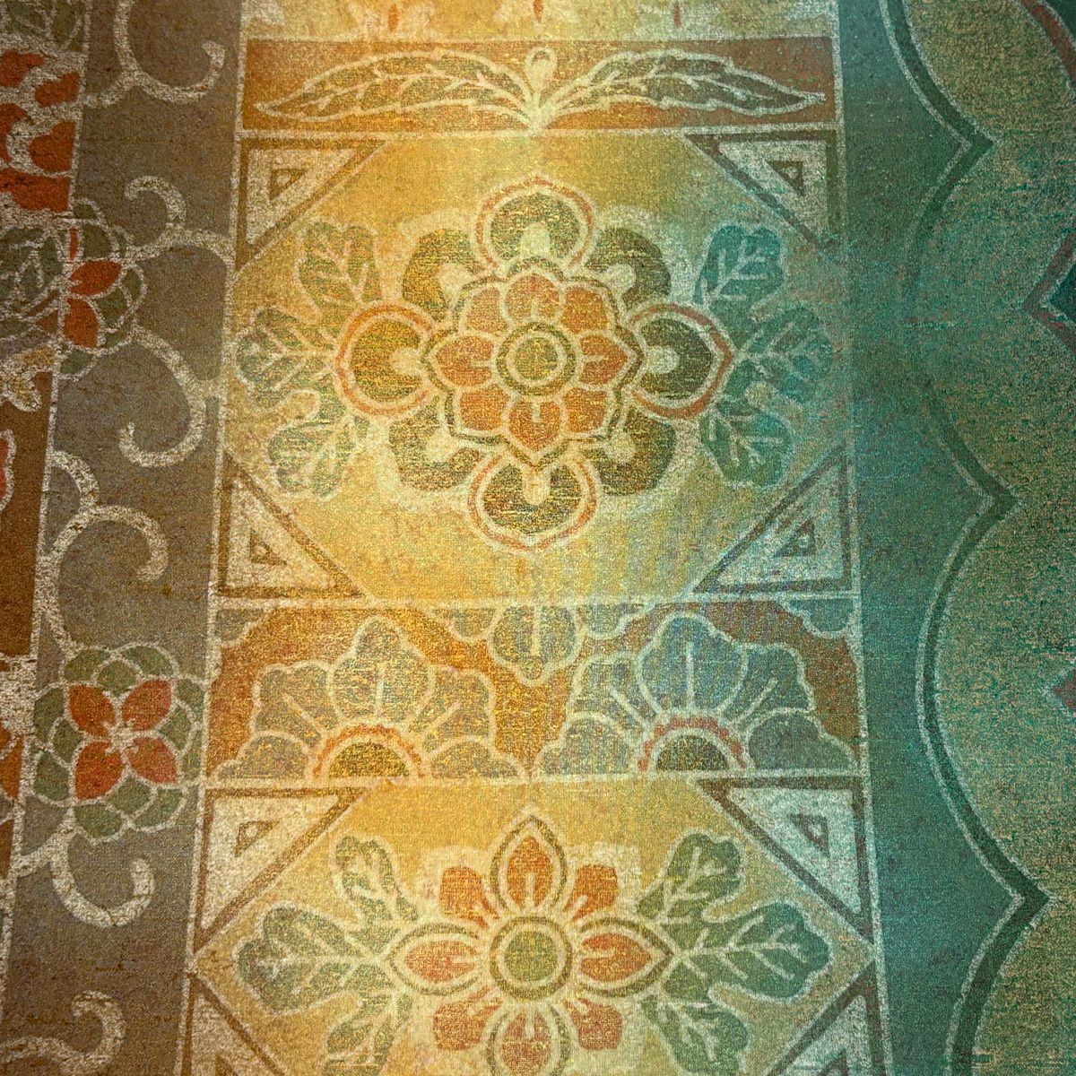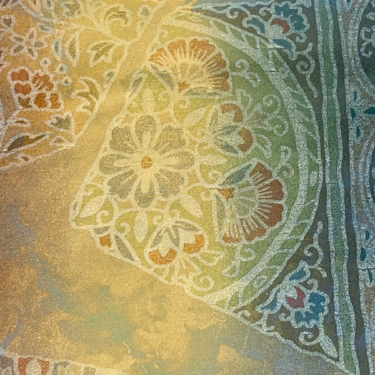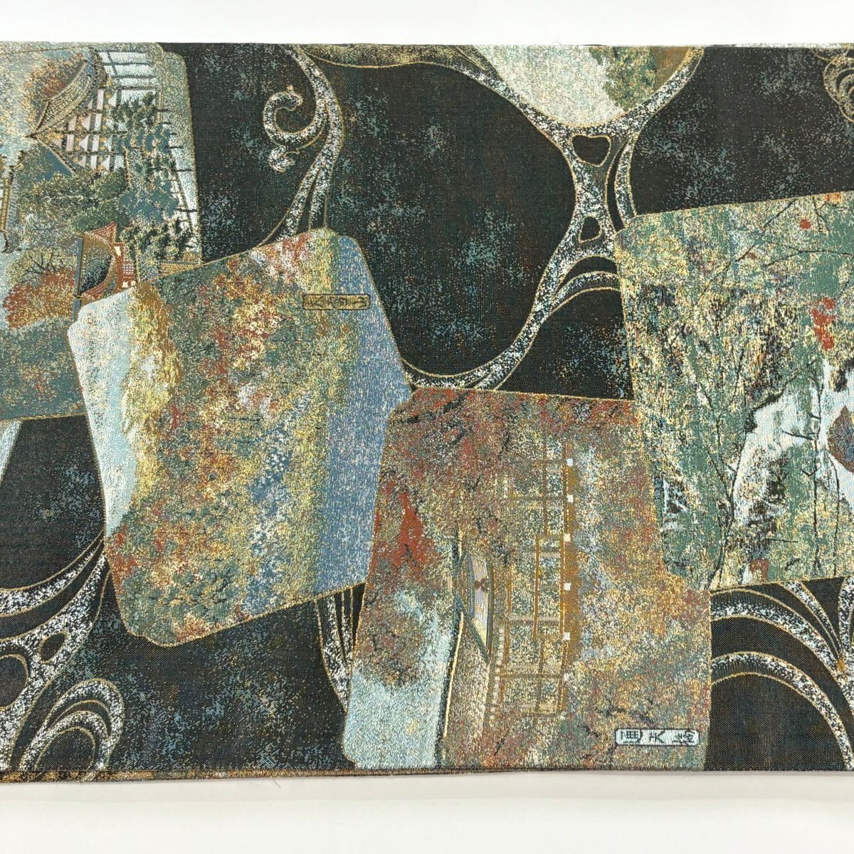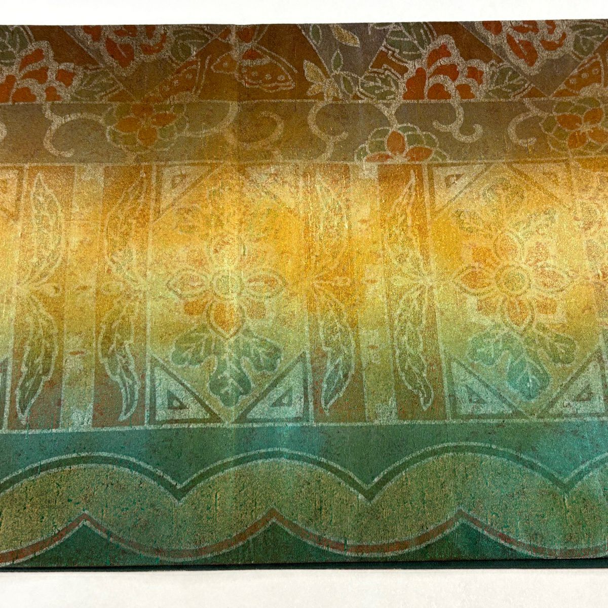 袋帯 逸品 河合美術織物 落款あり 華文 立涌 金糸 唐織 緑 六通 正絹