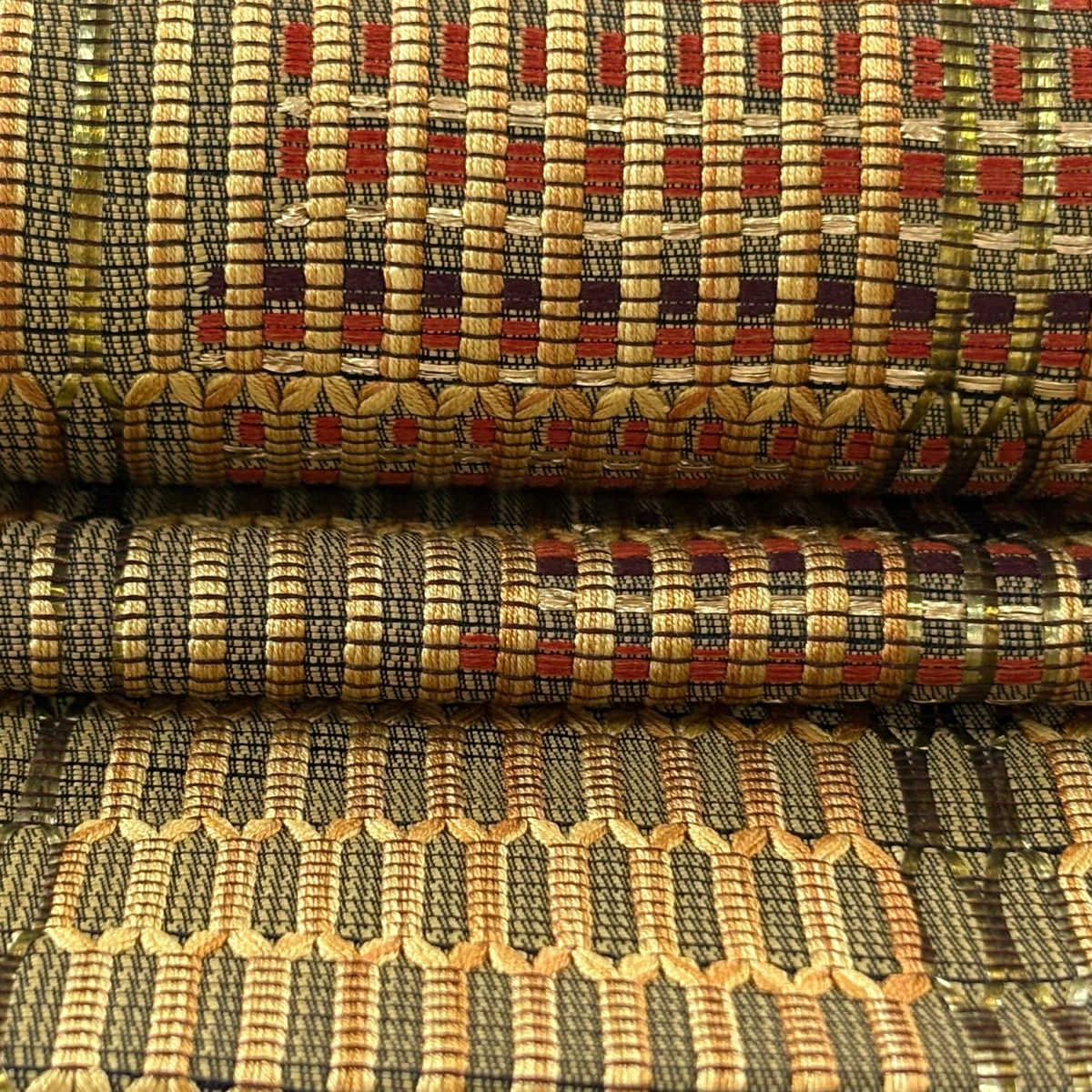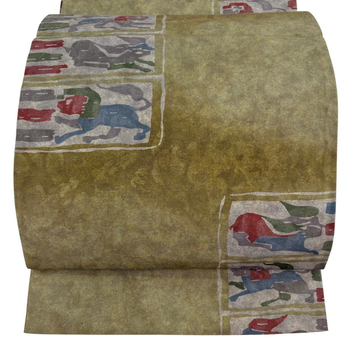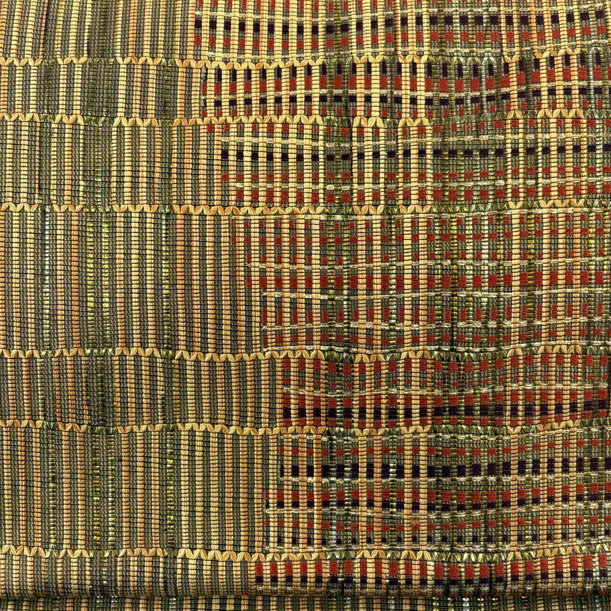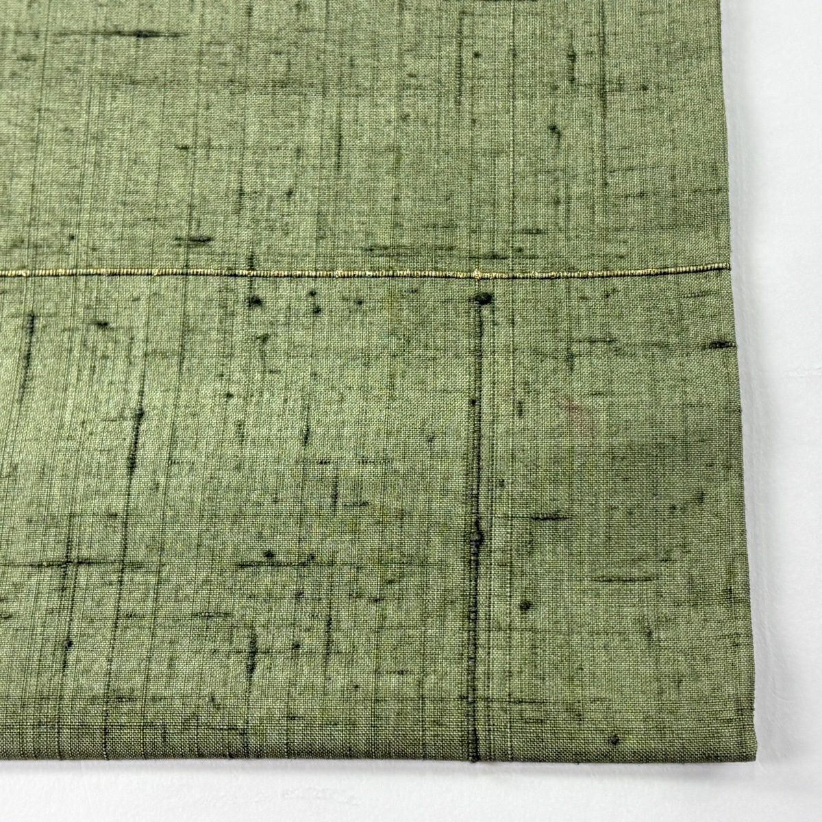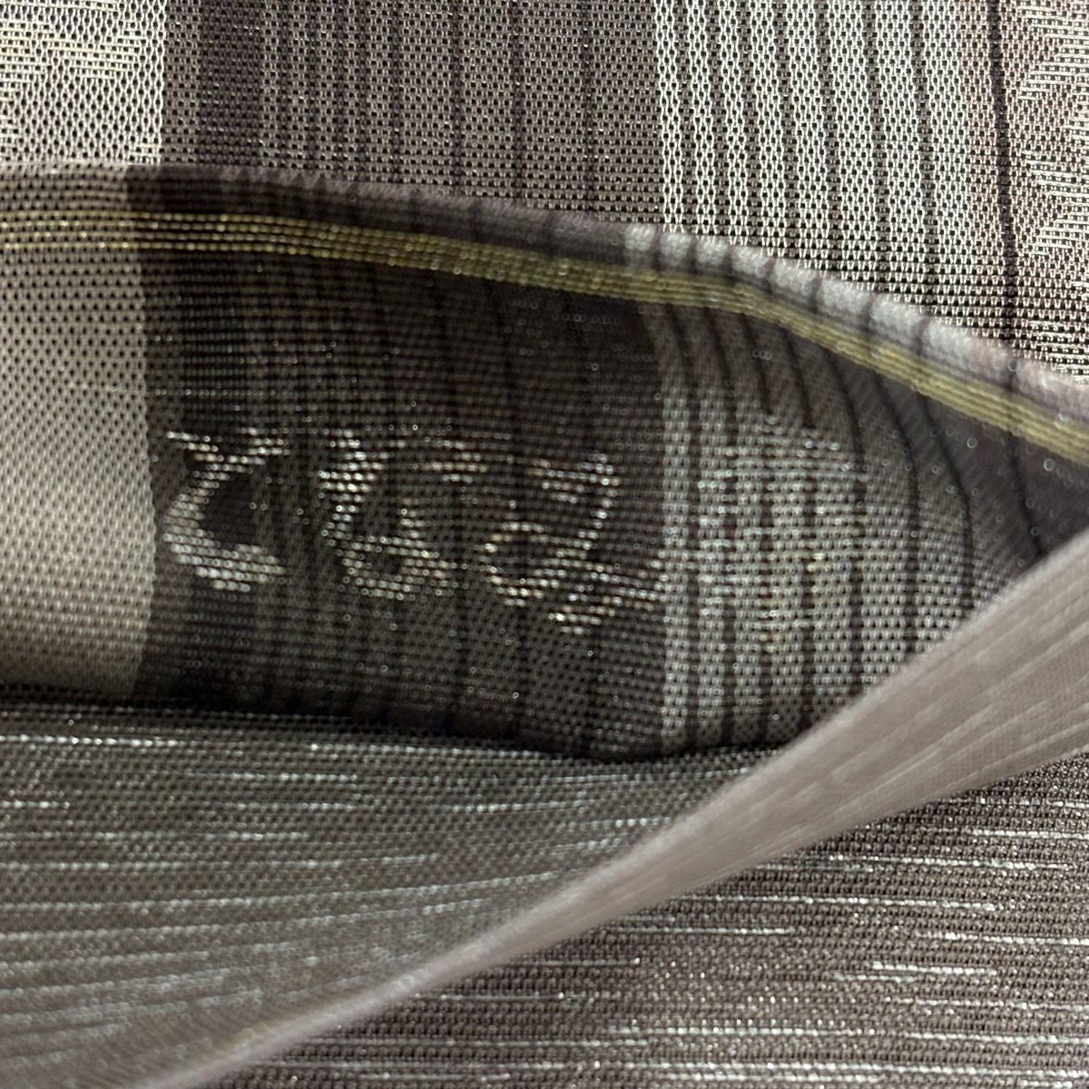 【美品】 袋帯 逸品 証紙あり 博多織 幾何学模様 箔 茶緑色 六通 正絹