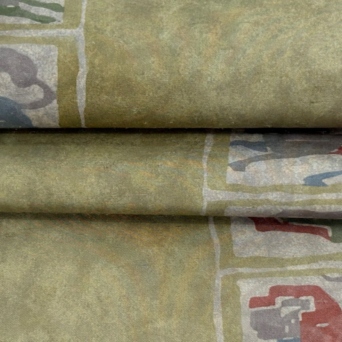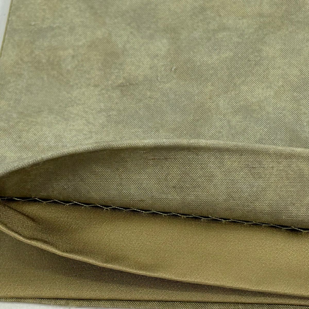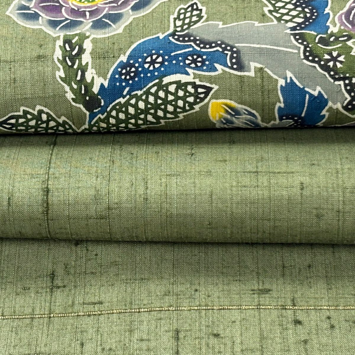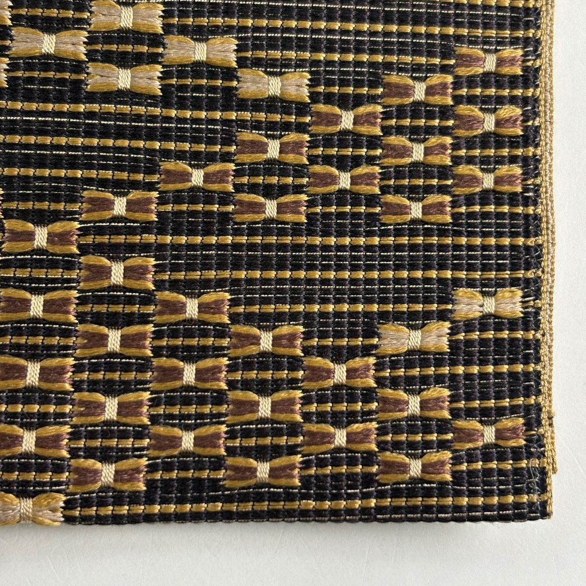 【美品】 袋帯 逸品 証紙あり 博多織 幾何学模様 箔 茶緑色 六通 正絹