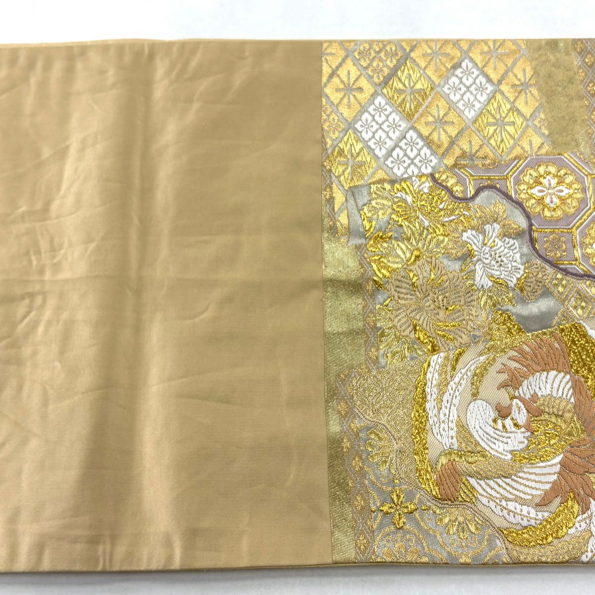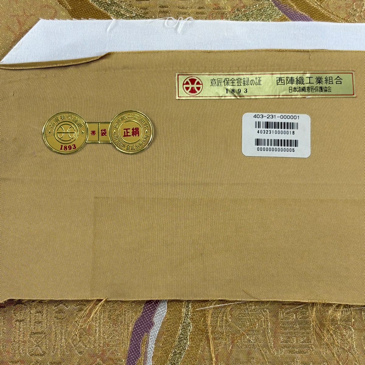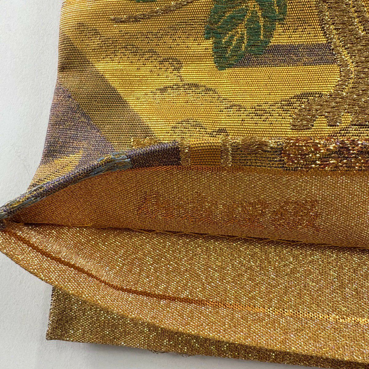 袋帯 逸品 佐波理 落款あり 蜀江祭華図 花鳥 唐織 箔 金色 六通 正絹