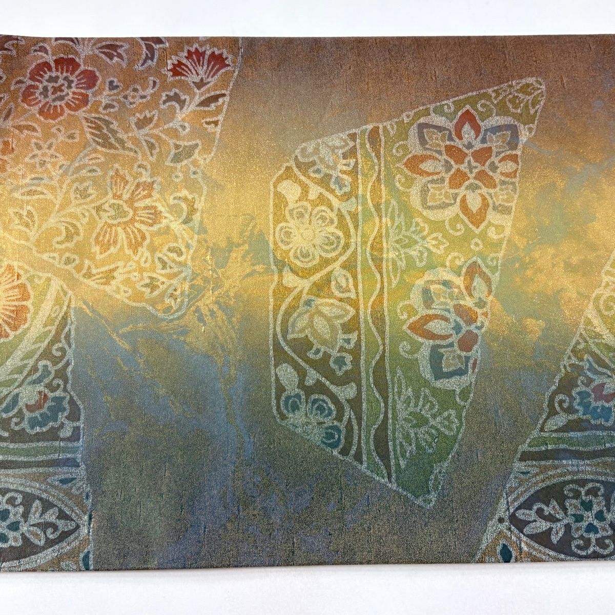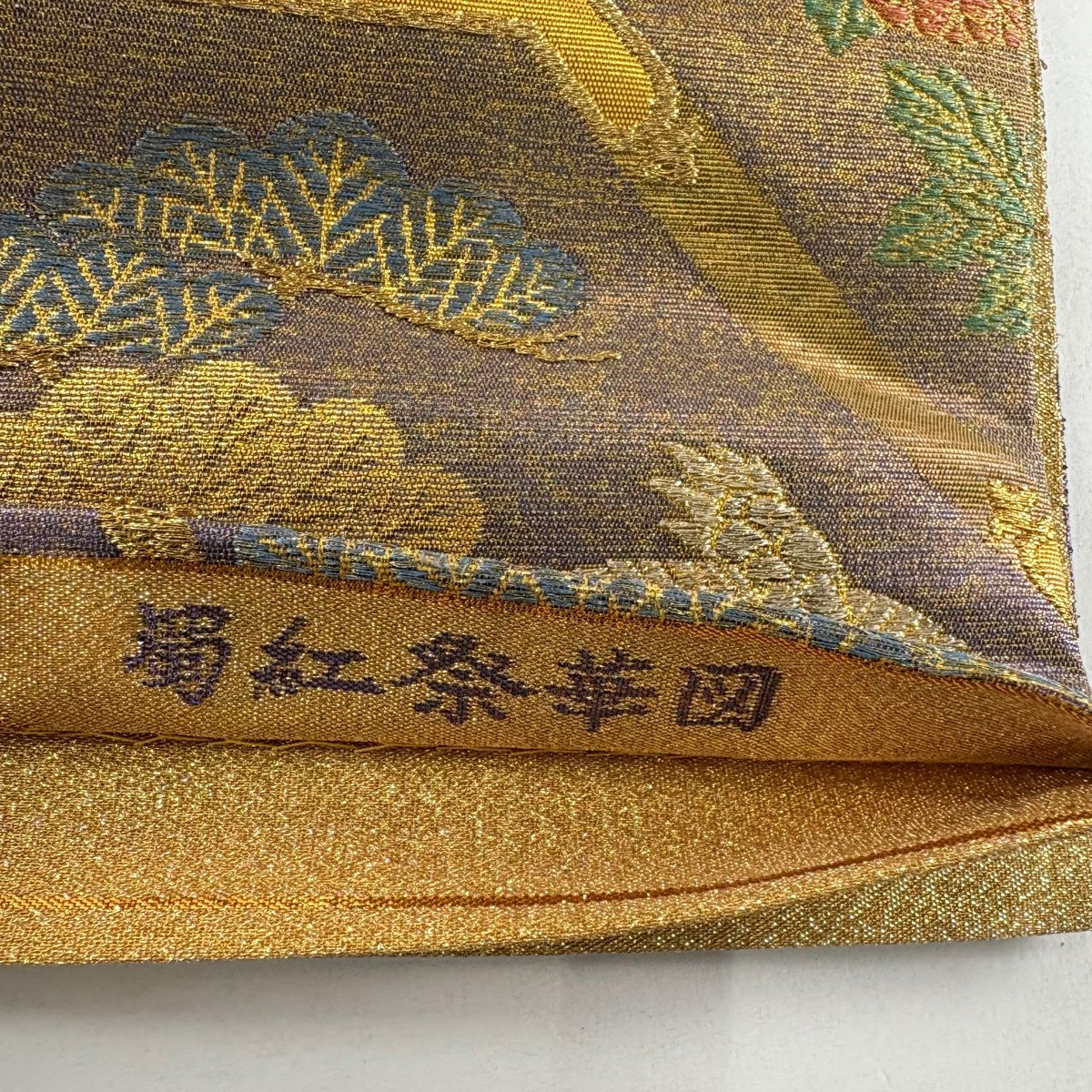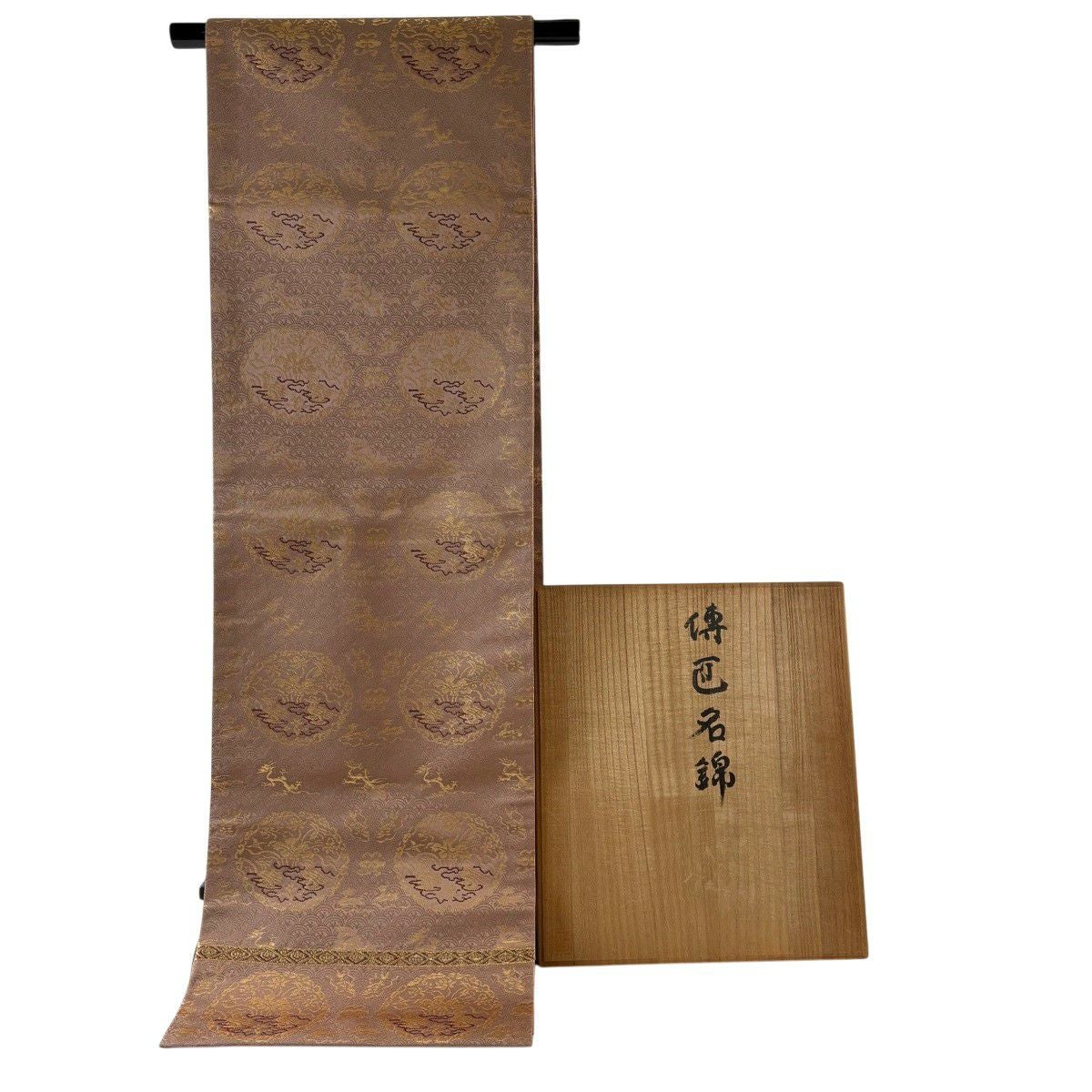 袋帯 逸品 佐波理 落款あり 蜀江祭華図 花鳥 唐織 箔 金色 六通 正絹