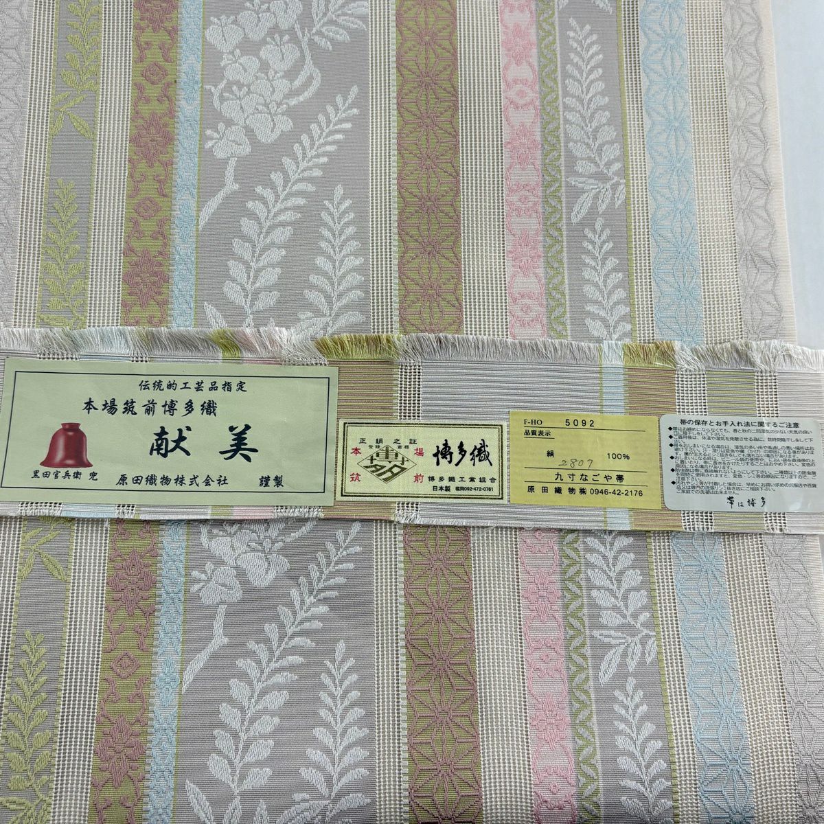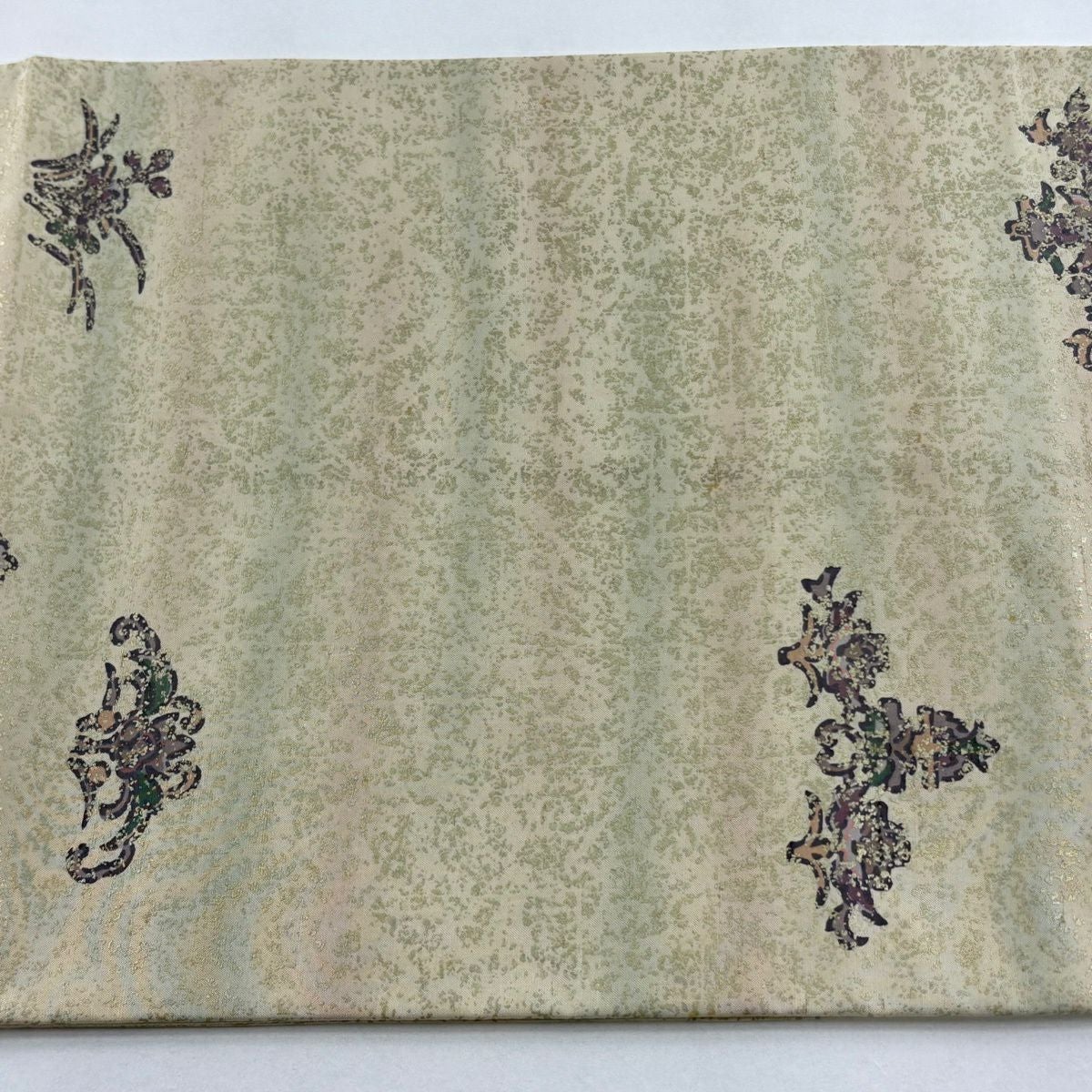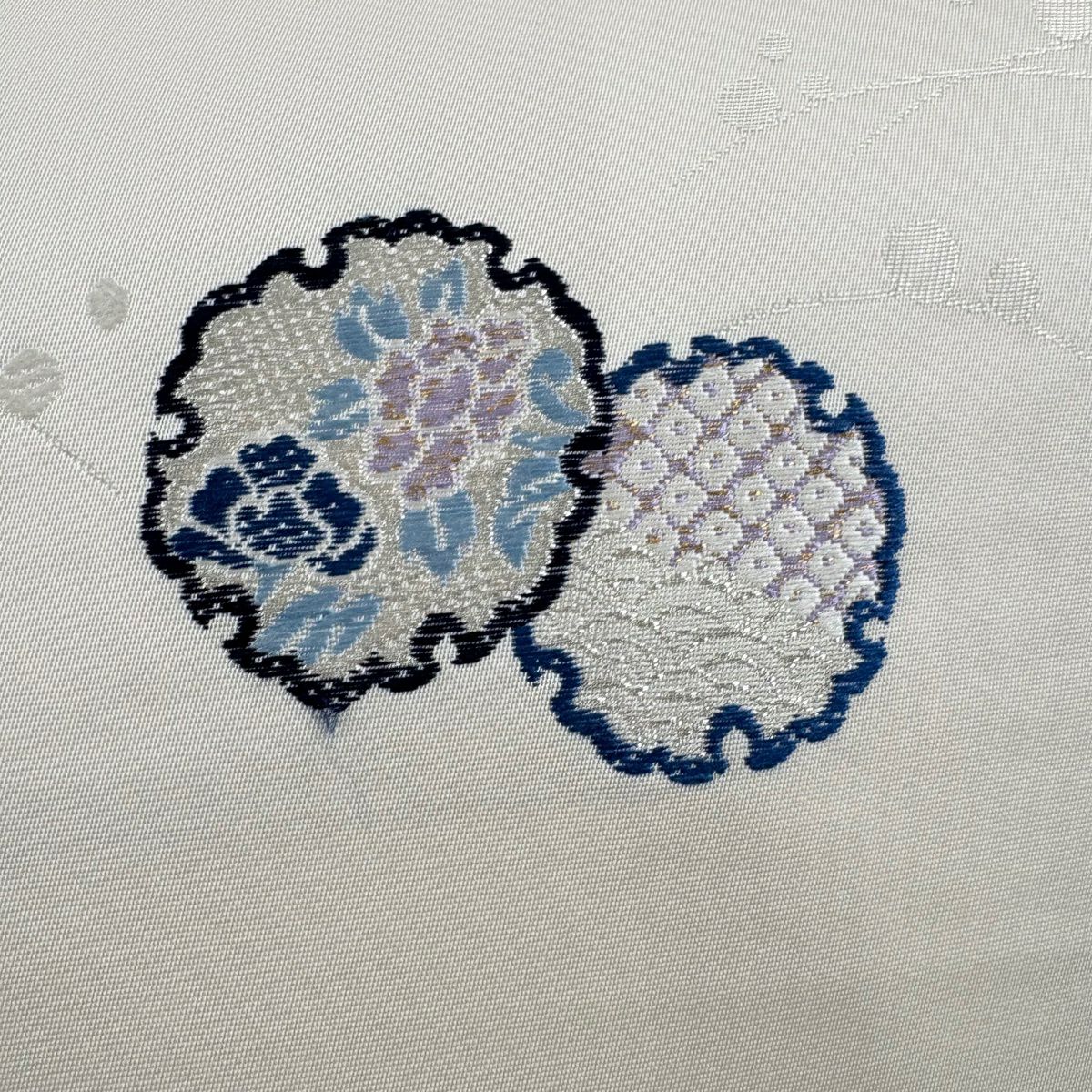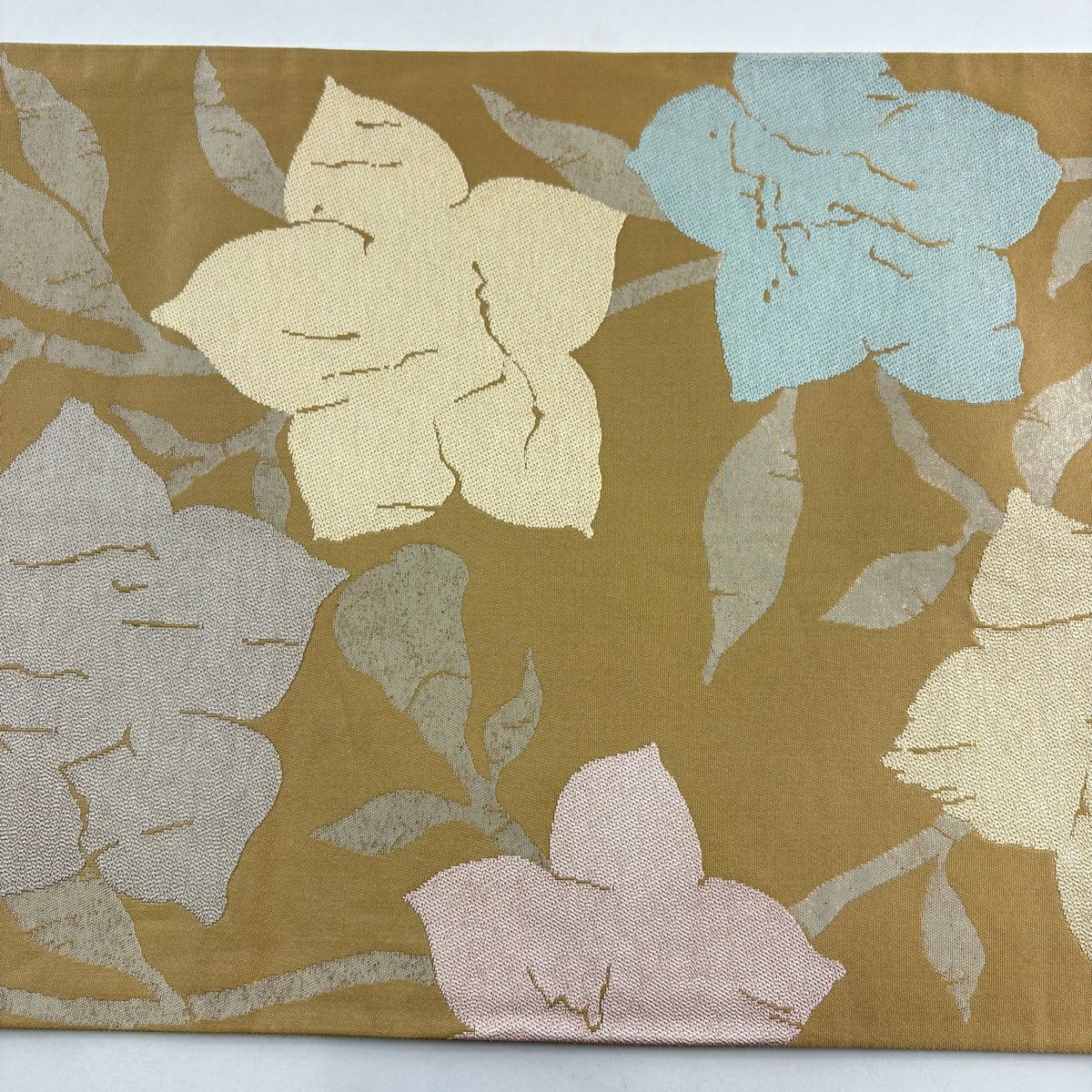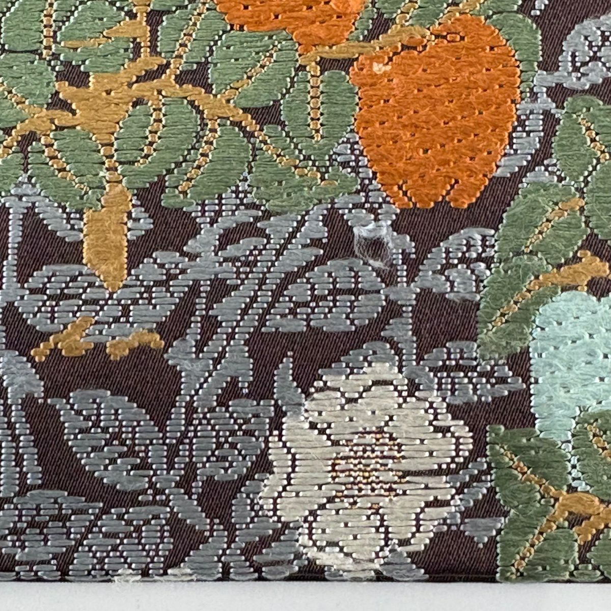 【在庫一掃】 袋帯 逸品 証紙あり 草花 花菱 唐織 クリーム 六通 正絹