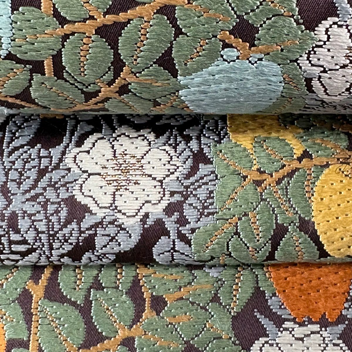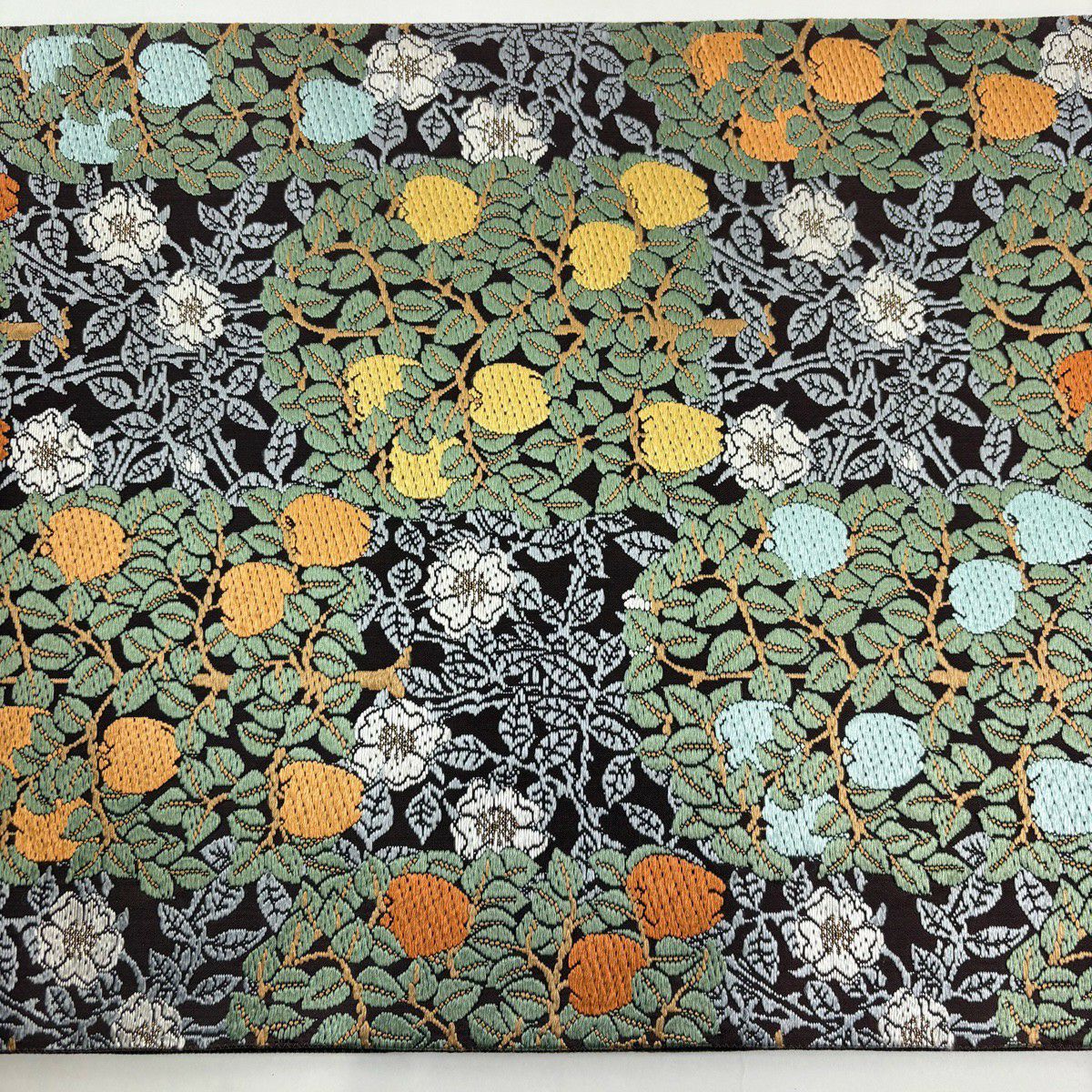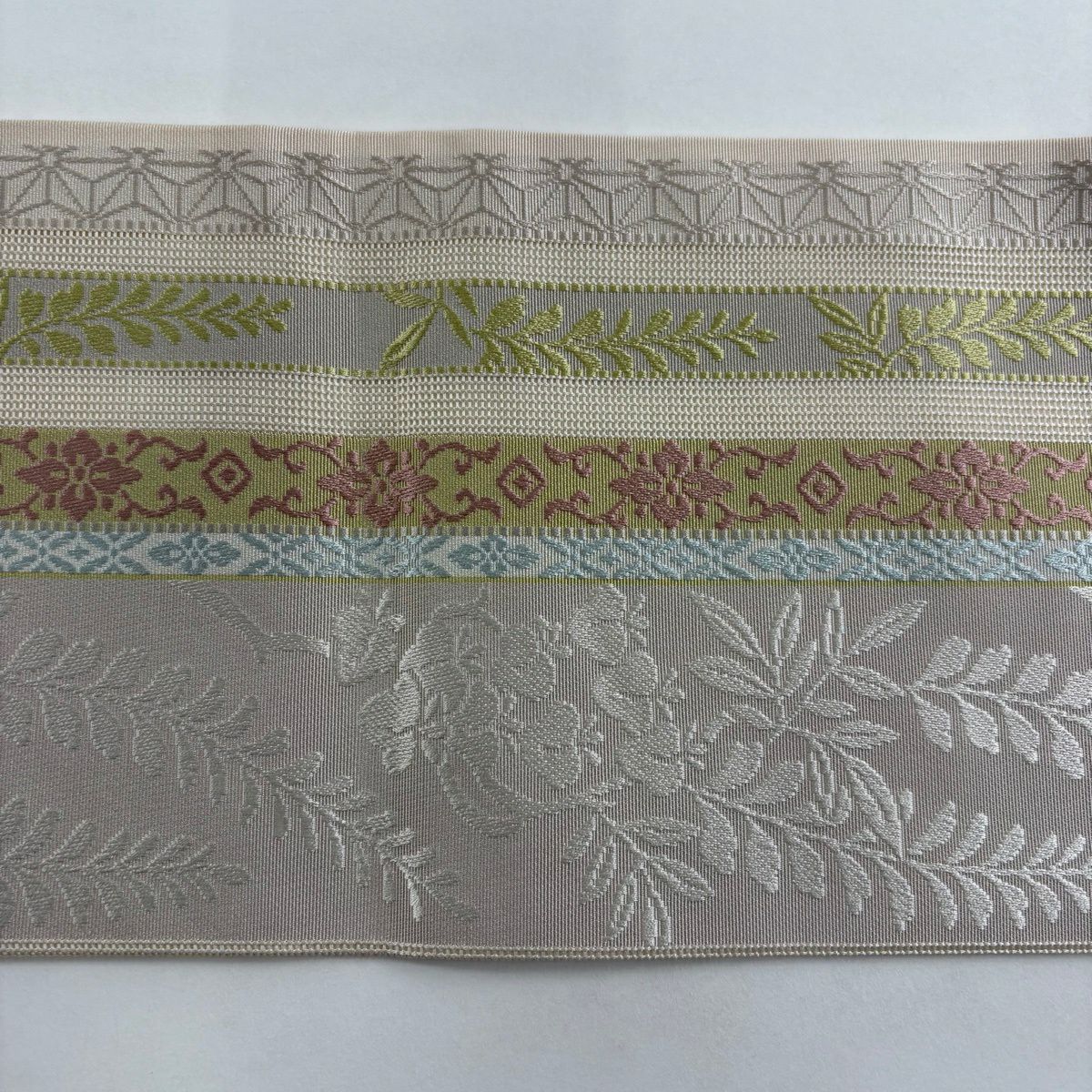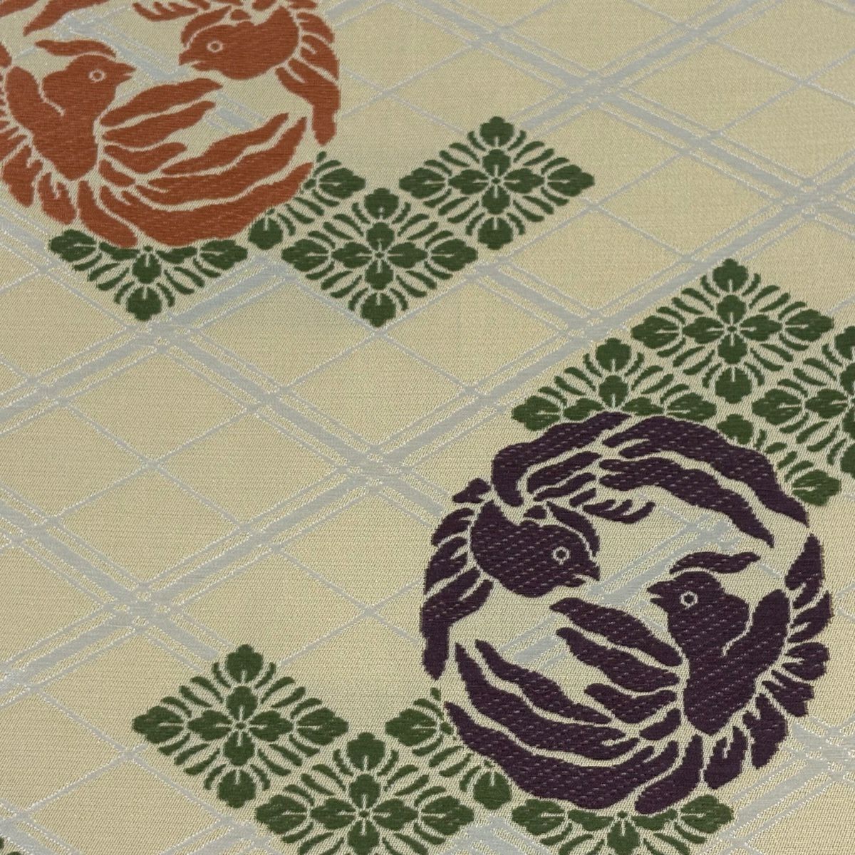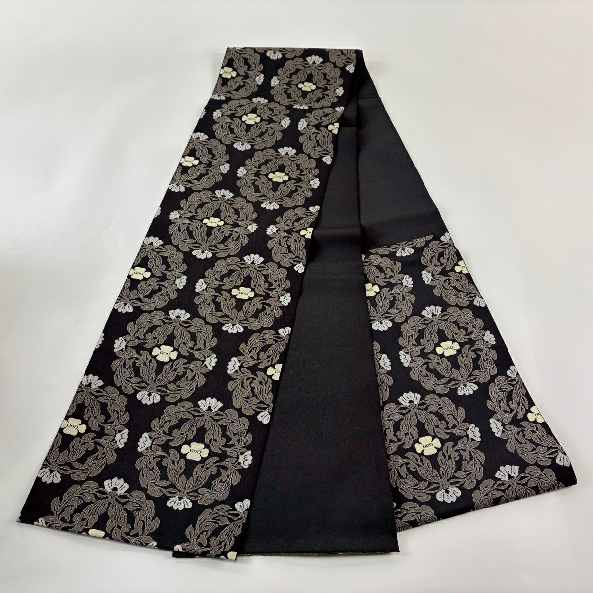 【在庫一掃】 袋帯 逸品 証紙あり 草花 花菱 唐織 クリーム 六通 正絹