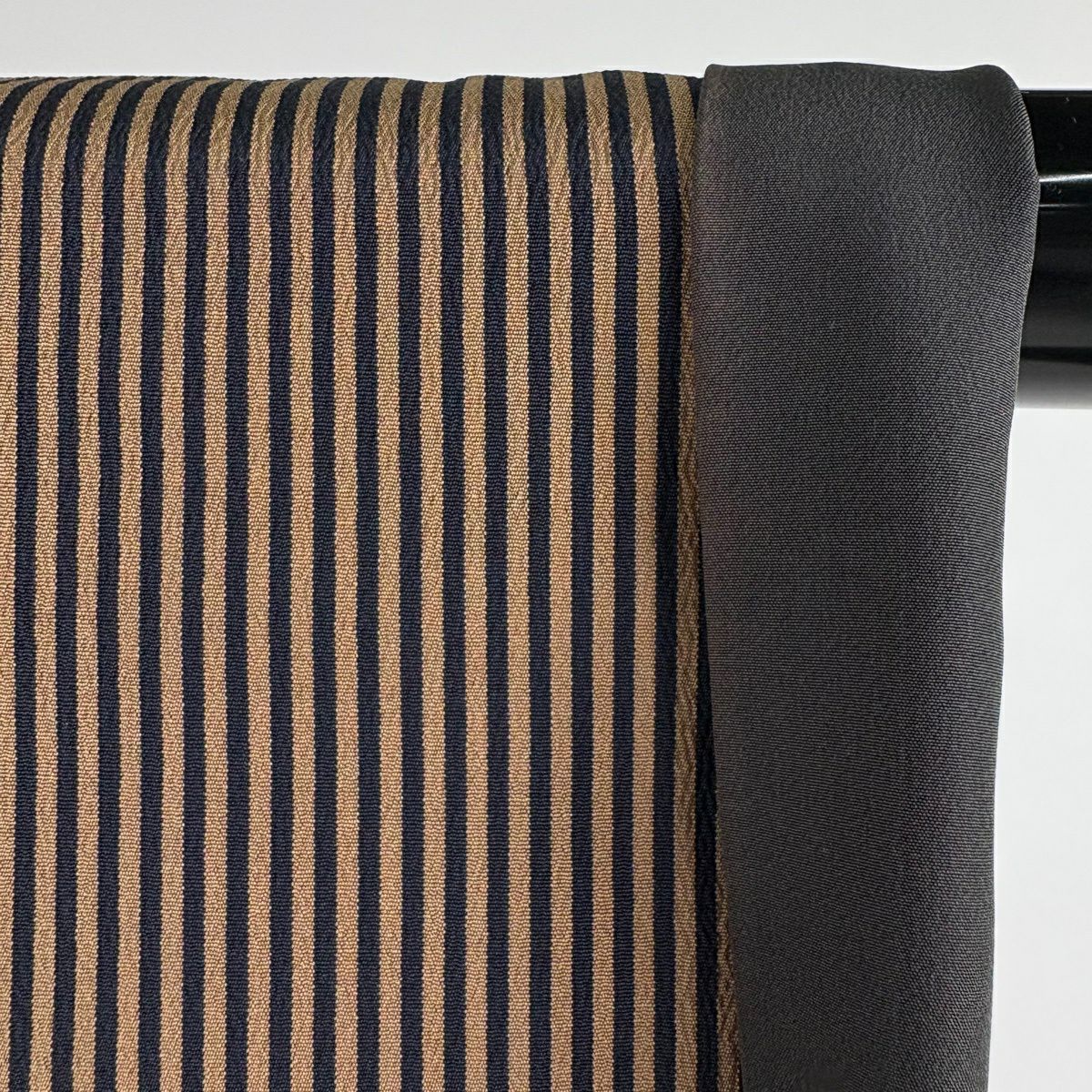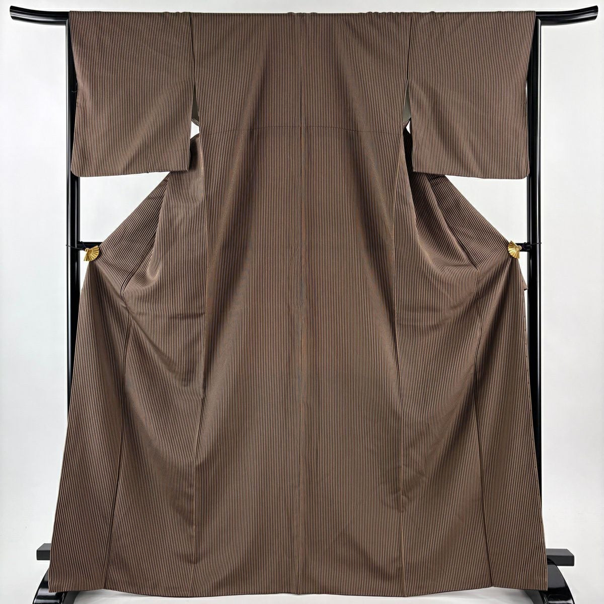 【美品】 お召 身丈170cm 裄丈66cm M 袷 縦縞 茶色 正絹 逸品