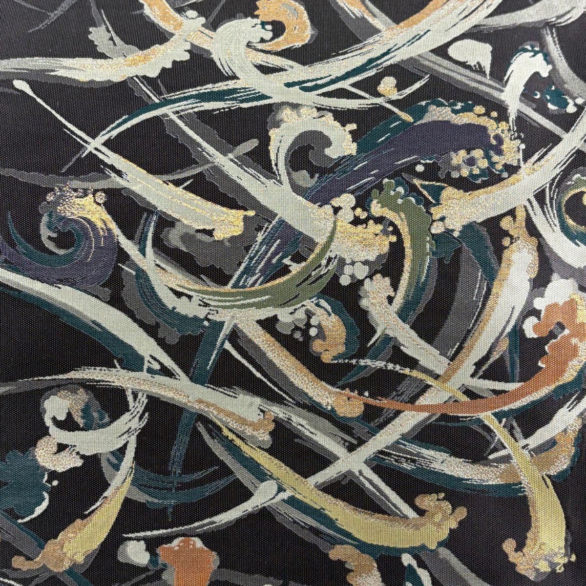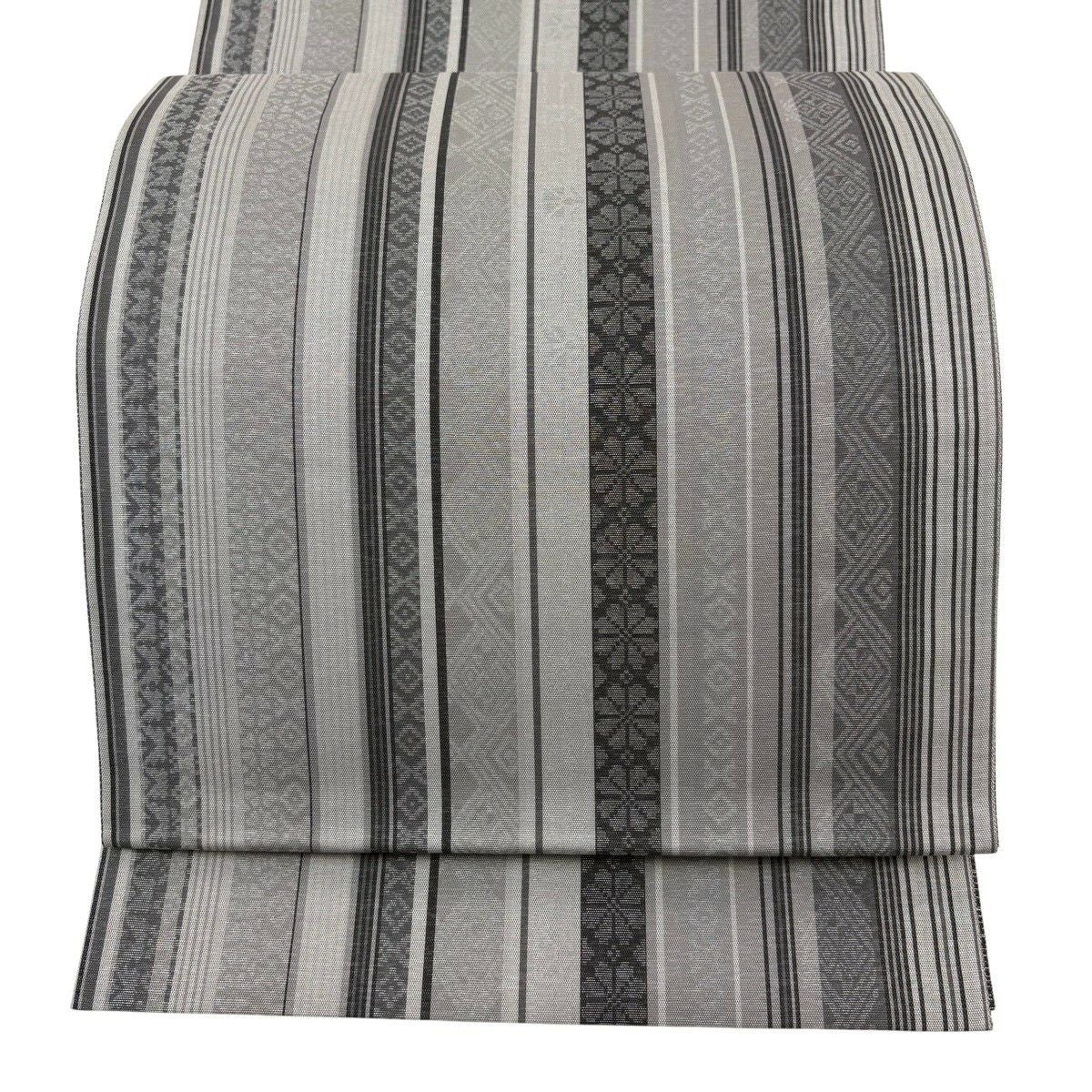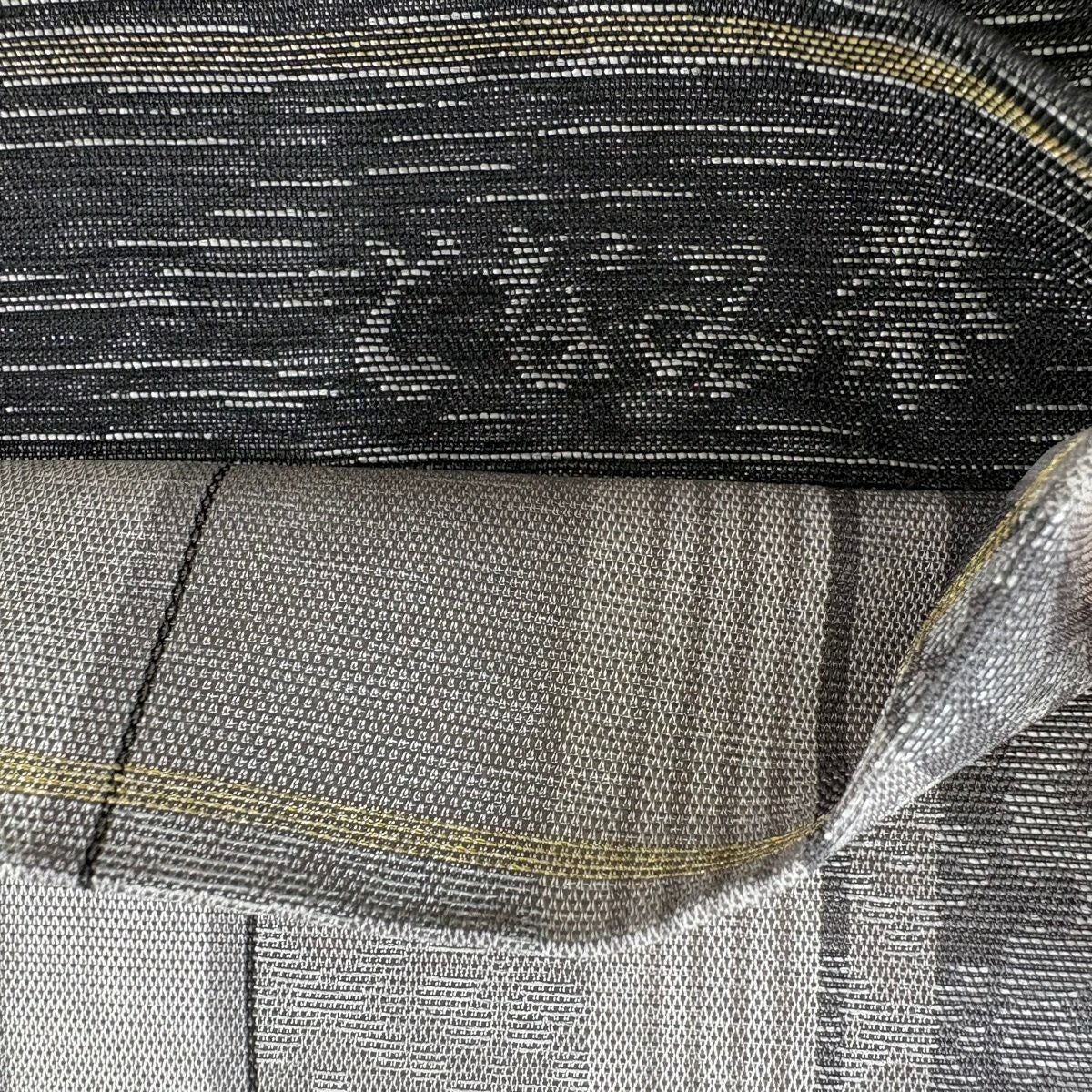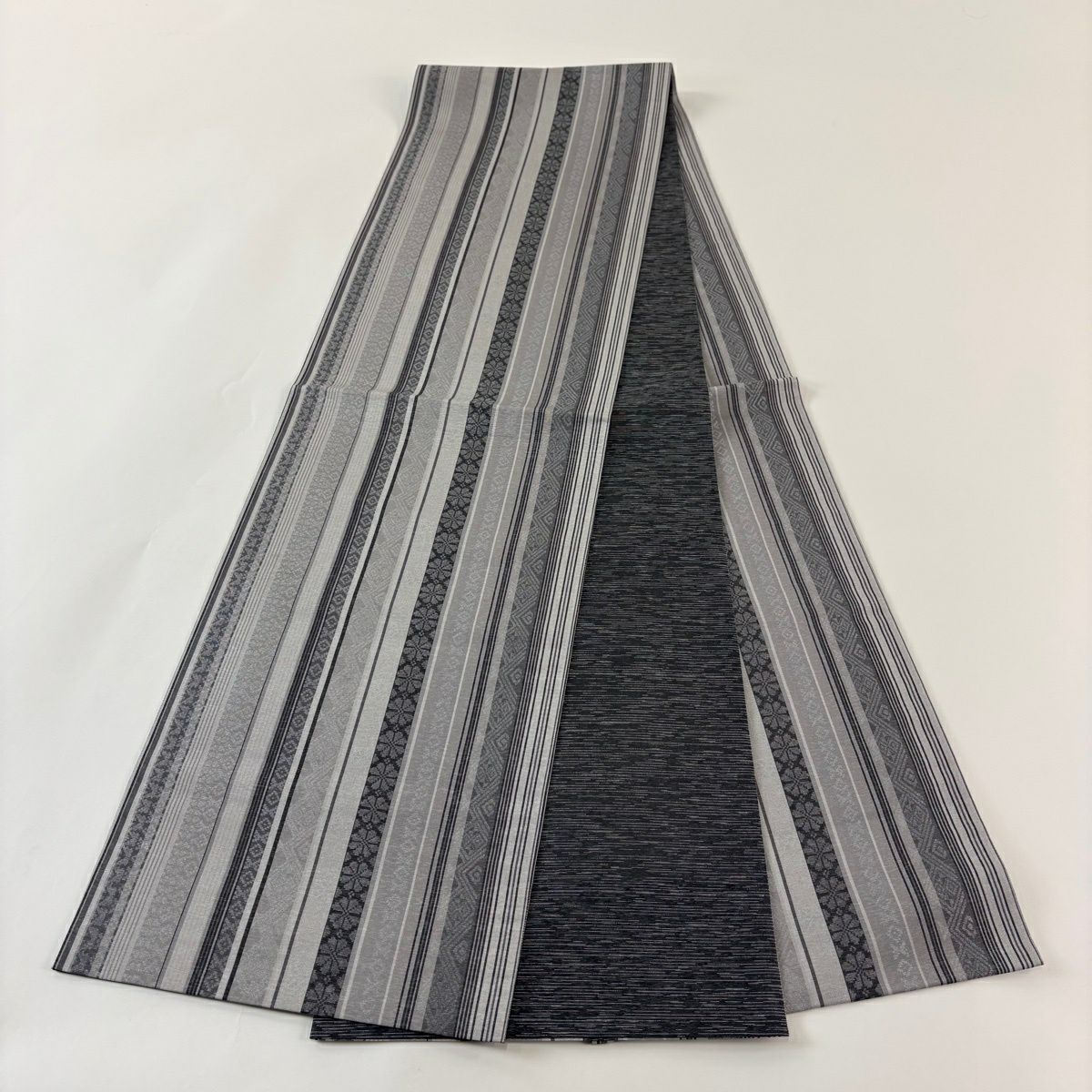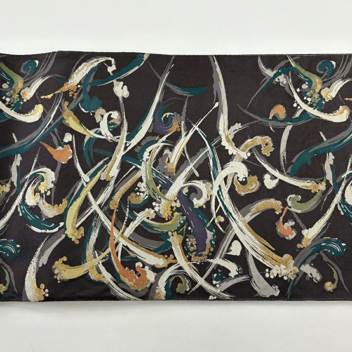 【美品】 袋帯 逸品 夏帯 やまと 立涌 幾何学模様 黒灰 お太鼓柄 正絹