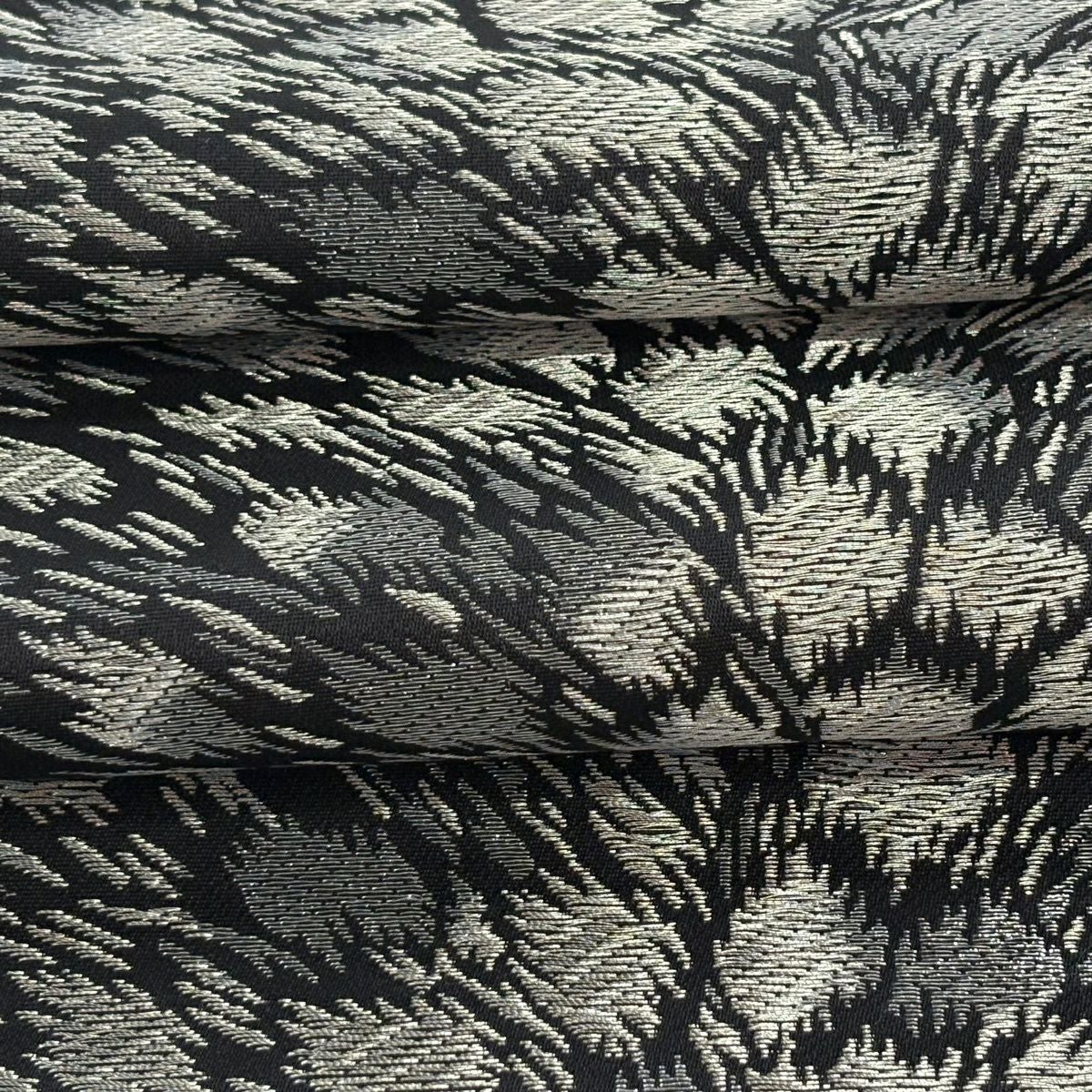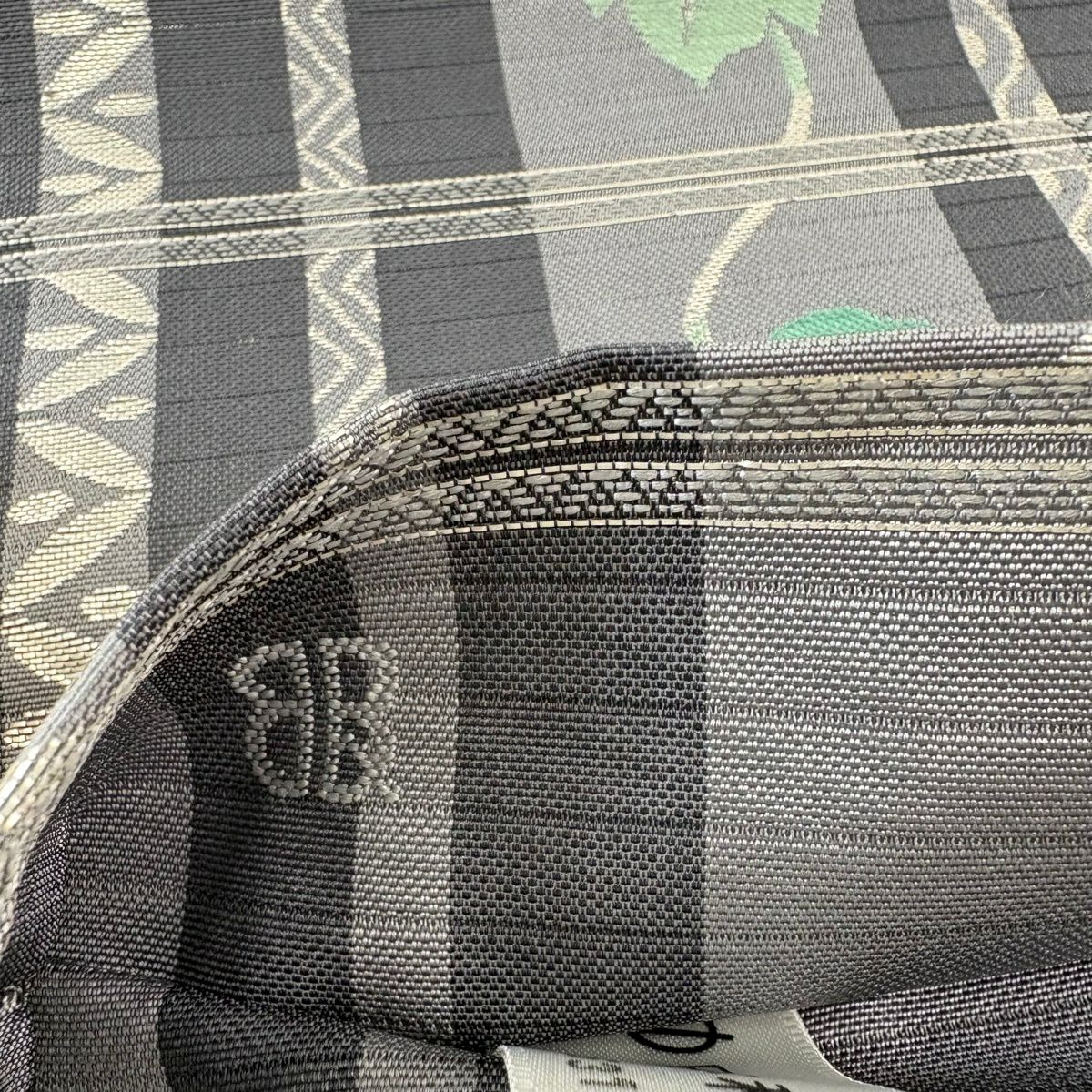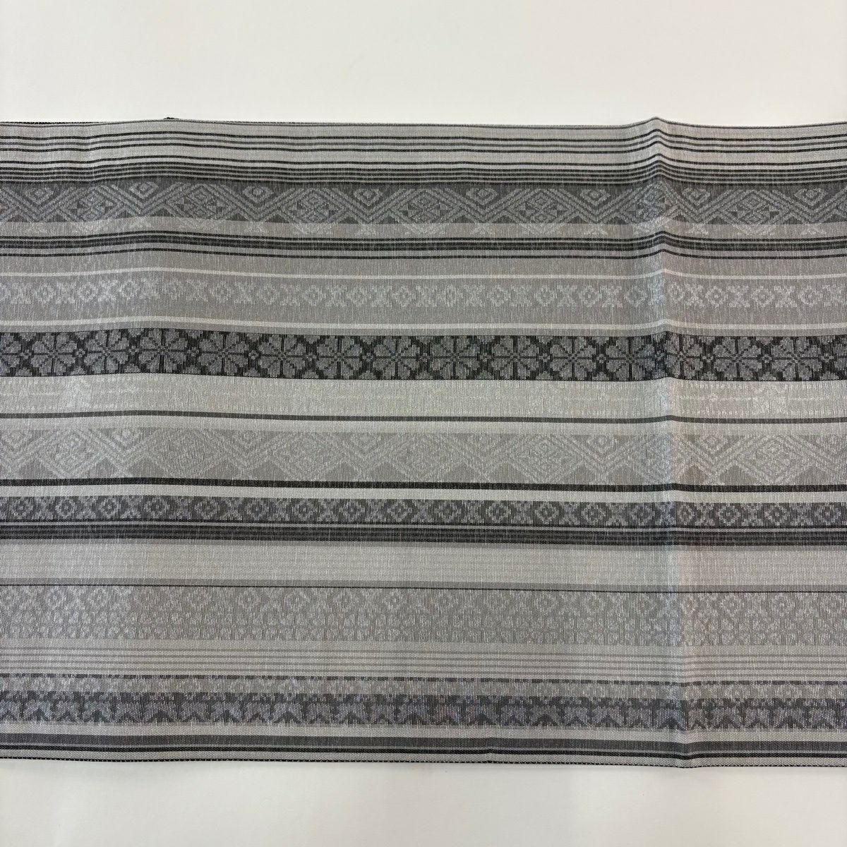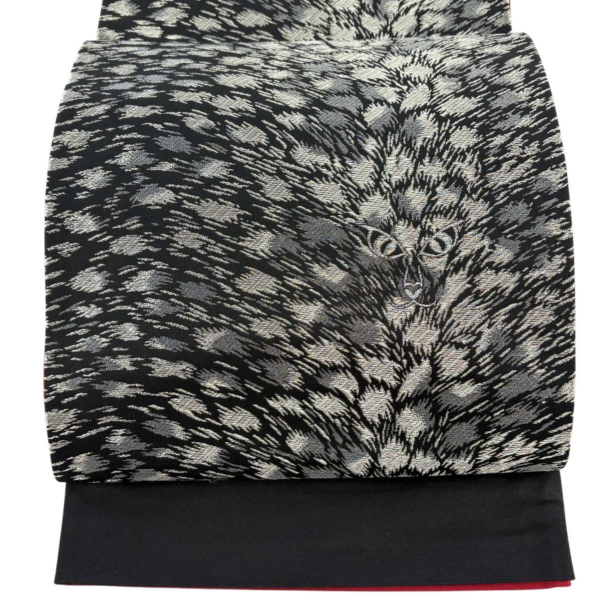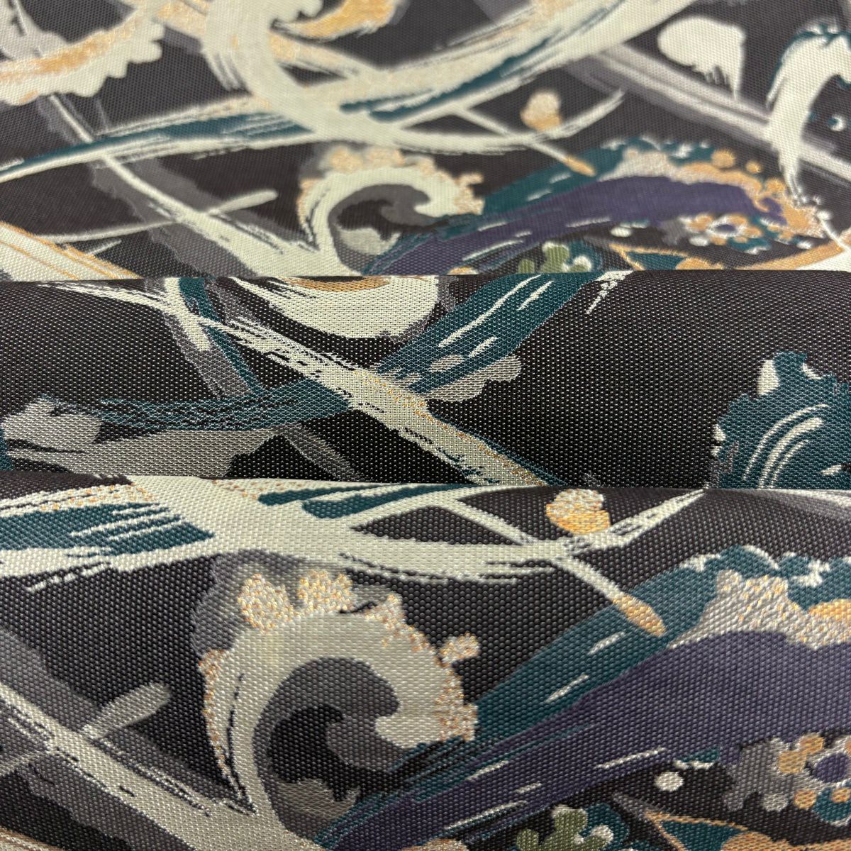 【美品】 袋帯 逸品 夏帯 やまと 立涌 幾何学模様 黒灰 お太鼓柄 正絹
