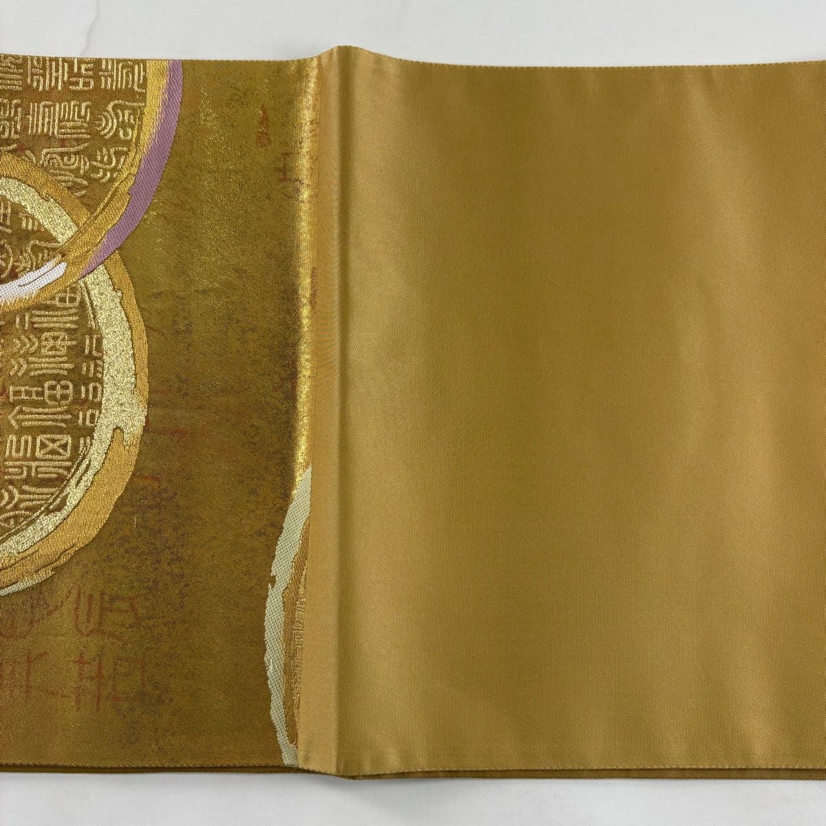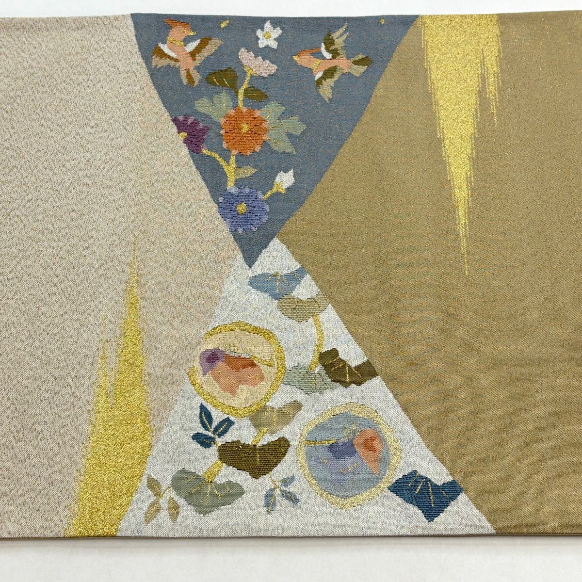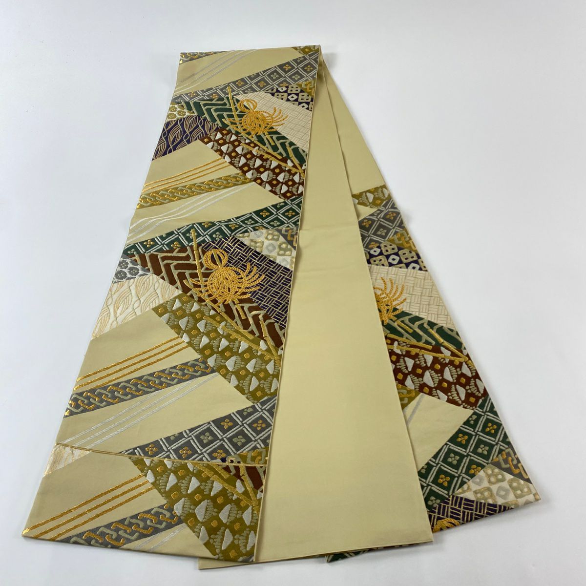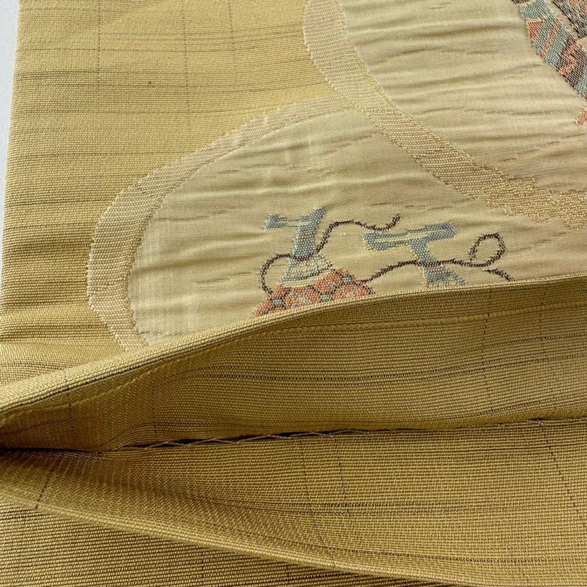 【在庫一掃】 【美品】 袋帯 逸品 幾何学 金銀糸 ベージュ 六通 正絹
