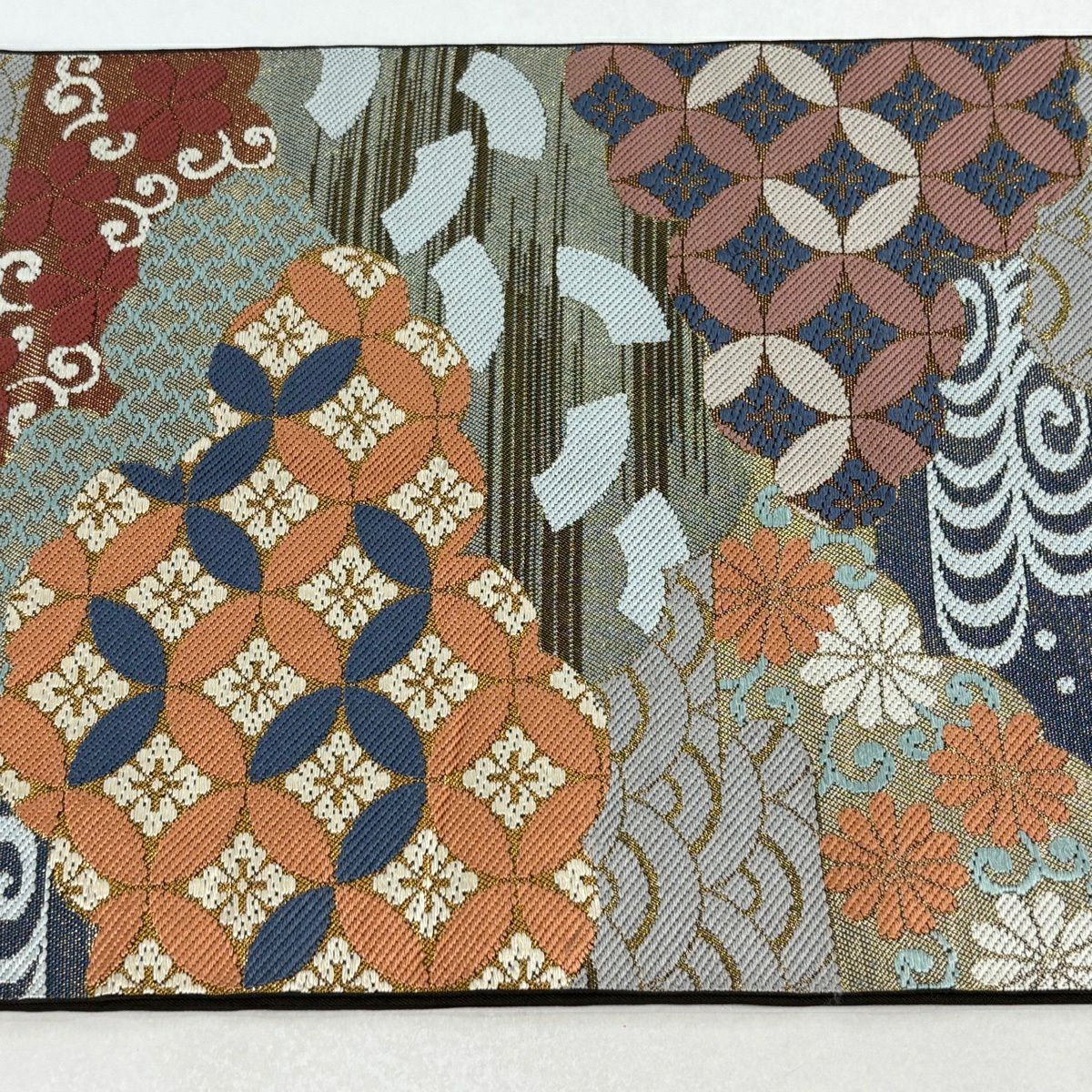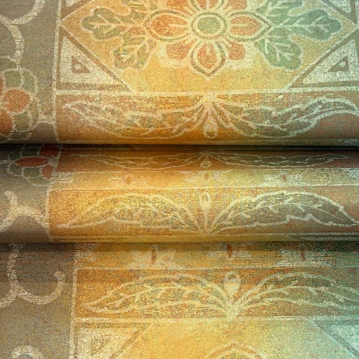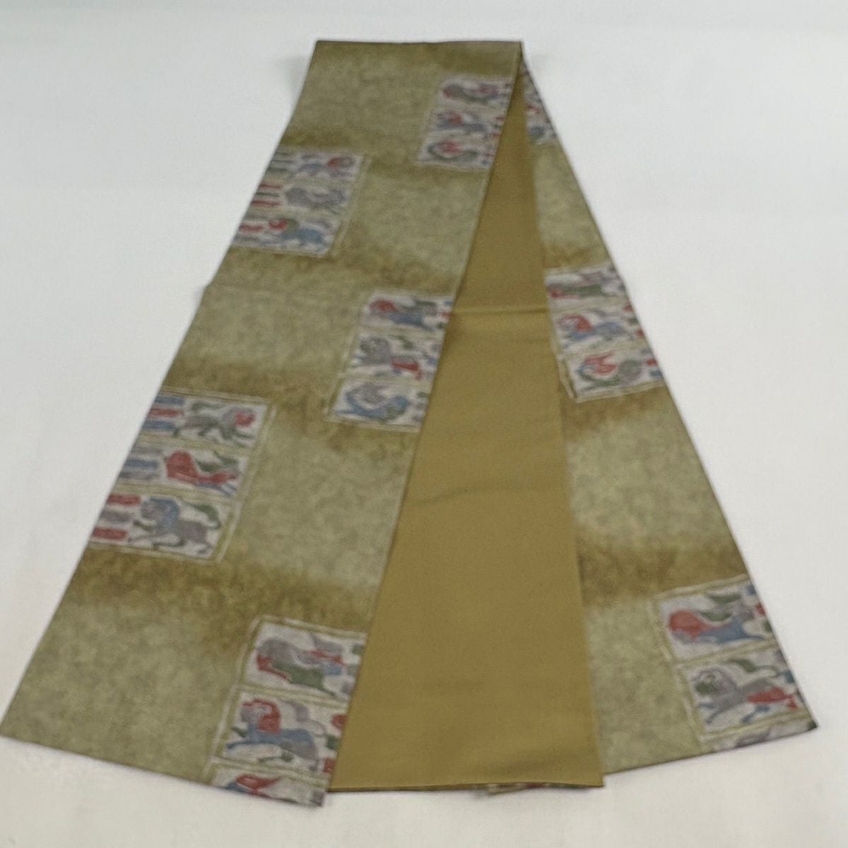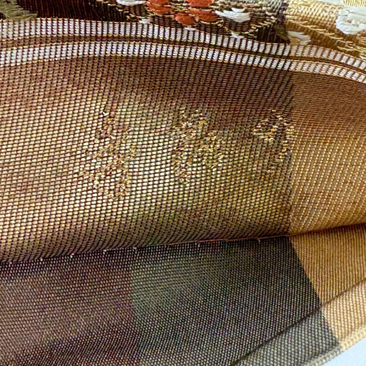 【在庫一掃】 【美品】 袋帯 逸品 幾何学 金銀糸 ベージュ 六通 正絹