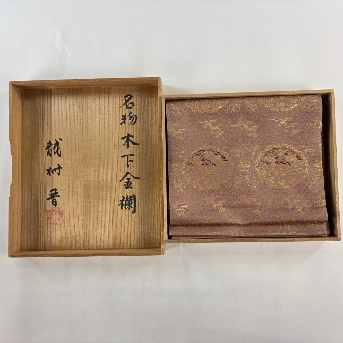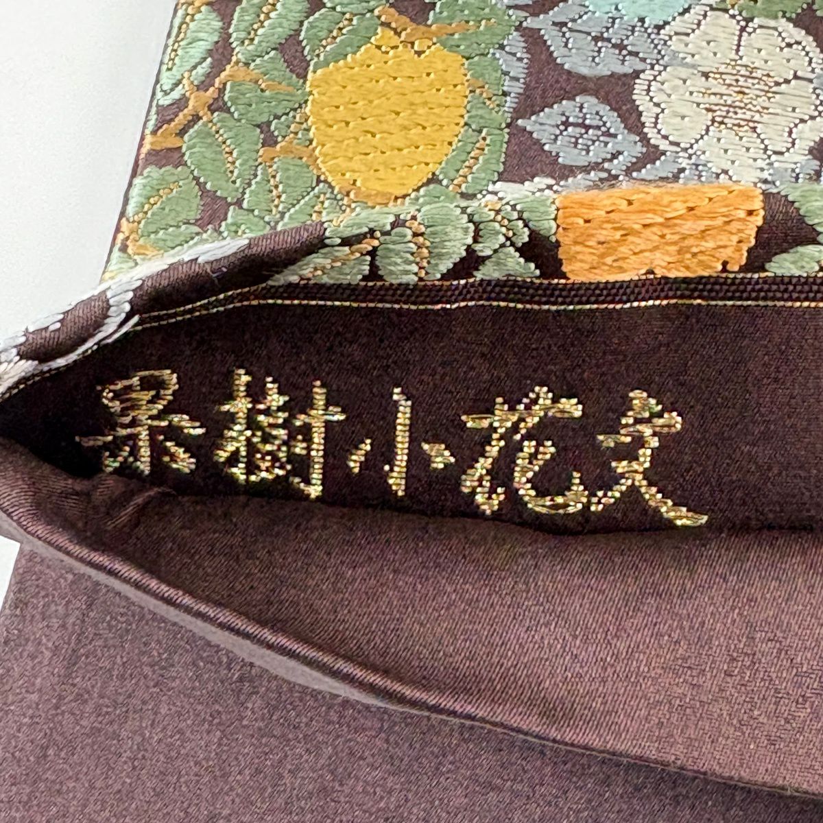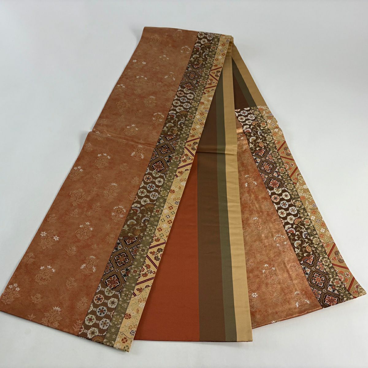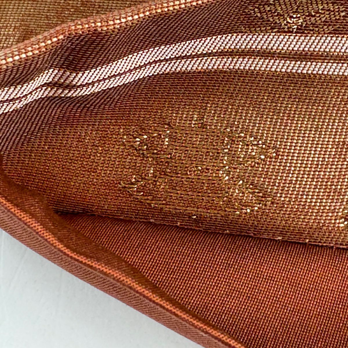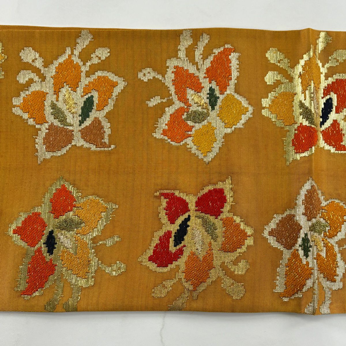 袋帯 逸品 河村織物 落款あり 飛鳥装飾小花文 金糸 箔 赤茶 六通 正絹