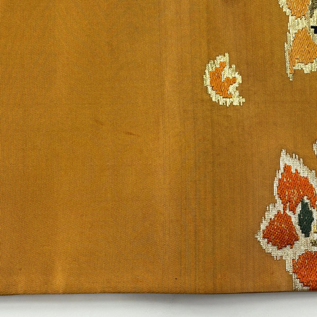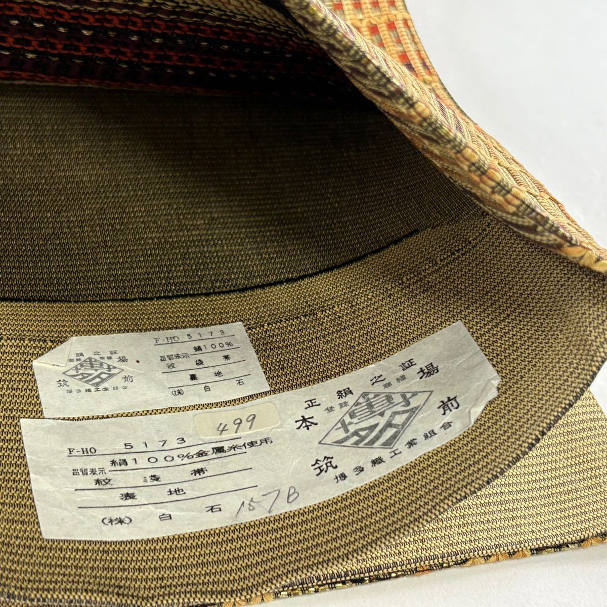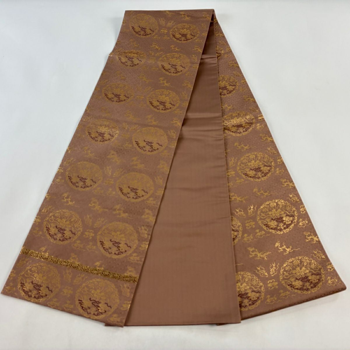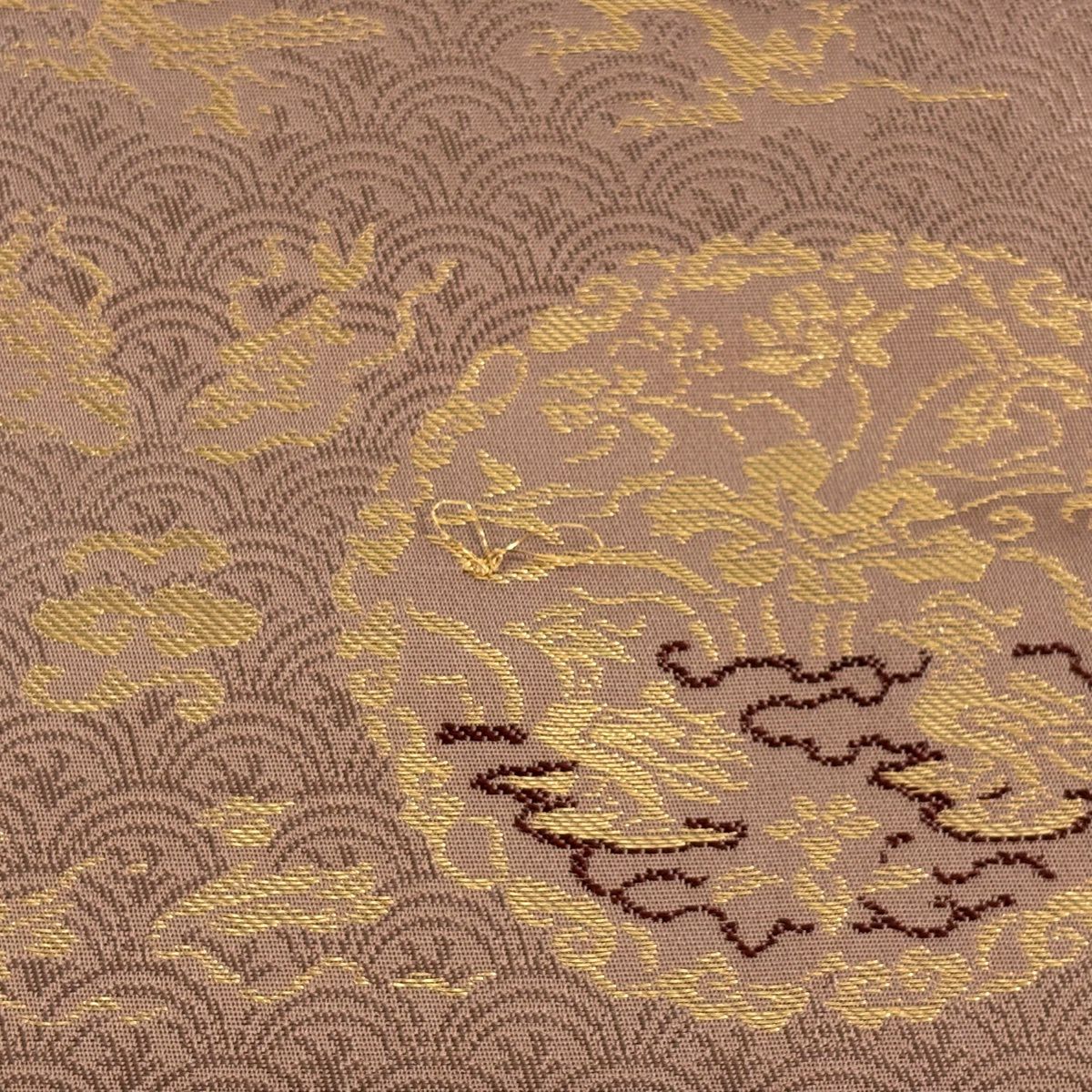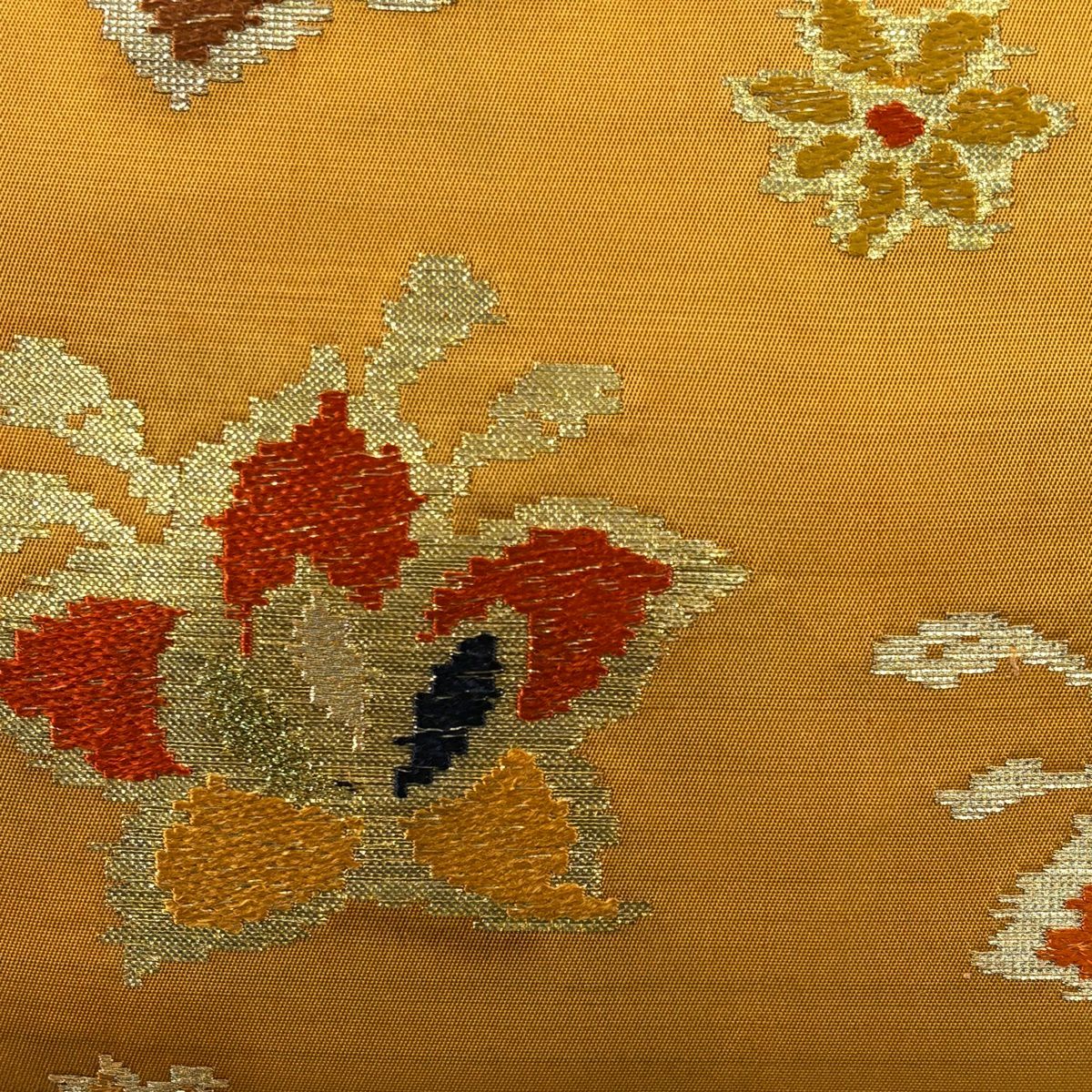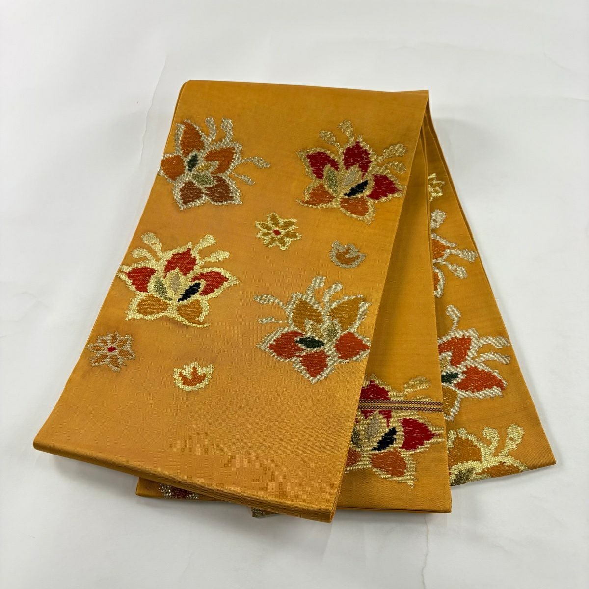 袋帯 逸品 河村織物 落款あり 飛鳥装飾小花文 金糸 箔 赤茶 六通 正絹