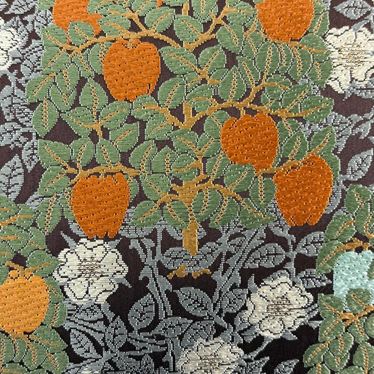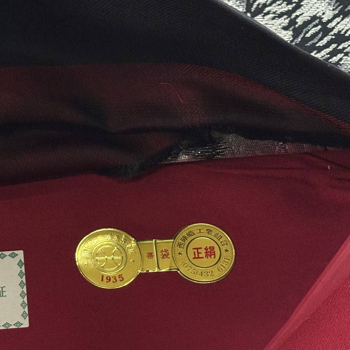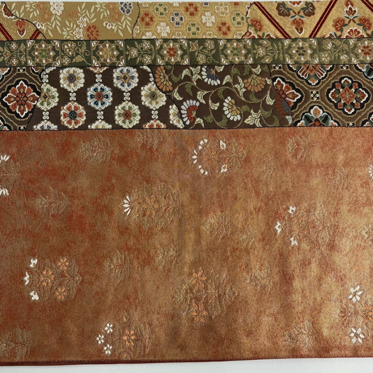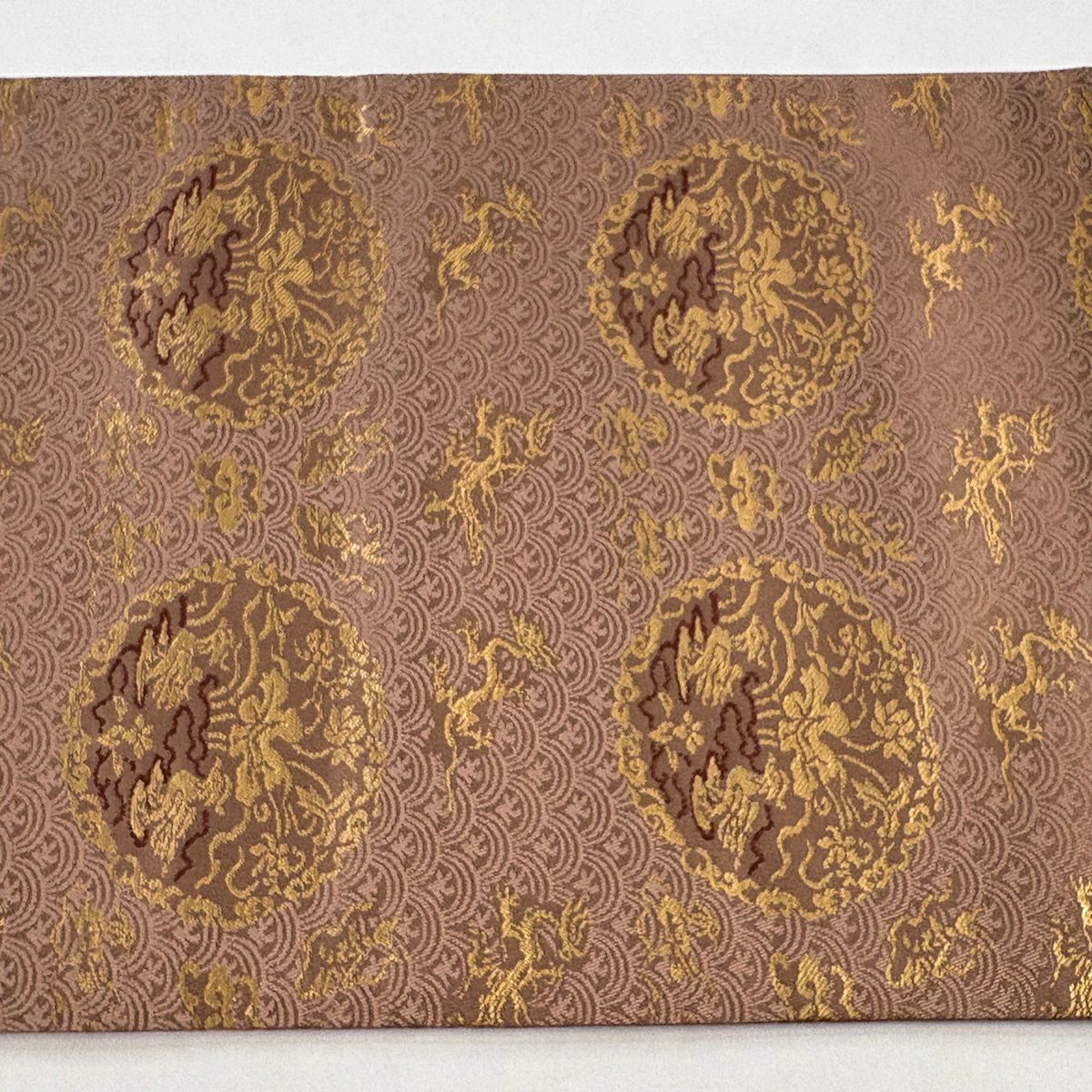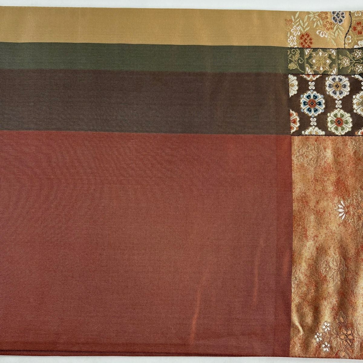 袋帯 逸品 河村織物 落款あり 飛鳥装飾小花文 金糸 箔 赤茶 六通 正絹