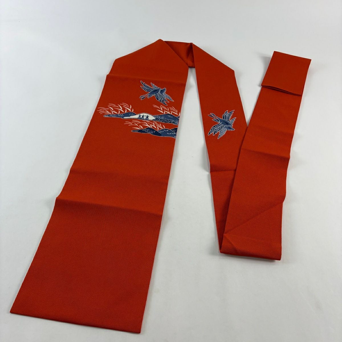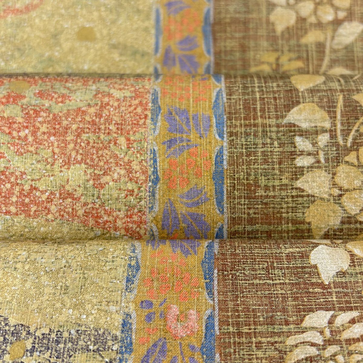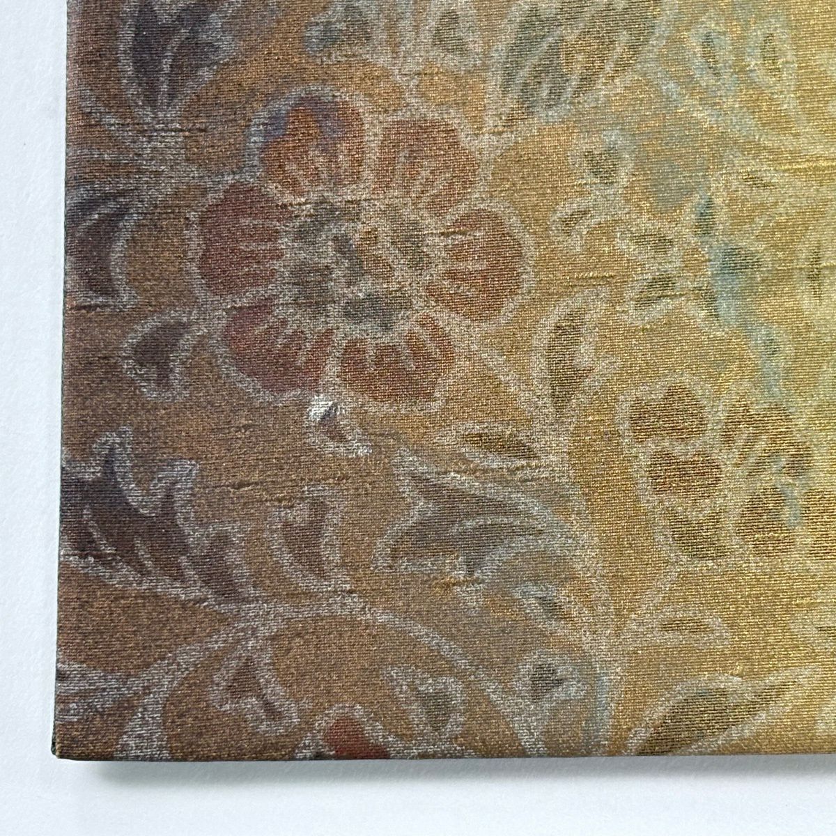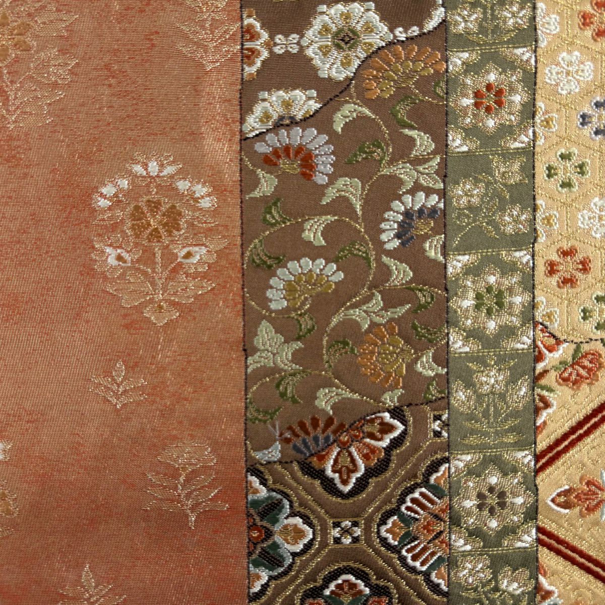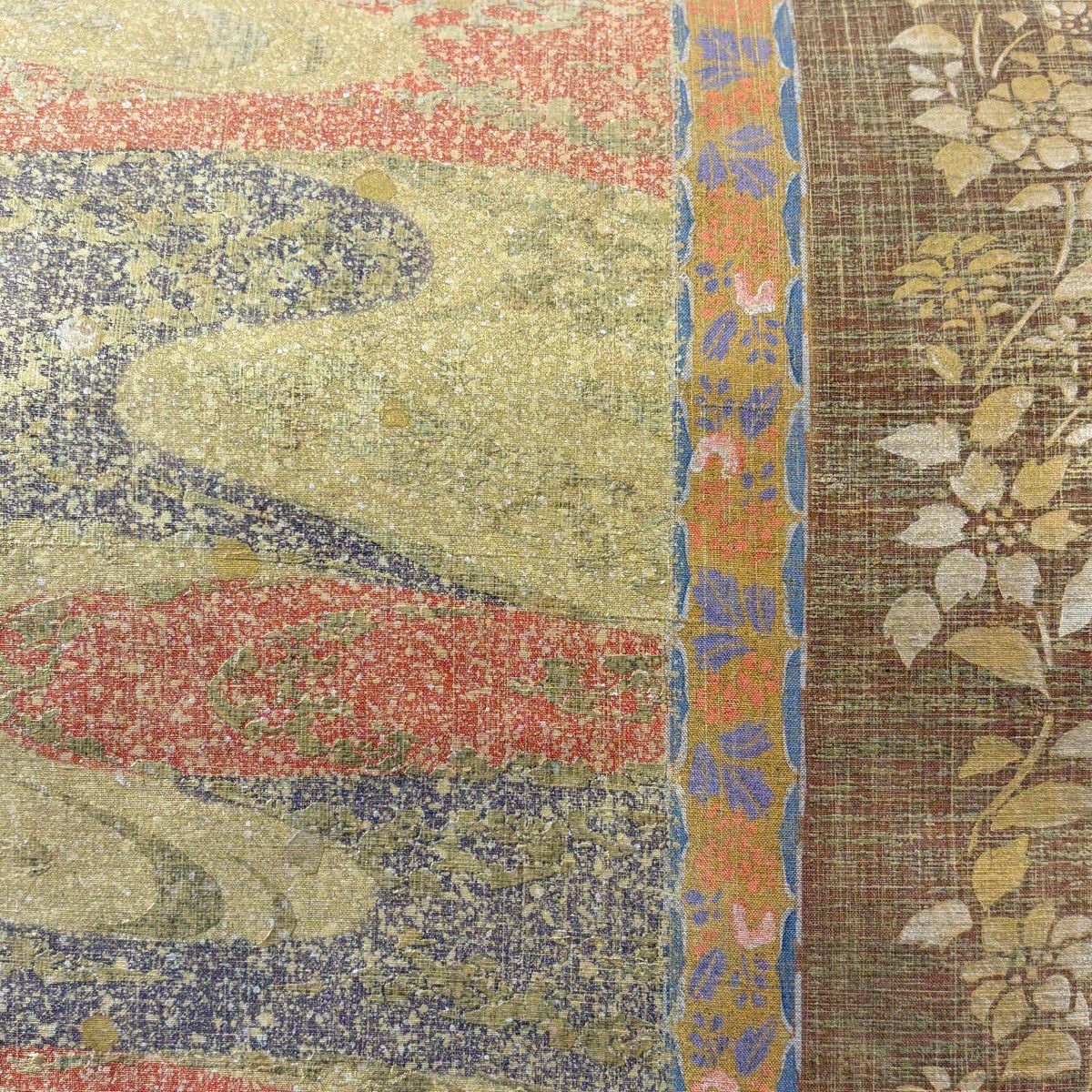 袋帯 逸品 河村織物 落款あり 飛鳥装飾小花文 金糸 箔 赤茶 六通 正絹