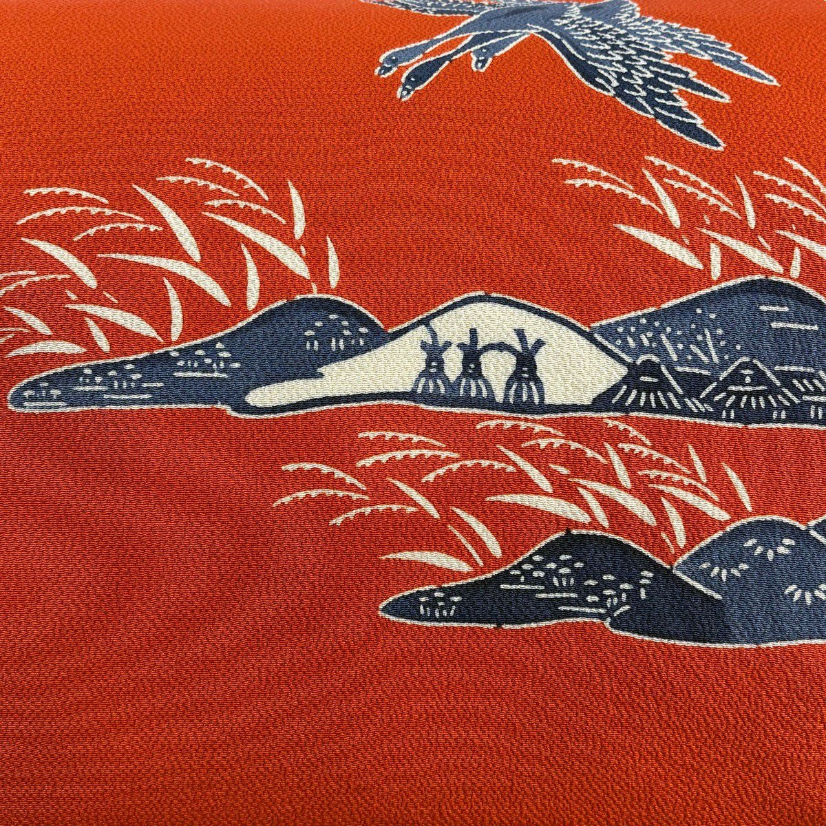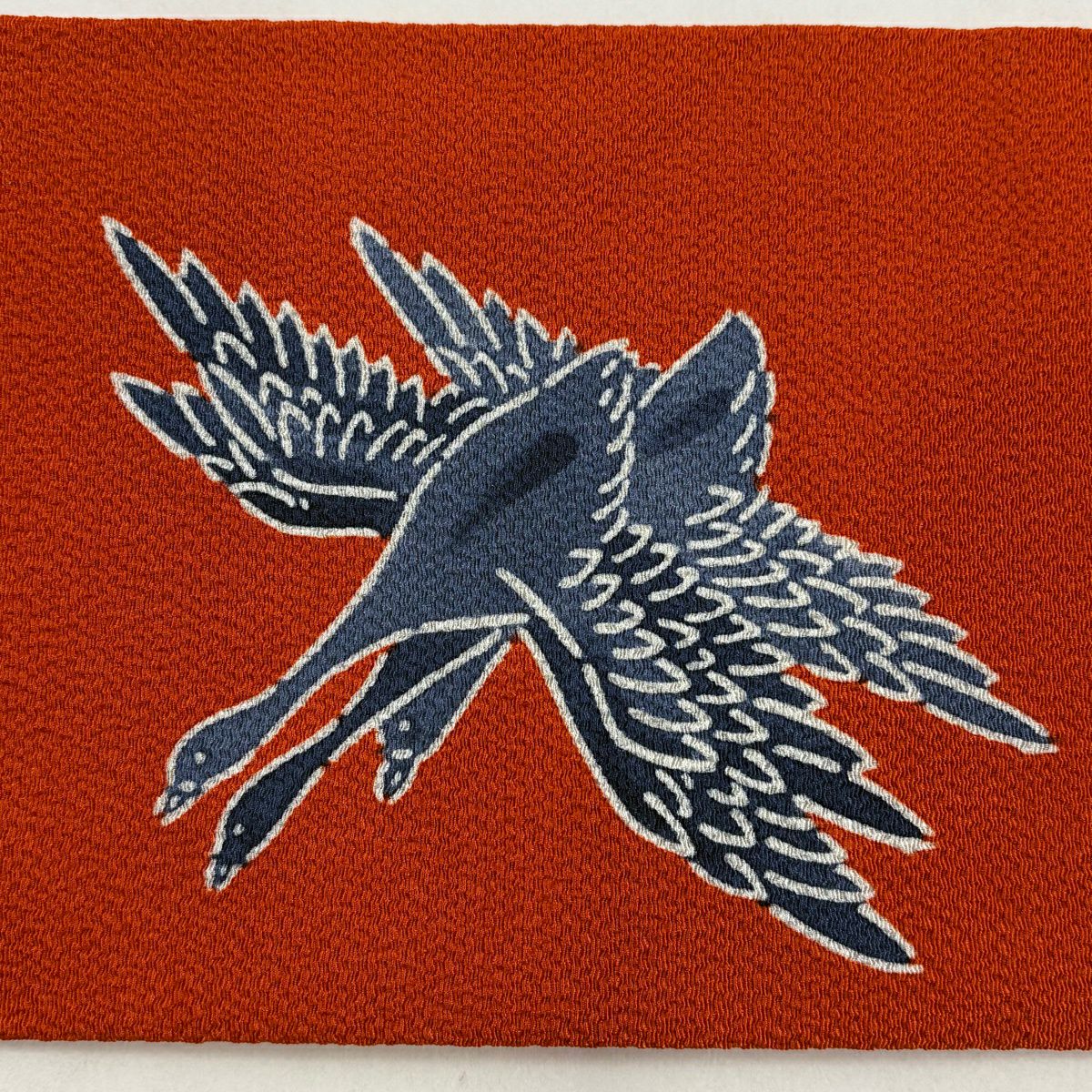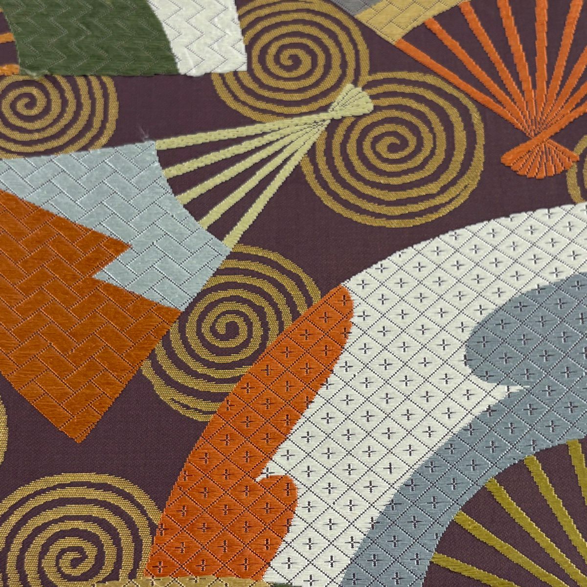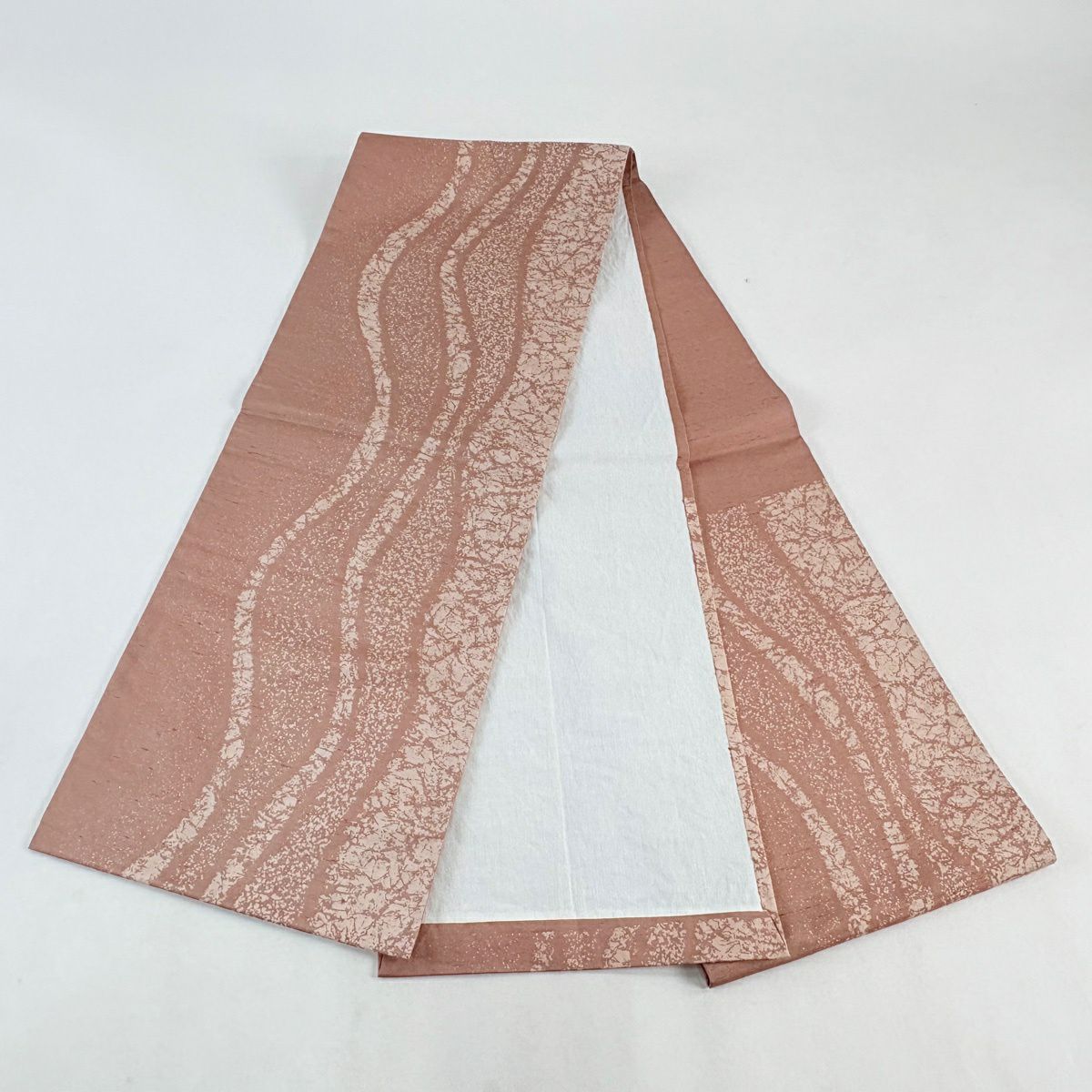 【在庫一掃】 袋帯 逸品 扇 鶴 金銀糸 箔 薄オレンジ お太鼓柄 正絹