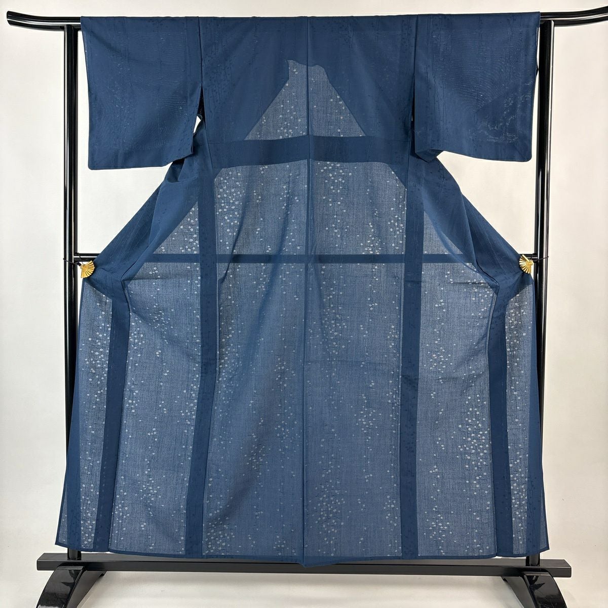 紬 身丈157cm 裄丈61.5cm S 薄物 夏紬 枝花 紺色 正絹 逸品