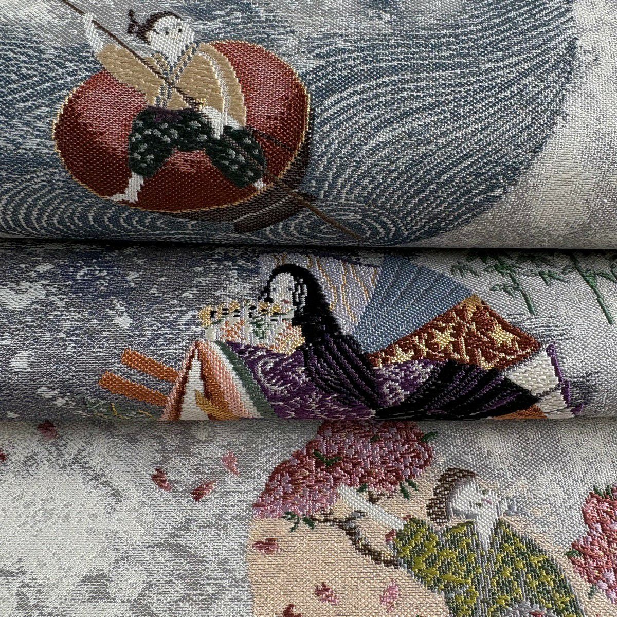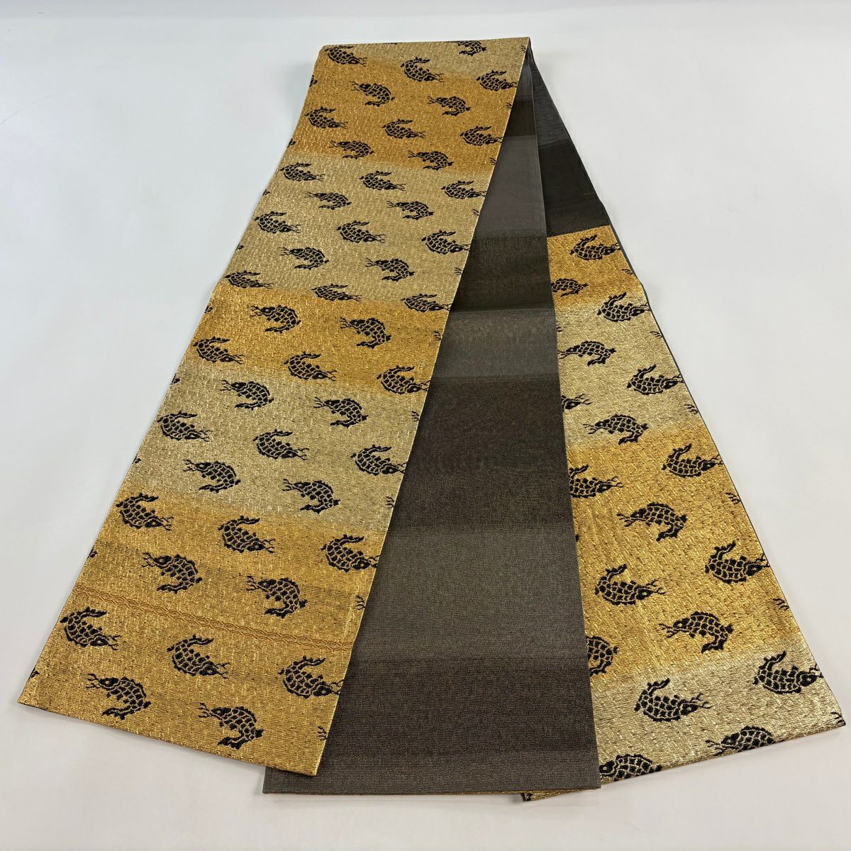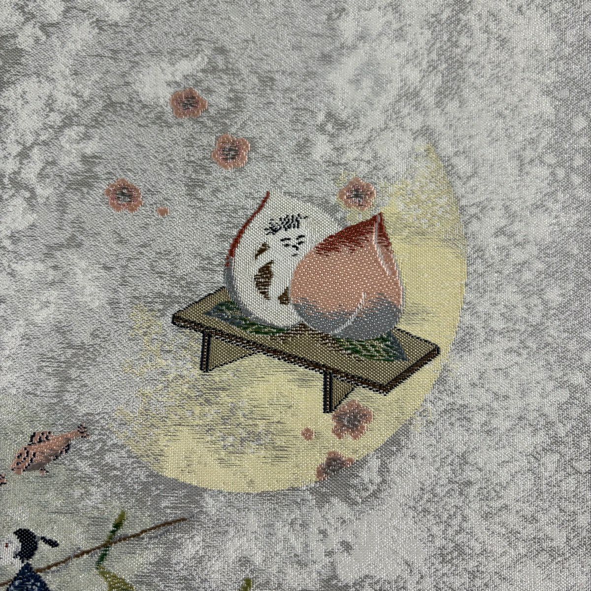 【美品】 袋帯 逸品 日本昔話 浦島太郎 金銀糸 箔 灰色 お太鼓柄 正絹