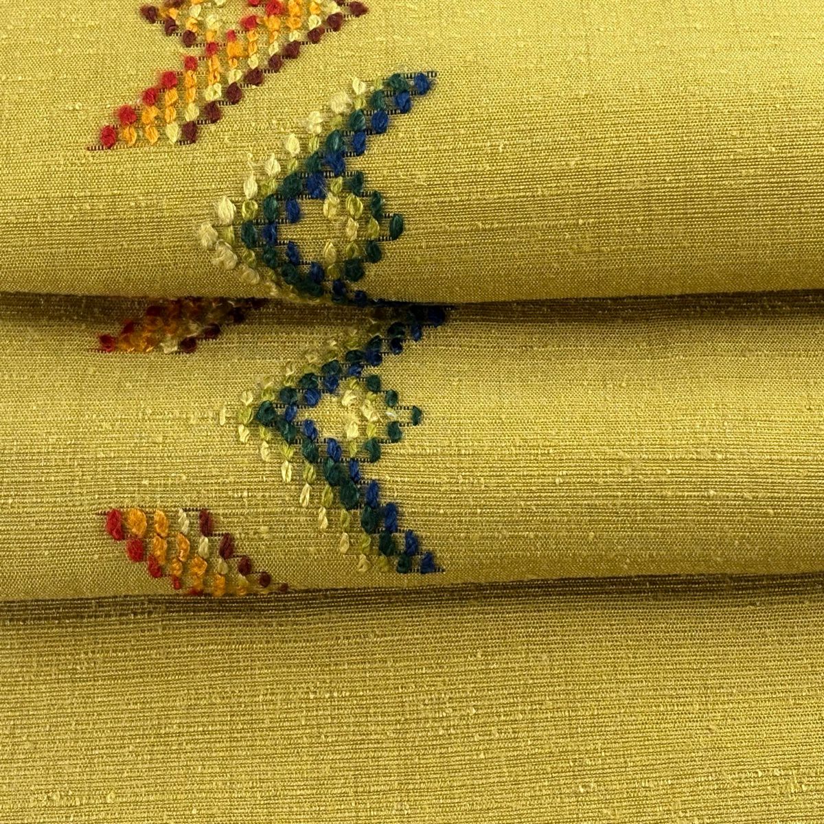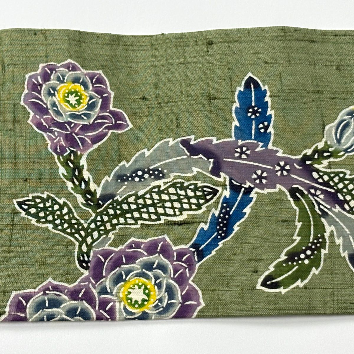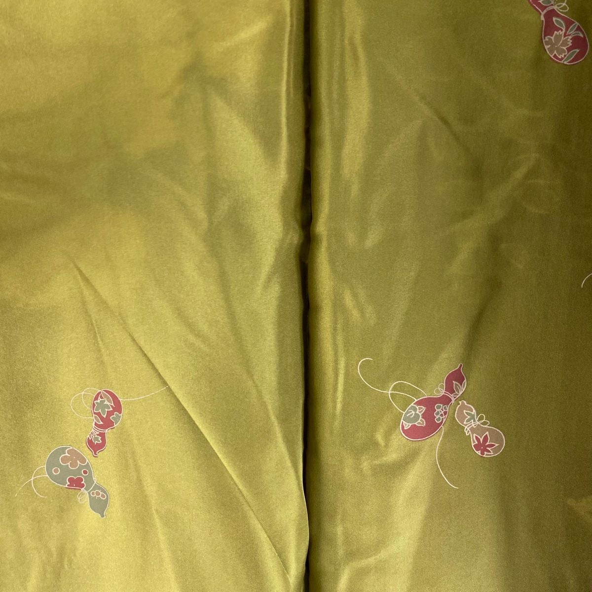 【美品】 袋帯 逸品 落款あり 牛首紬地 華文 草花 金彩 緑 全通 正絹