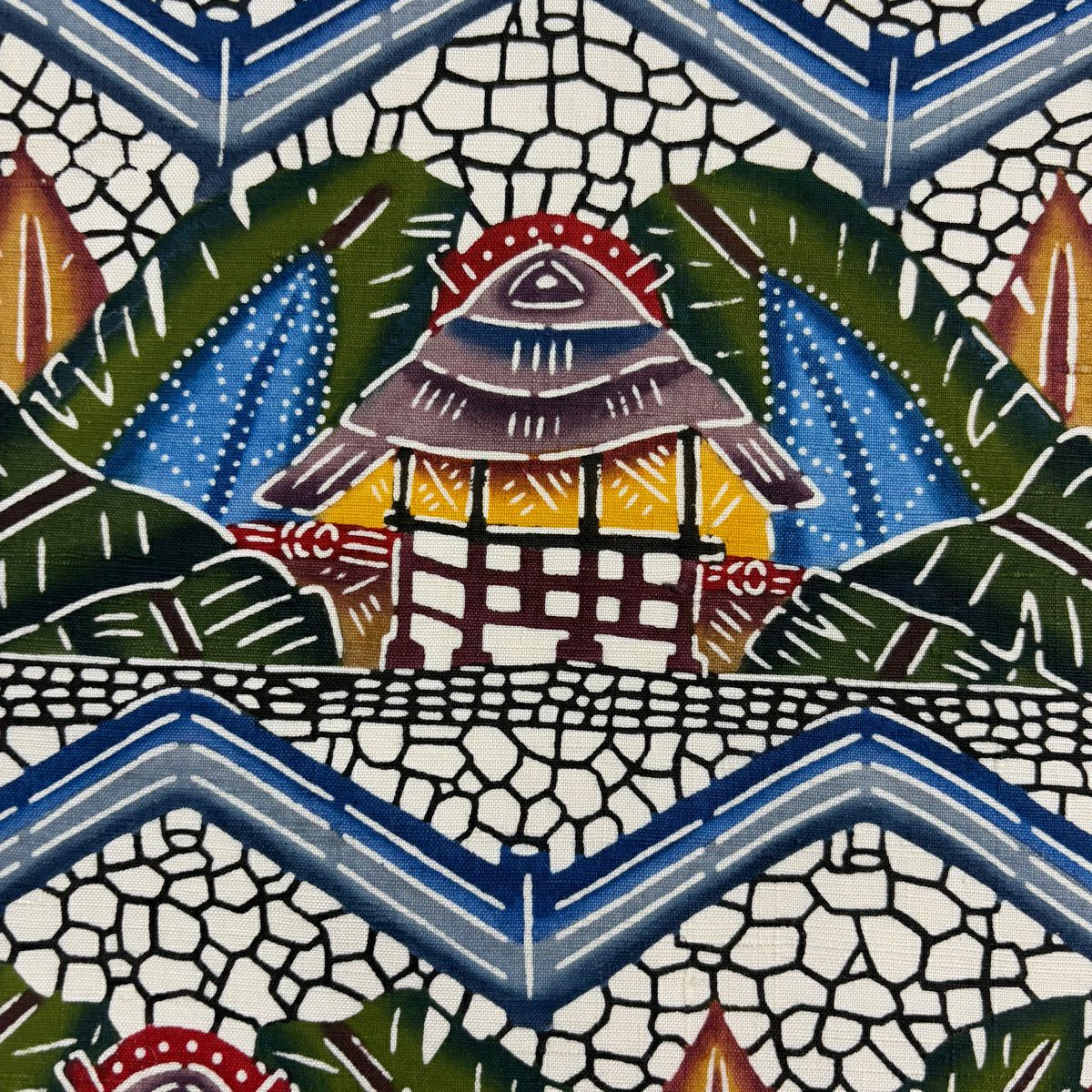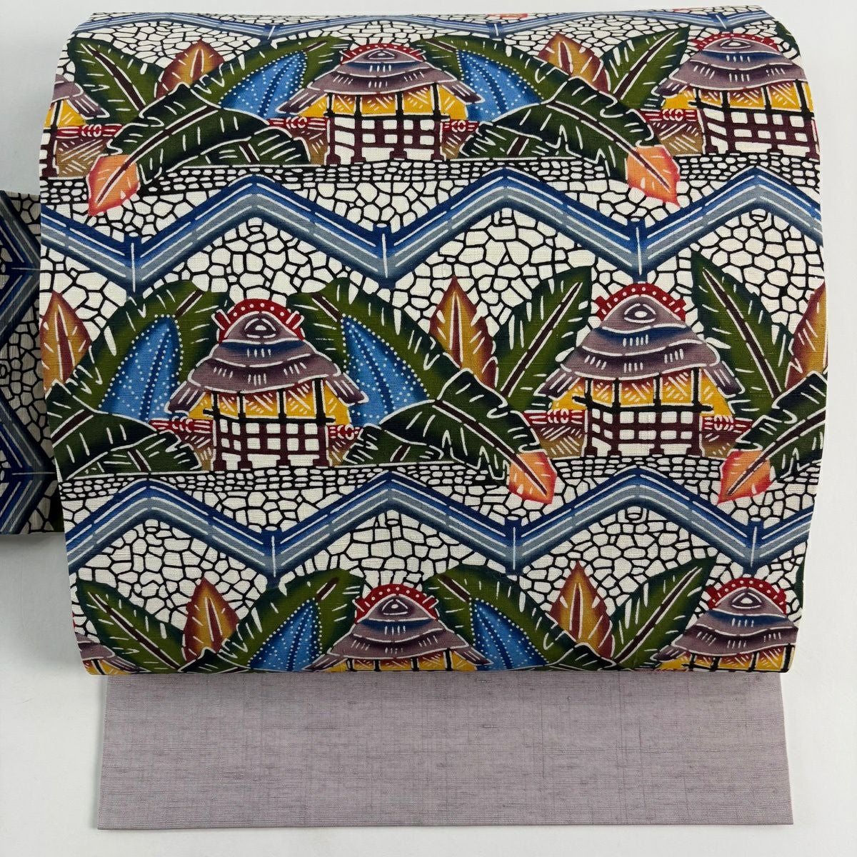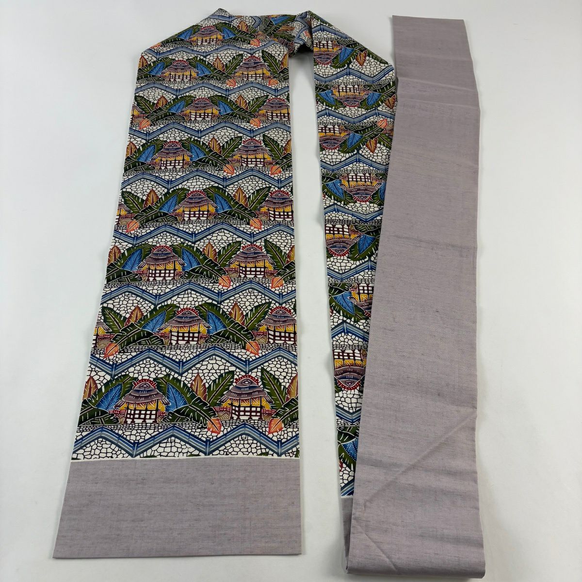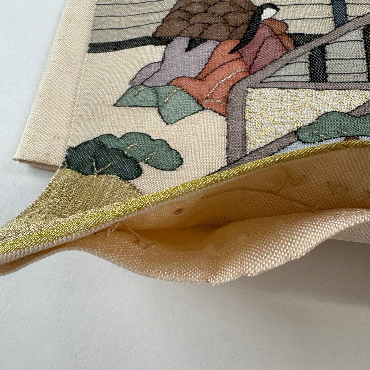 【在庫一掃】 【美品】 袋帯 逸品 建物 樹木 箔 ベージュ 六通 正絹