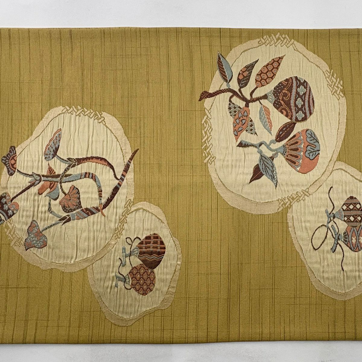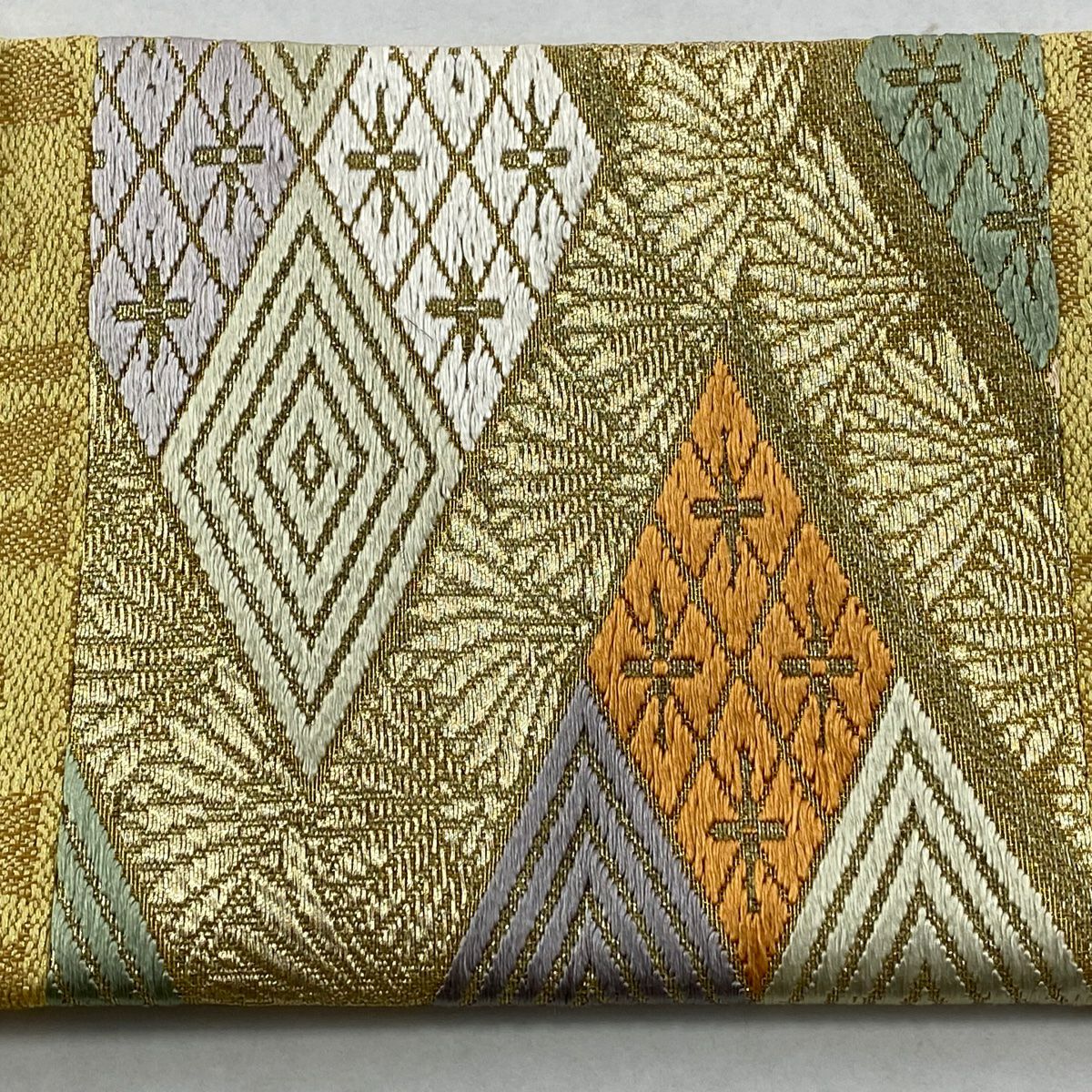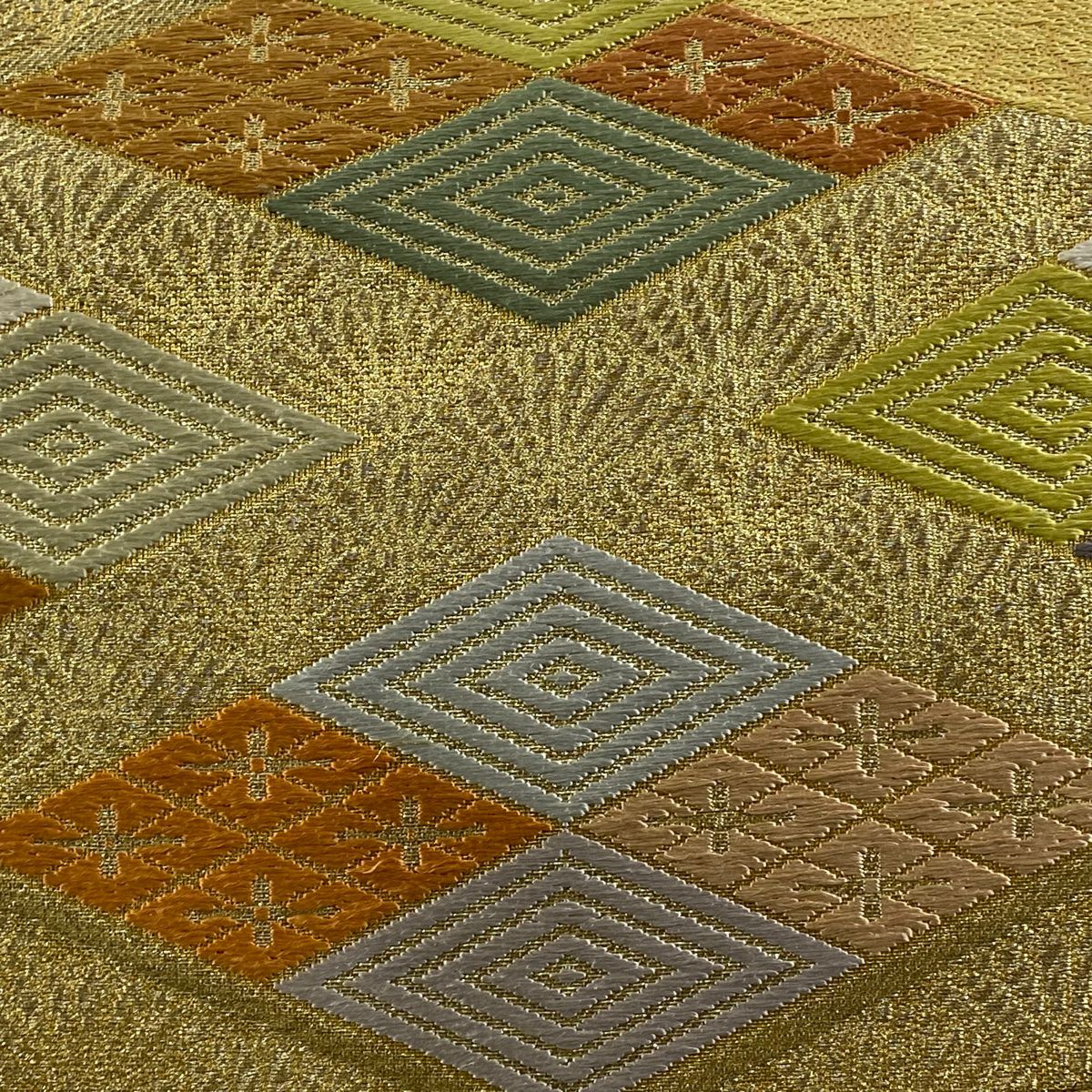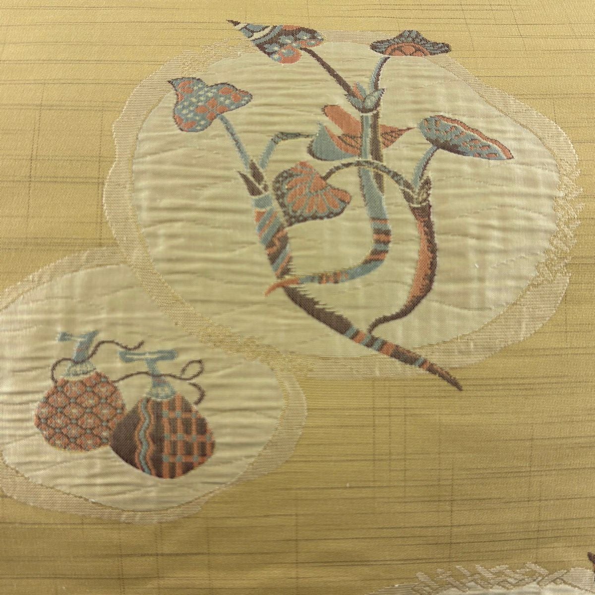 【在庫一掃】 【美品】 名古屋帯 逸品 入子菱 花菱 唐織 金糸 薄黄 正絹
