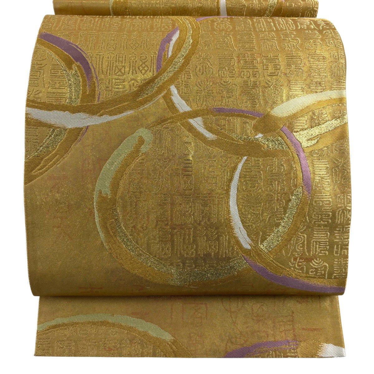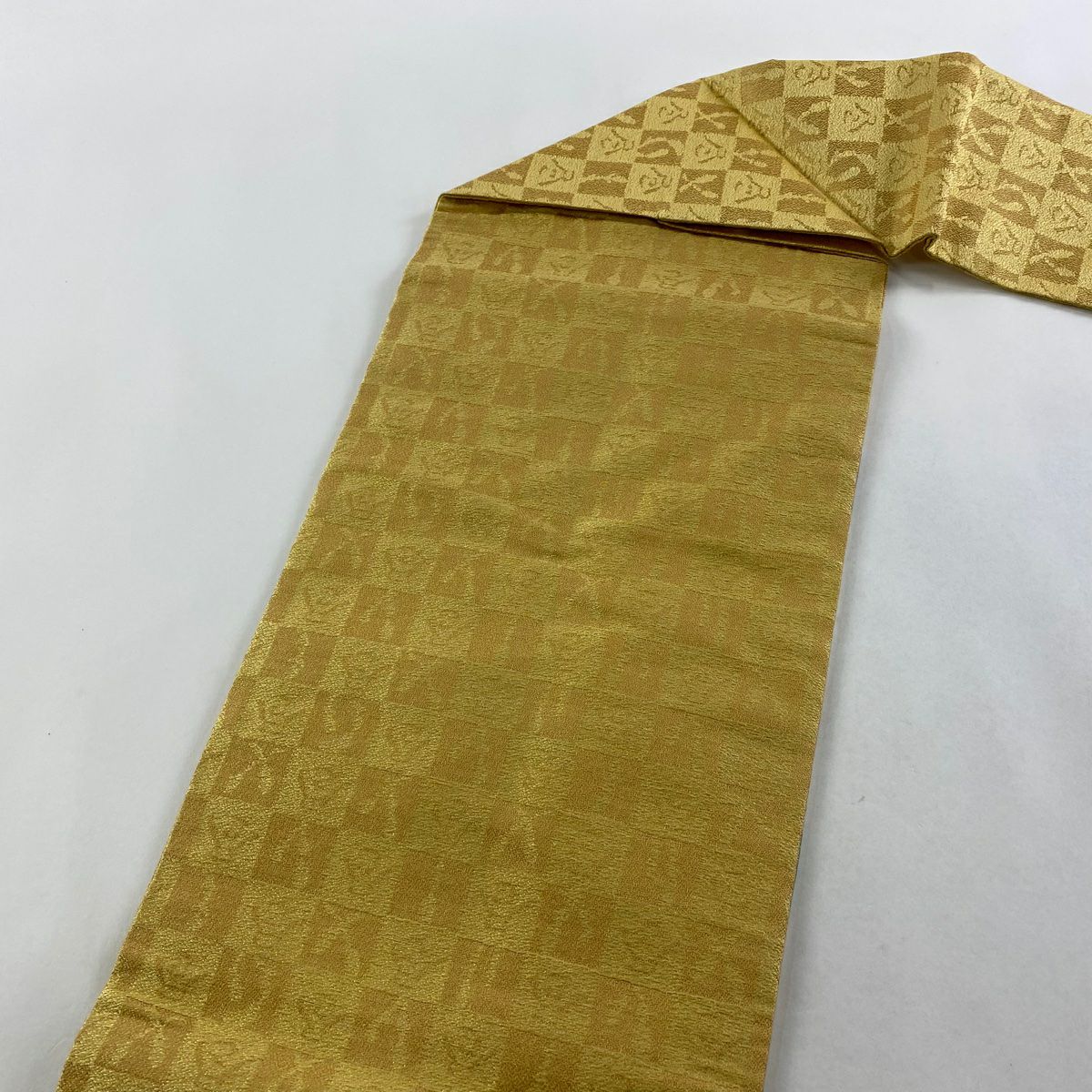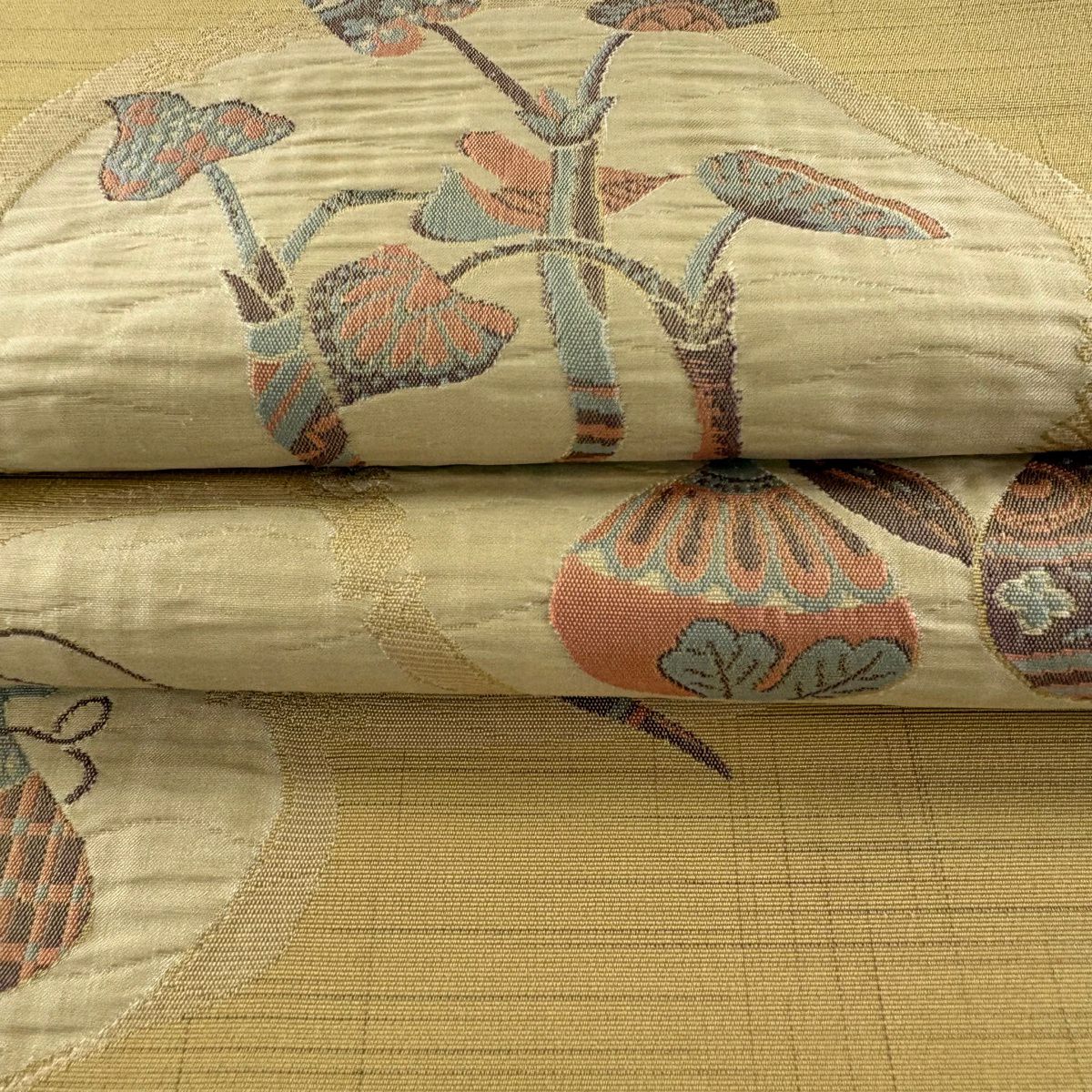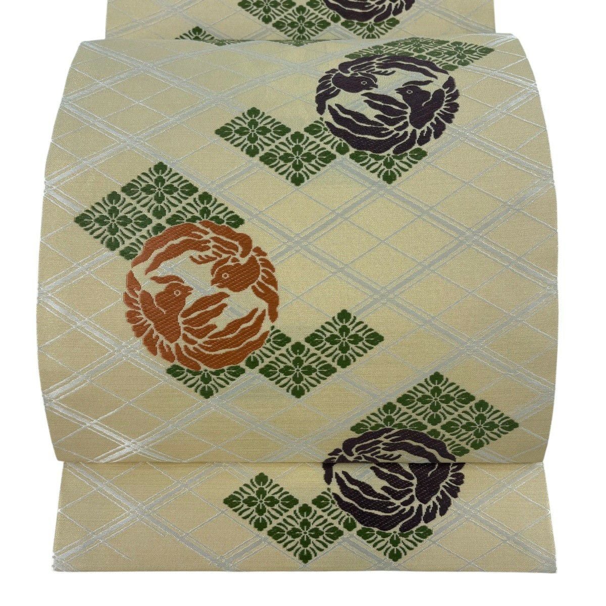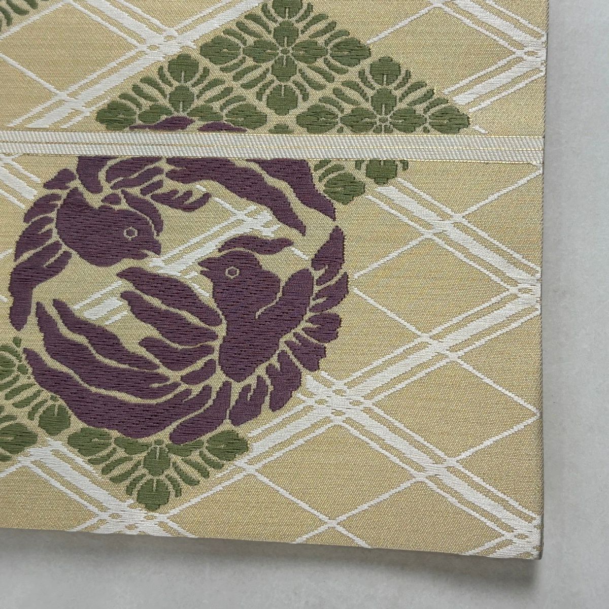 【在庫一掃】 【美品】 名古屋帯 逸品 入子菱 花菱 唐織 金糸 薄黄 正絹