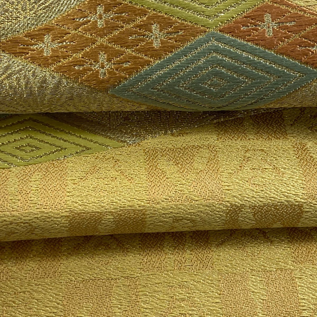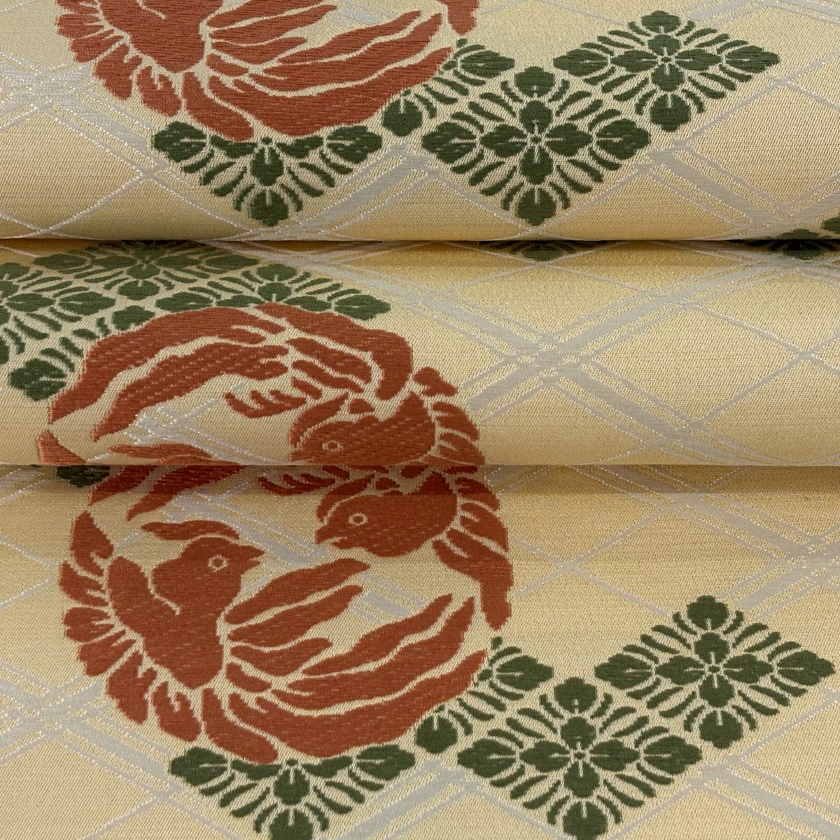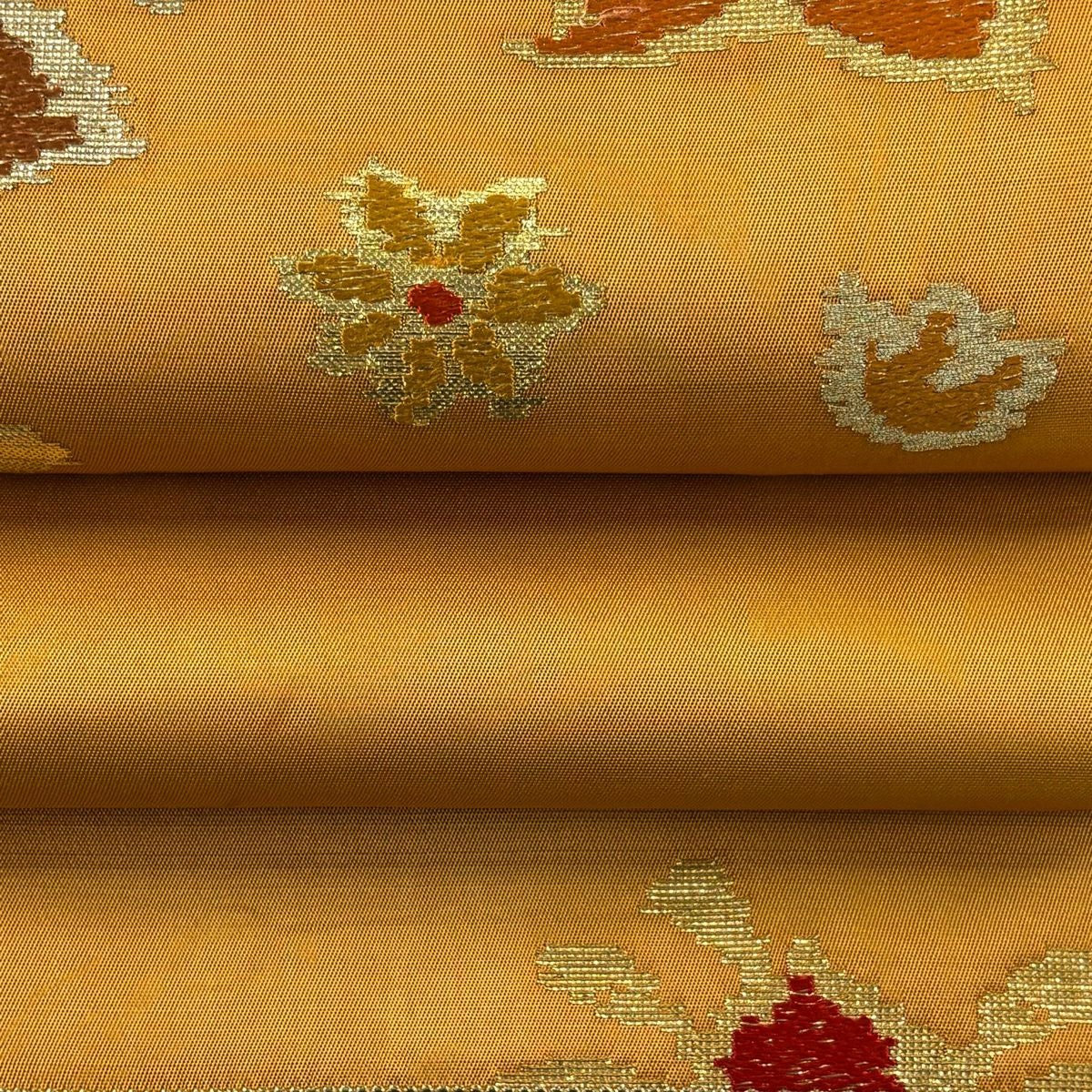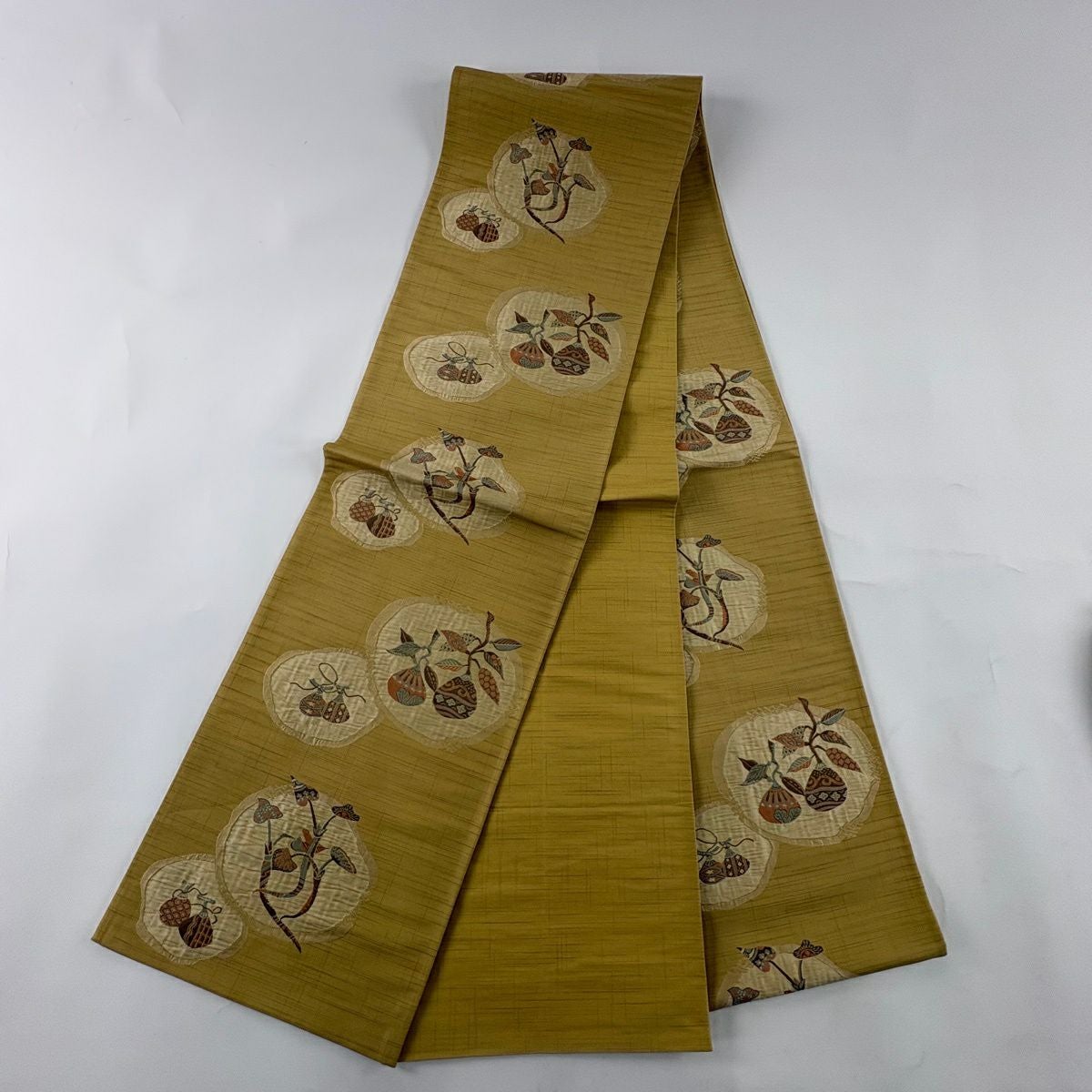 【在庫一掃】 【美品】 名古屋帯 逸品 入子菱 花菱 唐織 金糸 薄黄 正絹