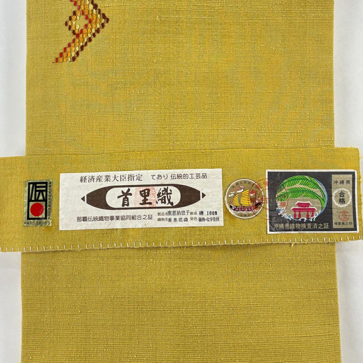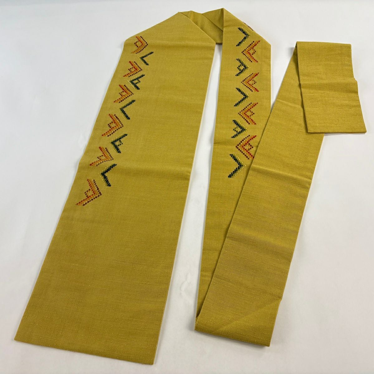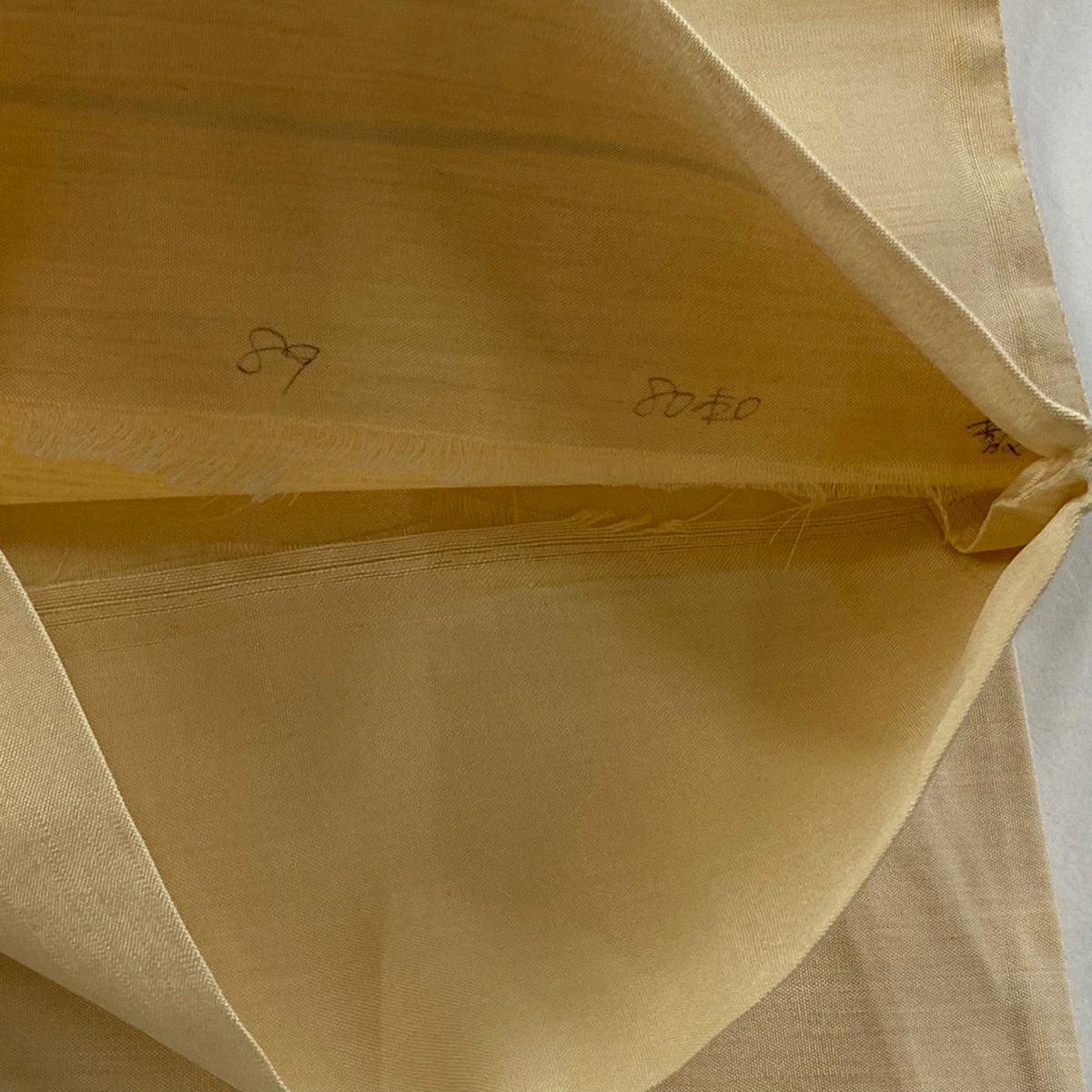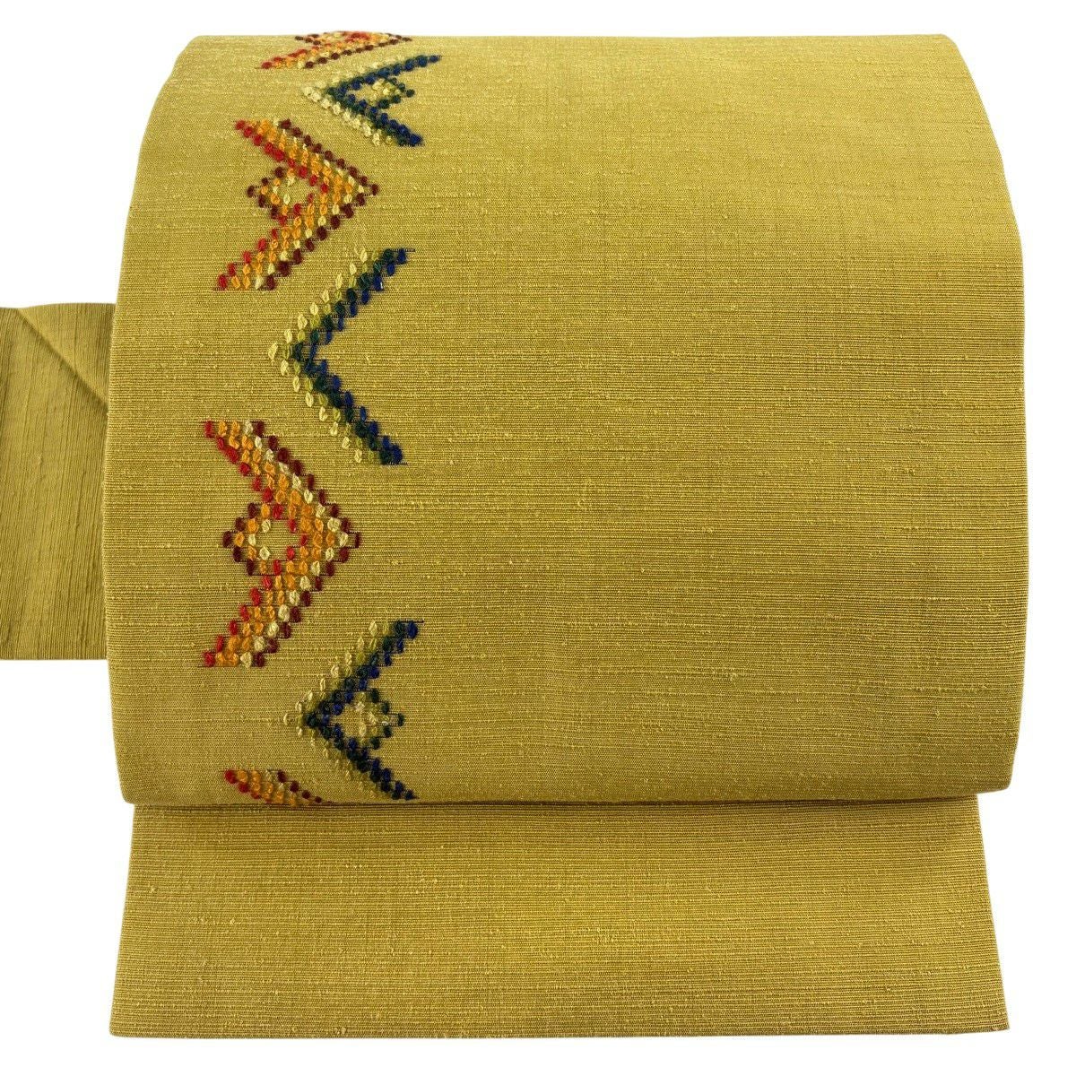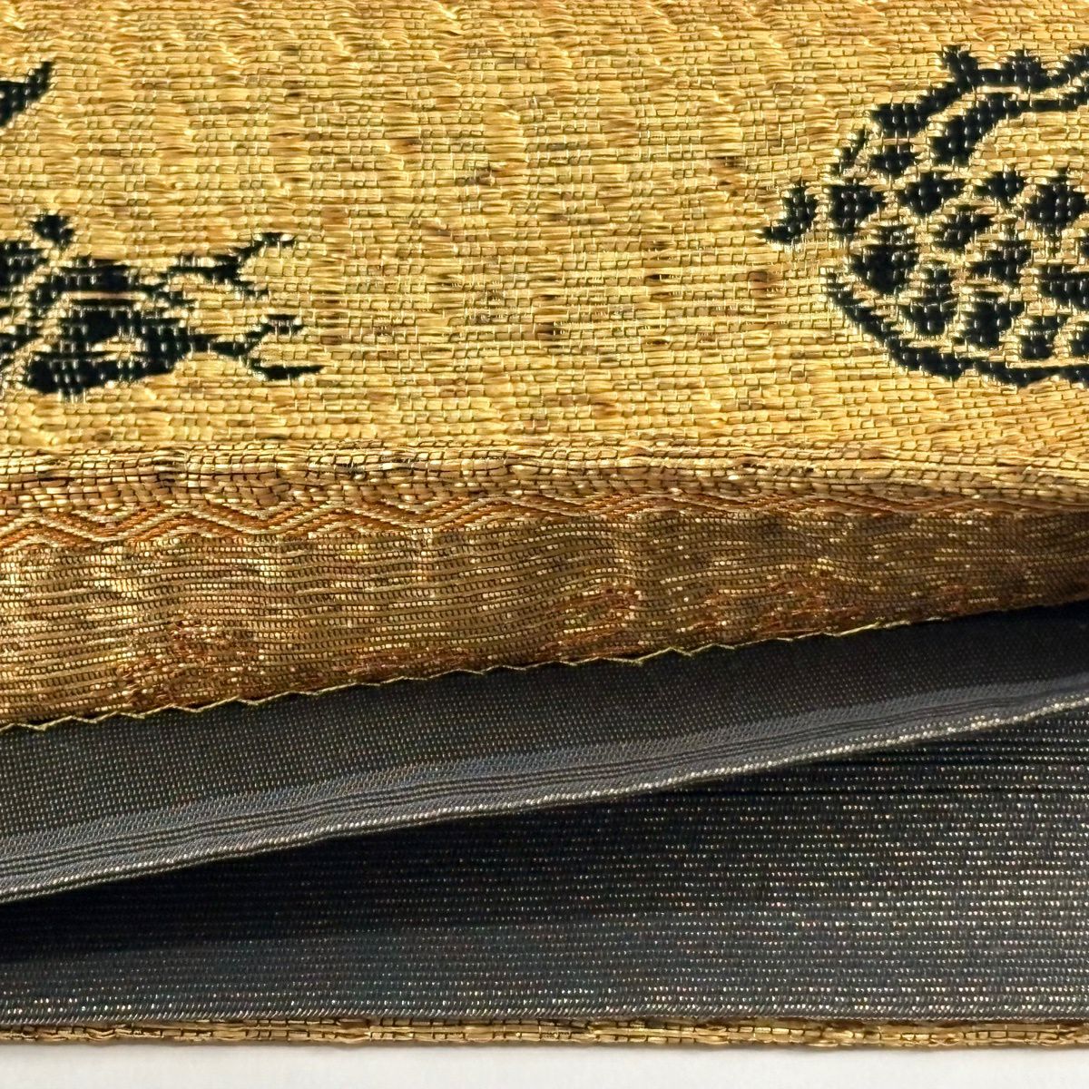 【在庫一掃】 【美品】 名古屋帯 逸品 入子菱 花菱 唐織 金糸 薄黄 正絹