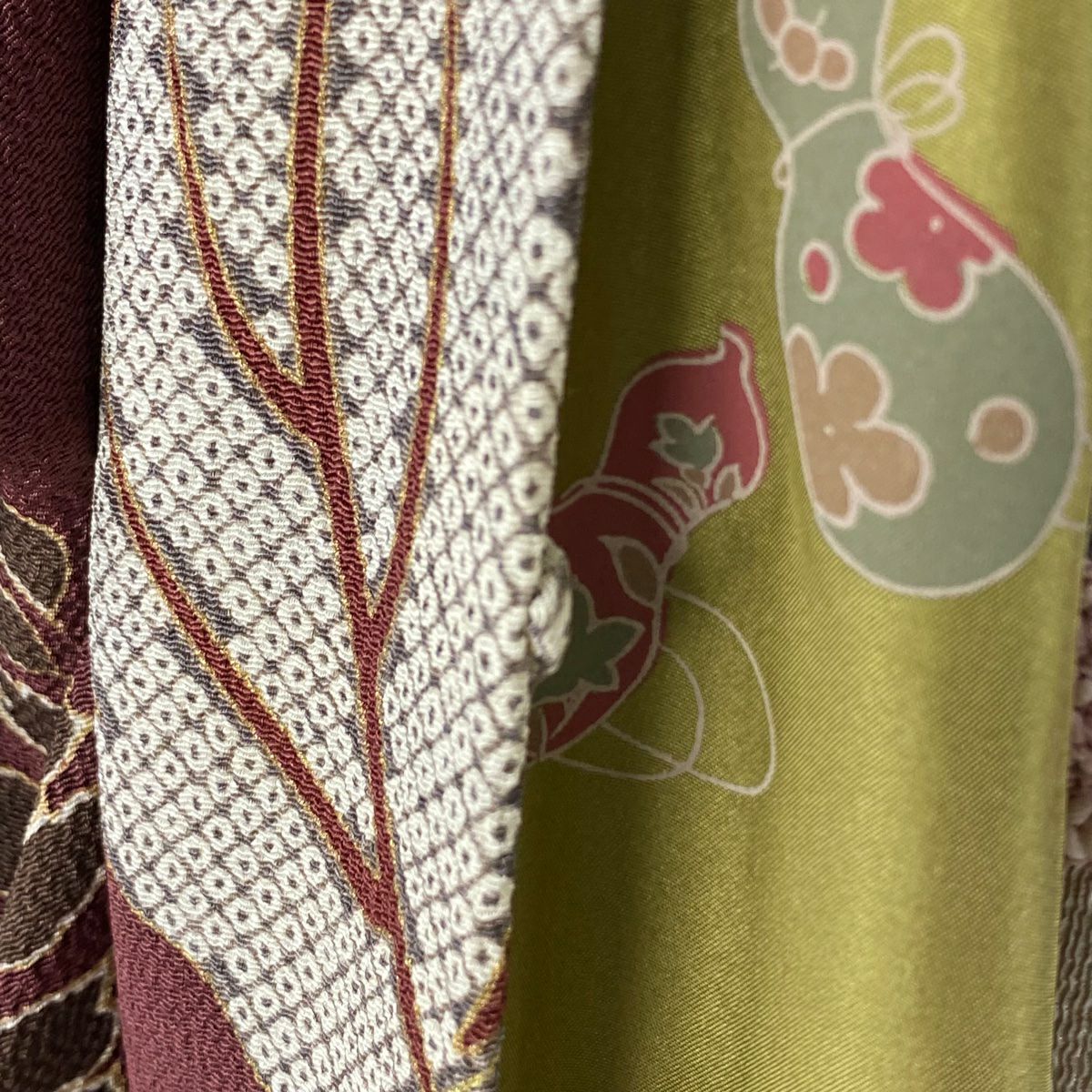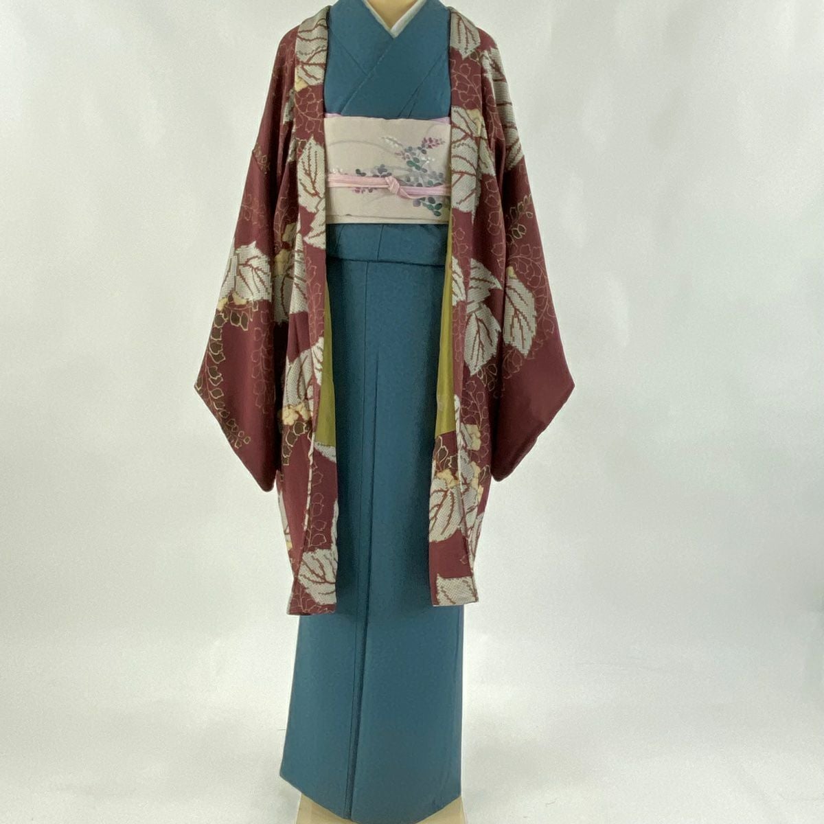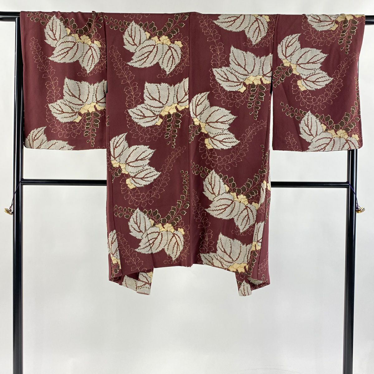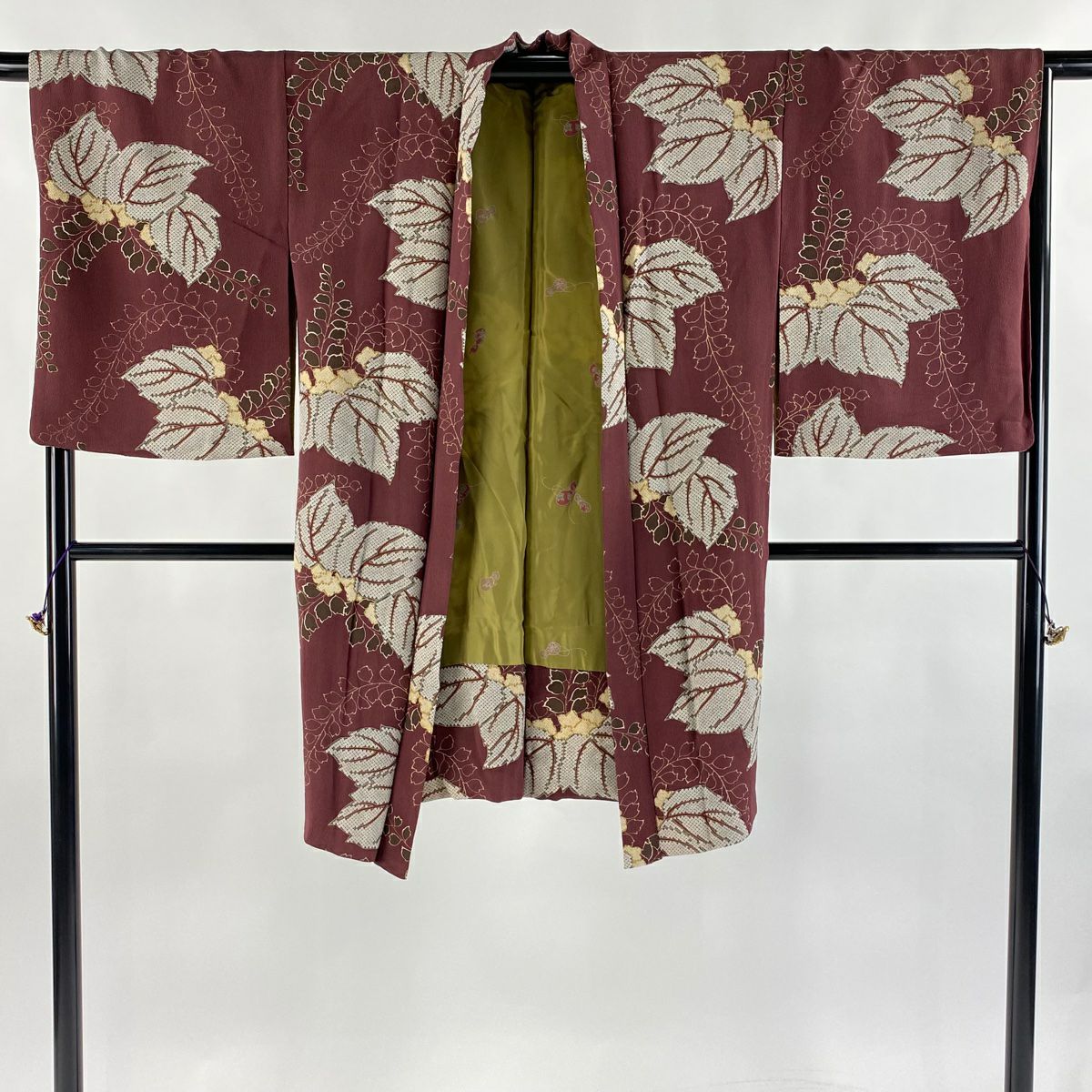 羽織 身丈100cm 裄丈67.5cm L 桐 縮緬 金彩 赤紫 正絹 逸品