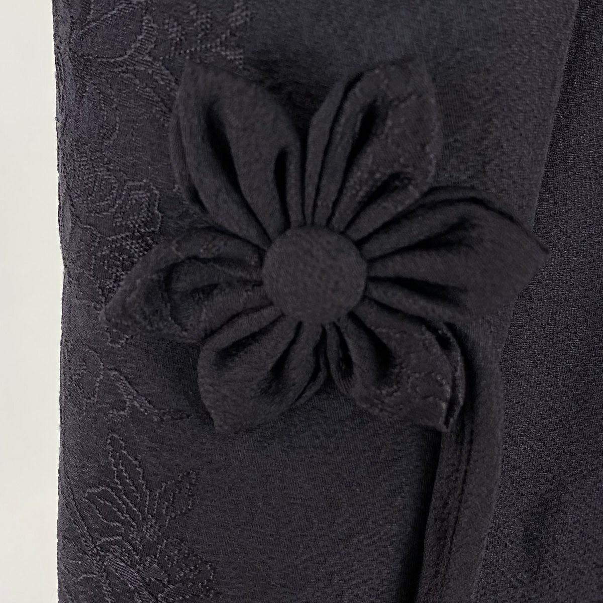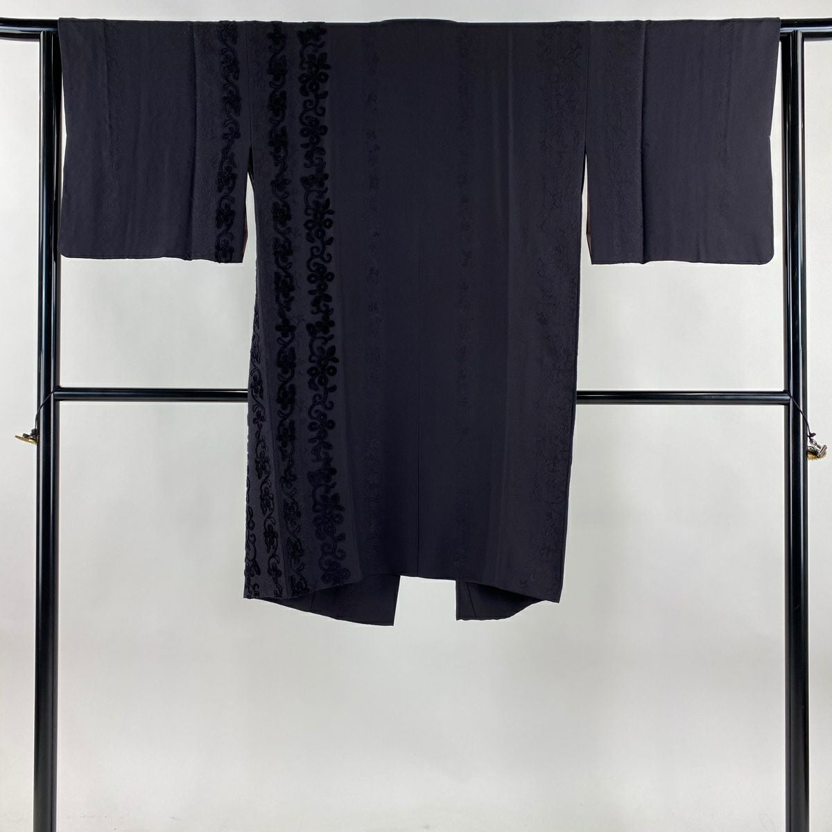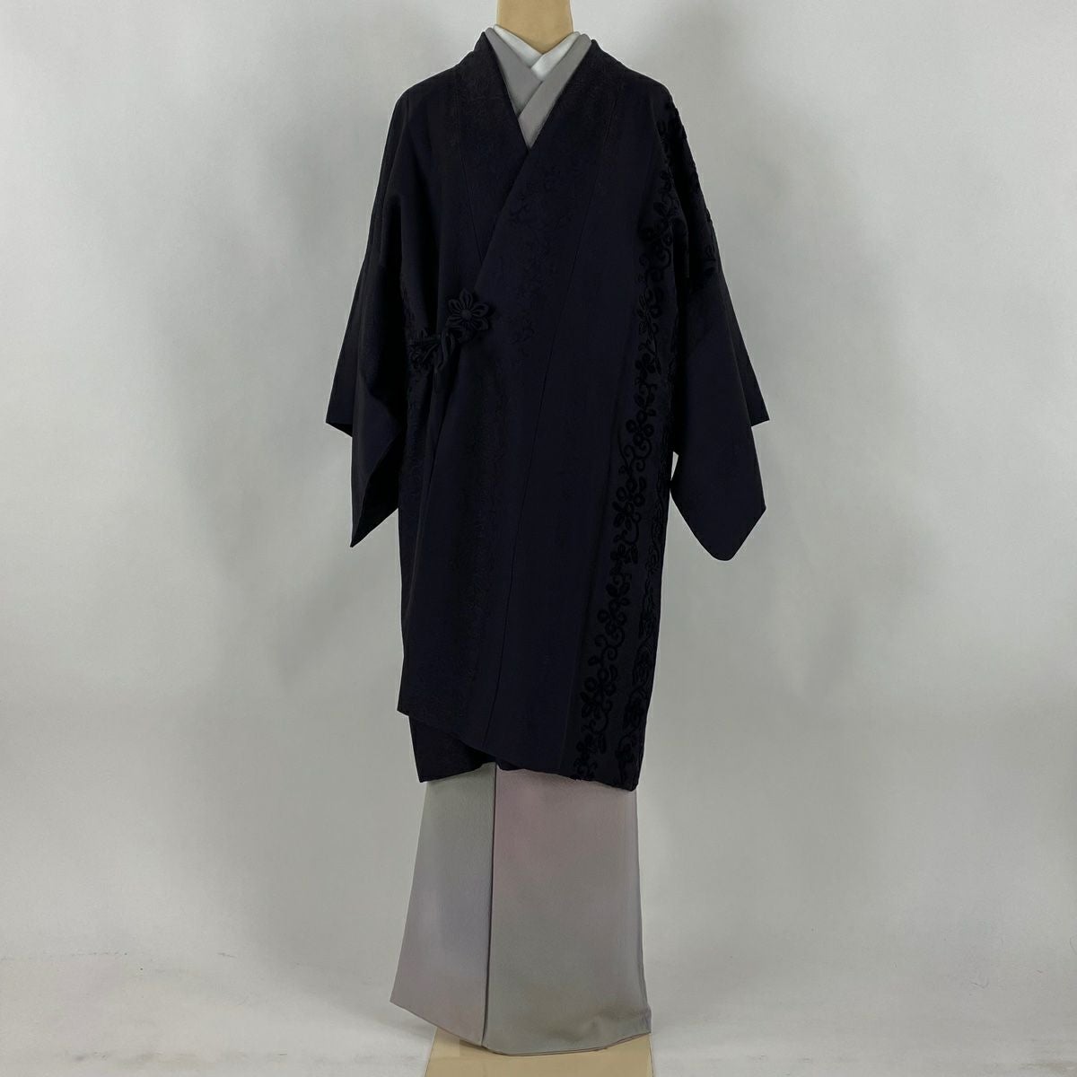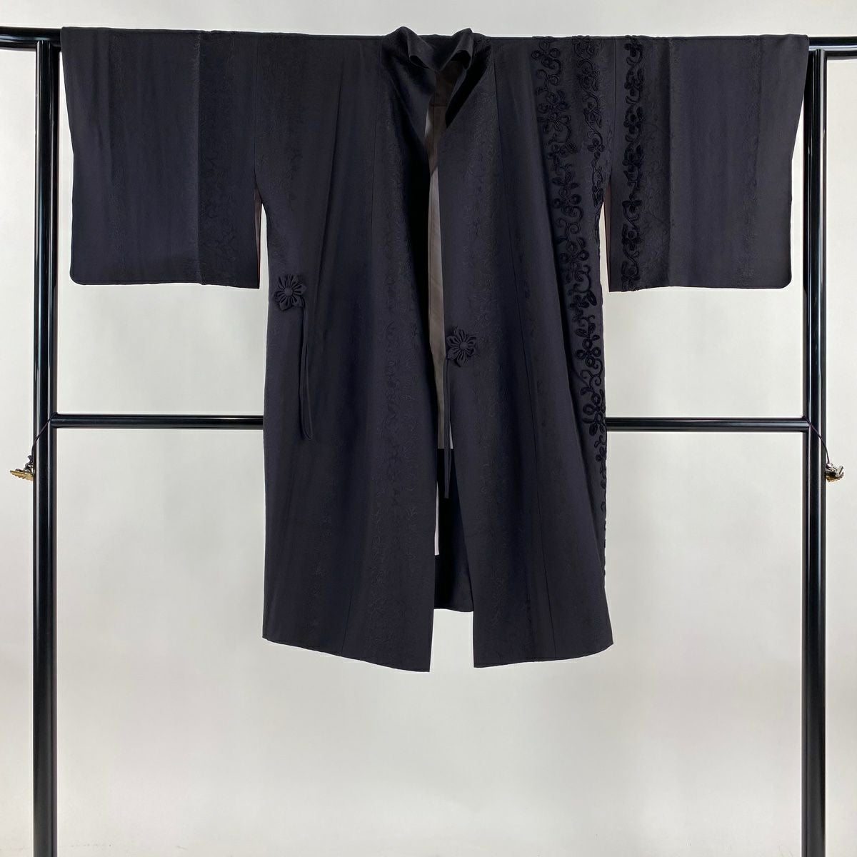 【在庫一掃】 道中着 身丈102cm 裄丈62cm S 花唐草 黒 正絹 逸品