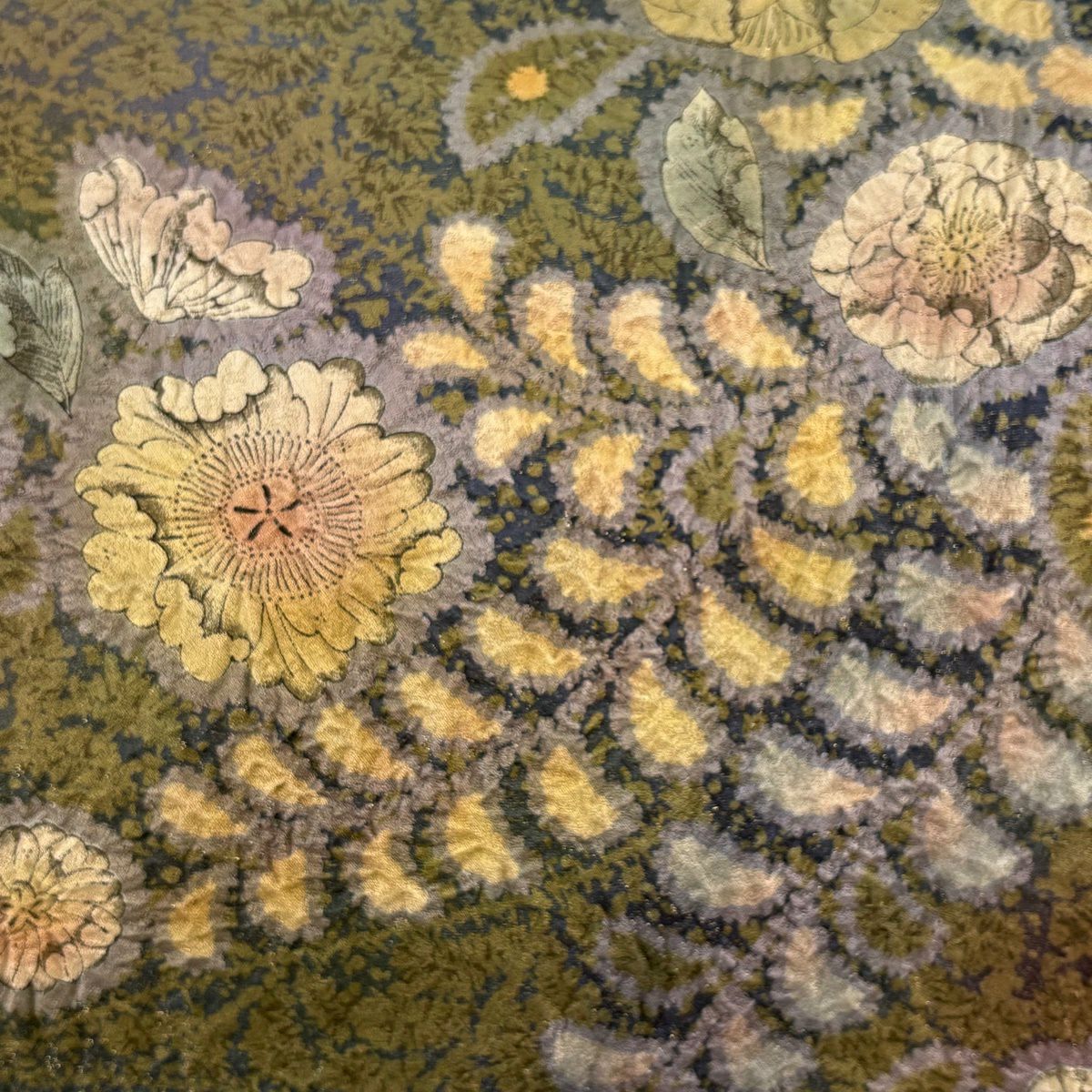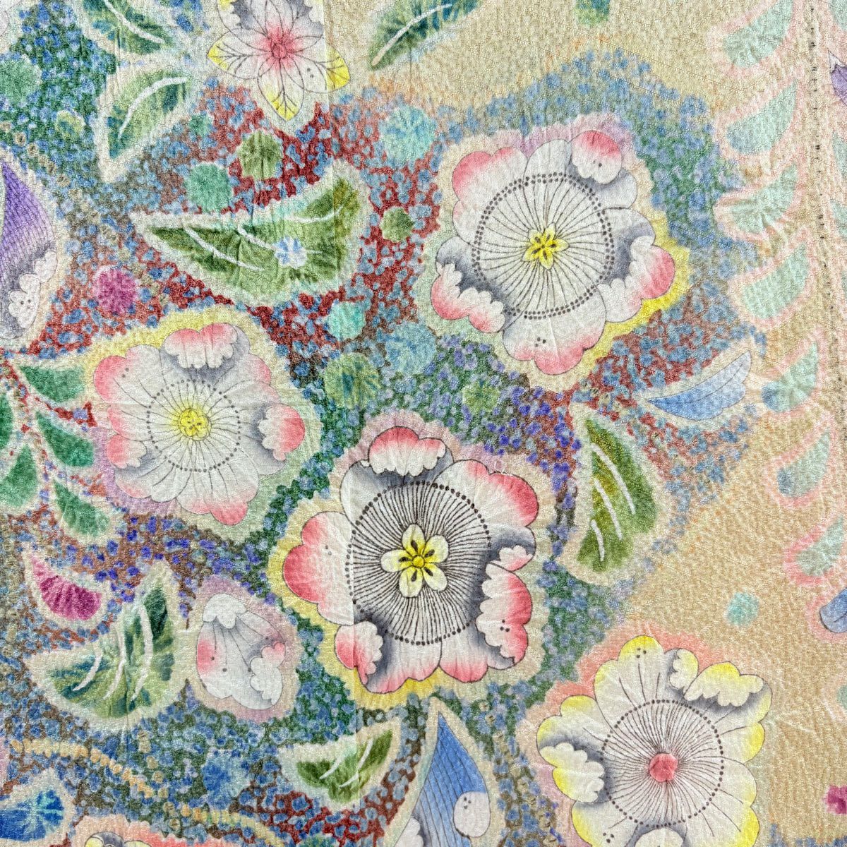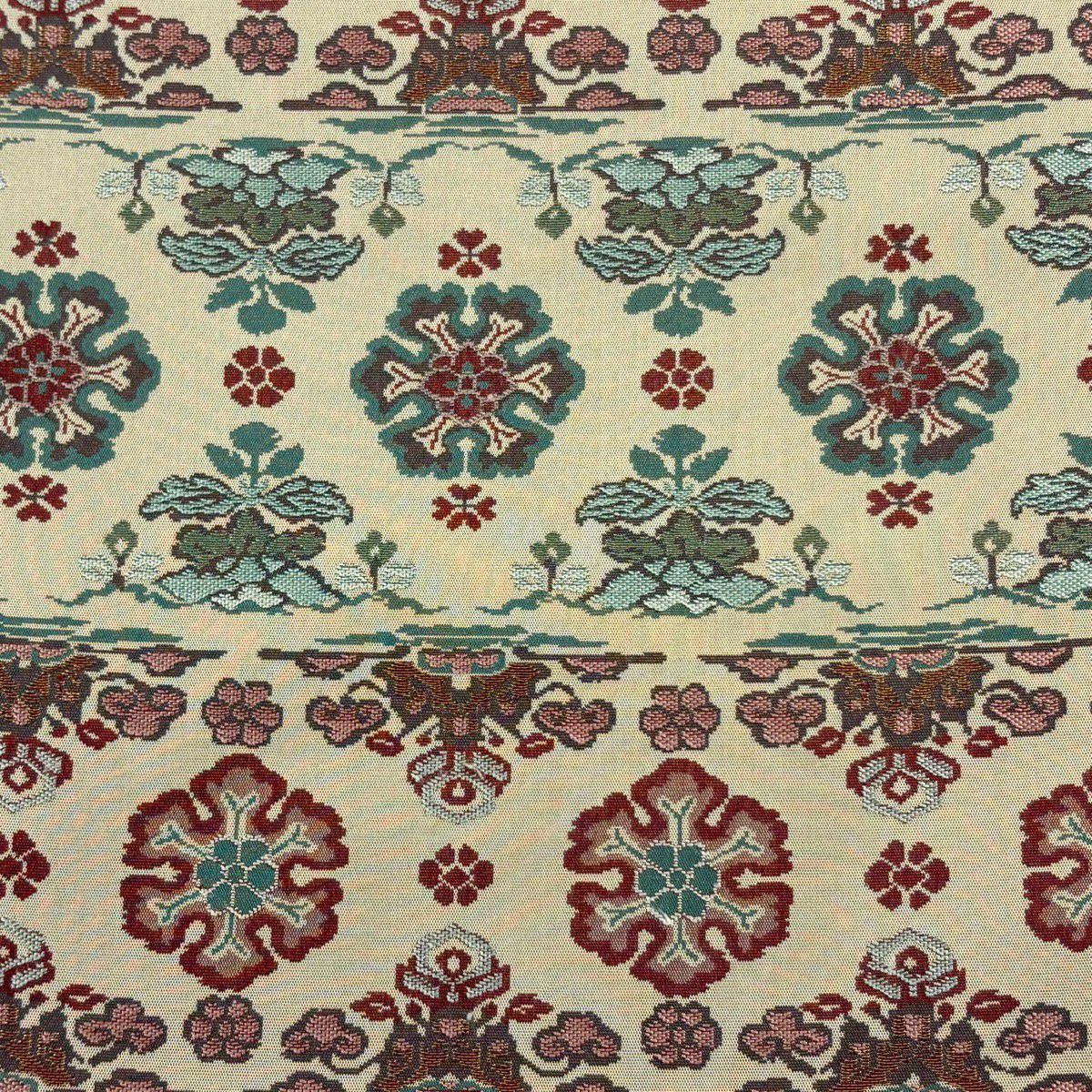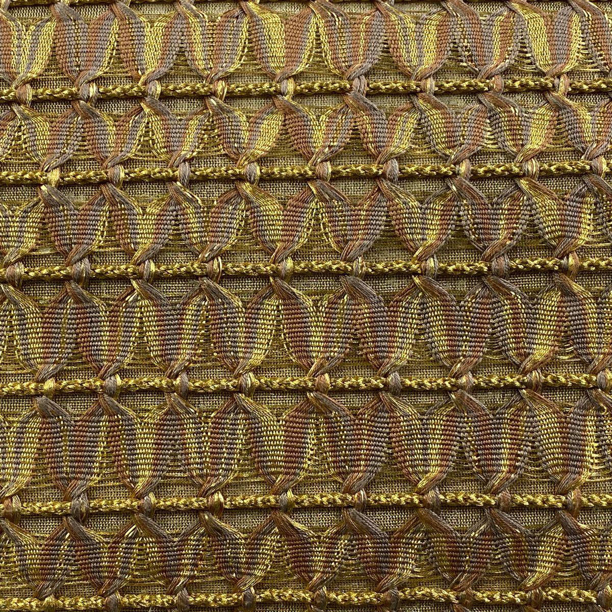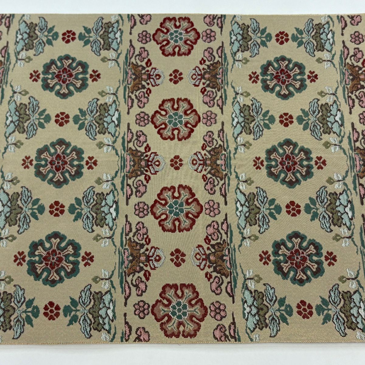 【美品】 袋帯 逸品 亀甲 草花 相良刺繍 金糸 ベージュ お太鼓柄 正絹