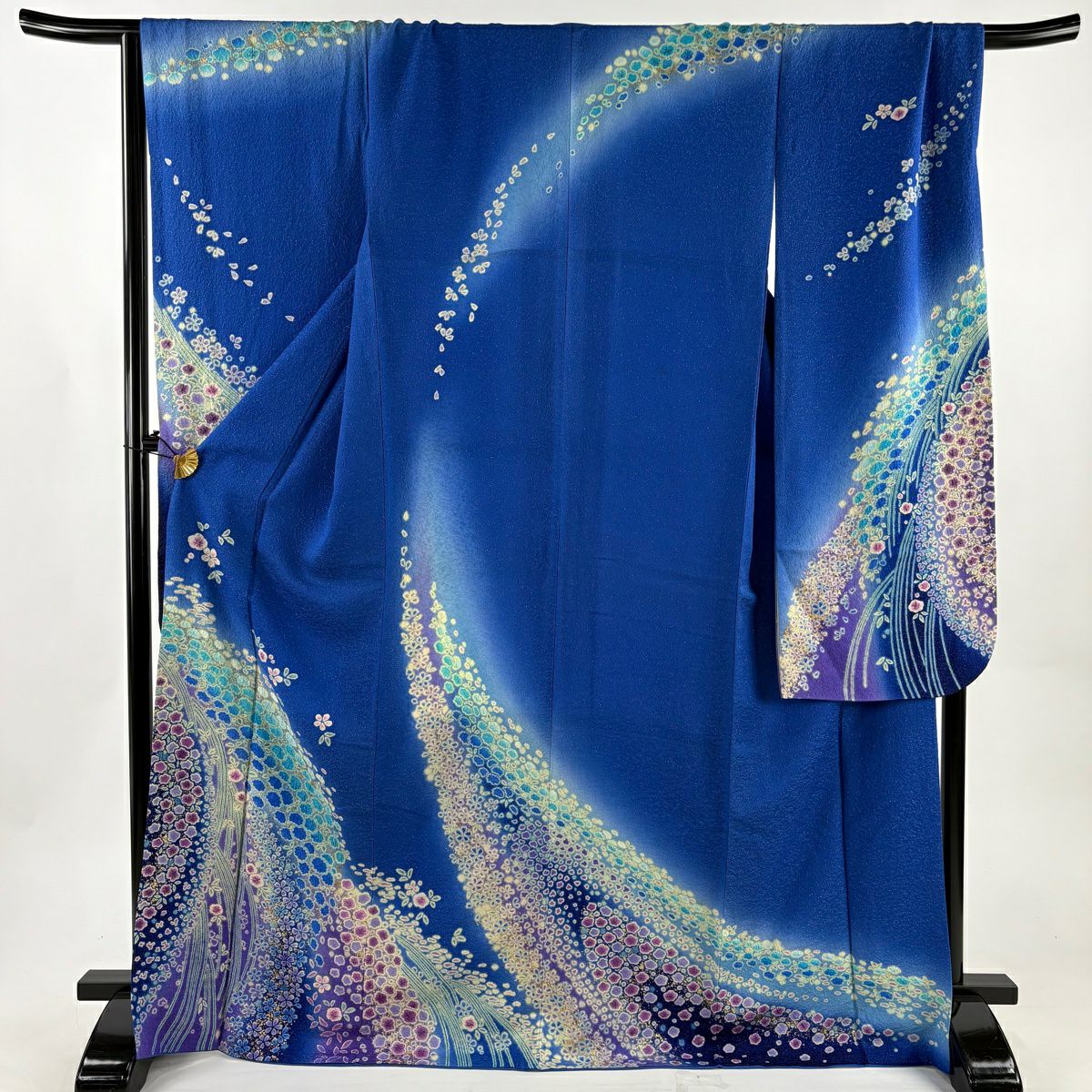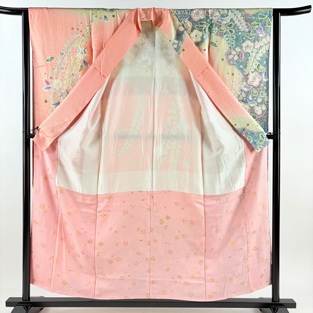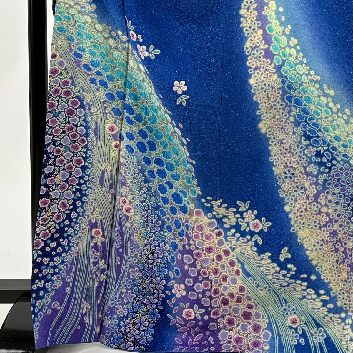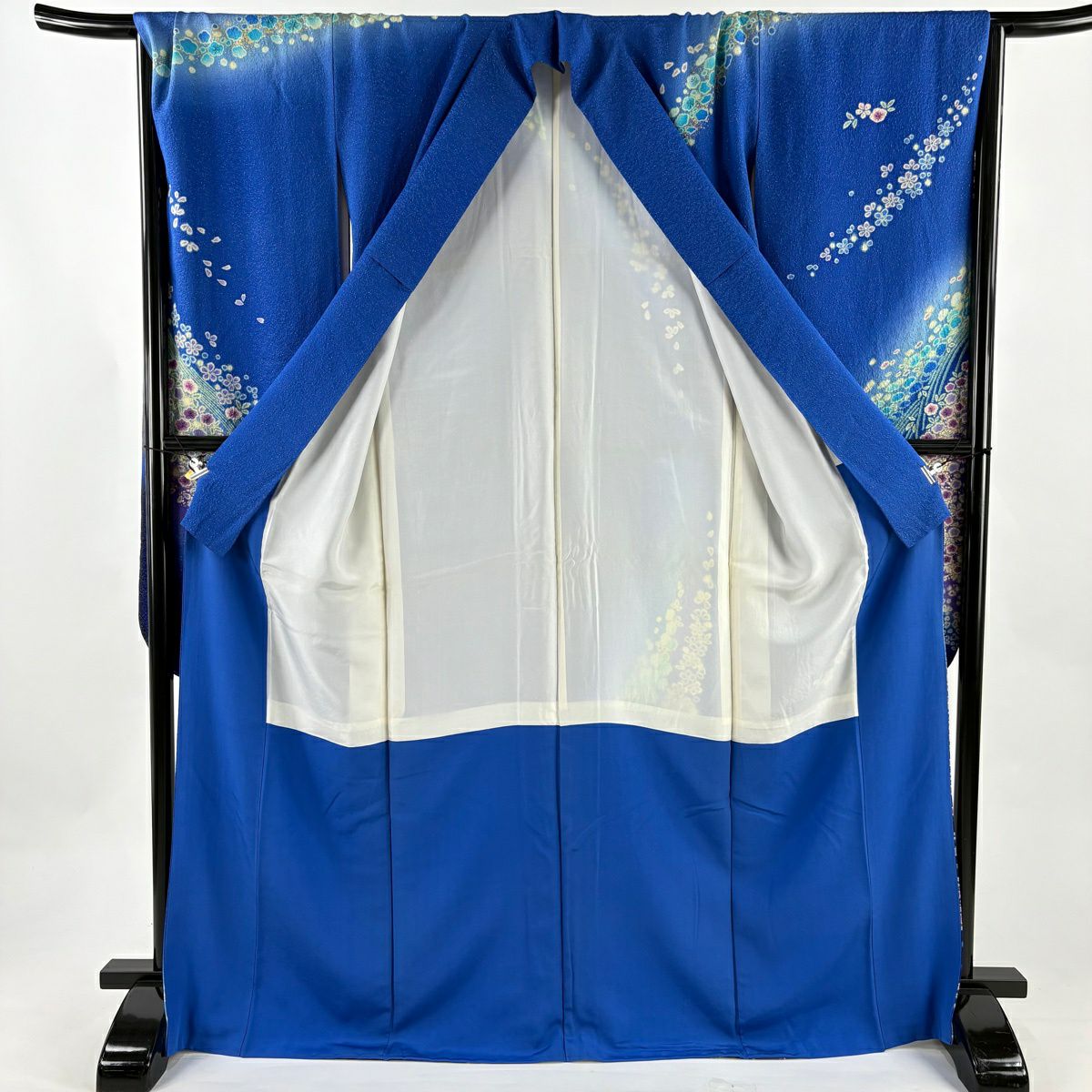 振袖 身丈171cm 裄丈69cm L 袷 草花 梅 金通し 金彩 青 正絹 逸品