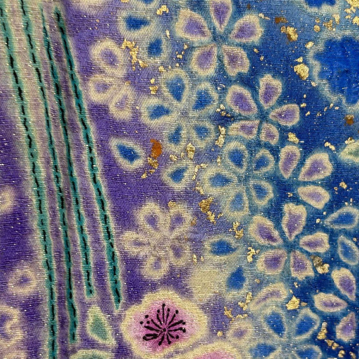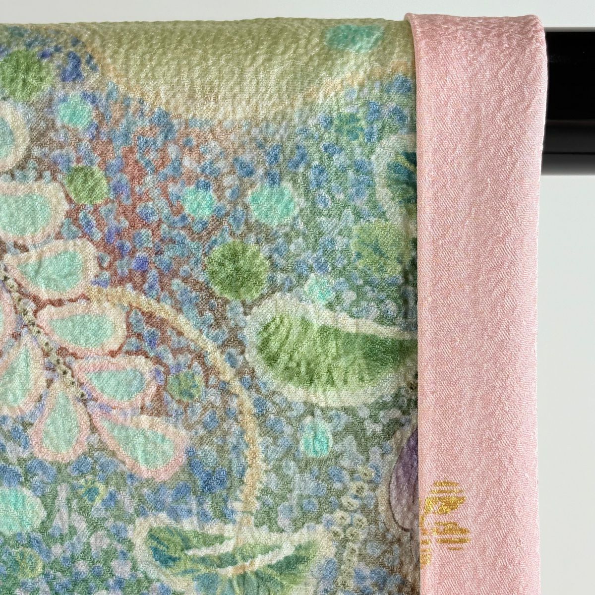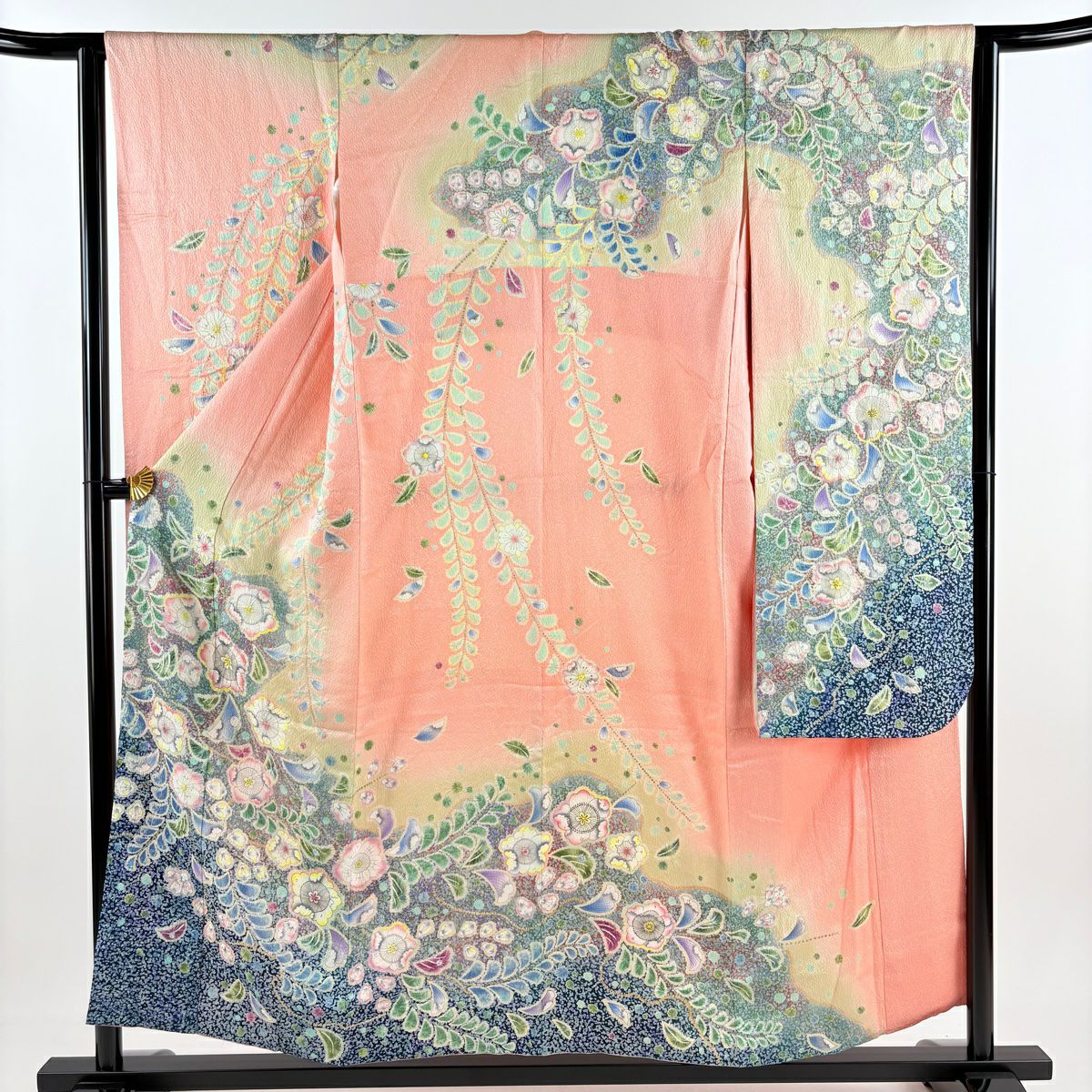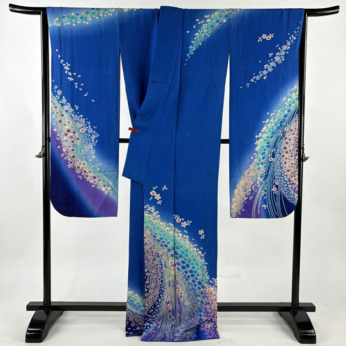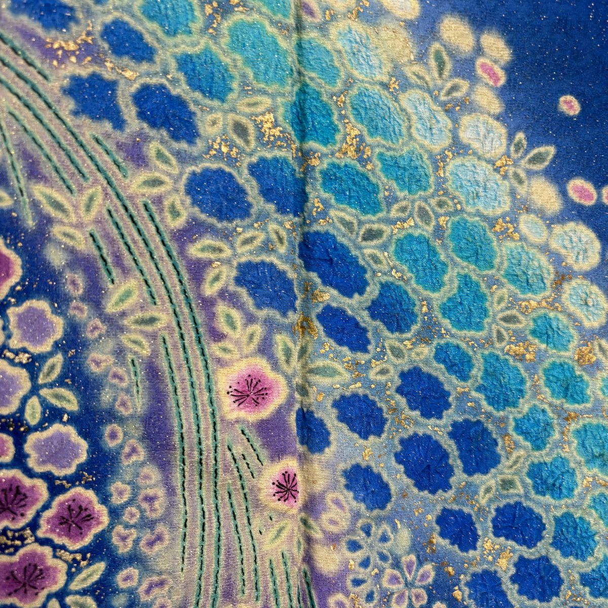 振袖 身丈171cm 裄丈69cm L 袷 草花 梅 金通し 金彩 青 正絹 逸品