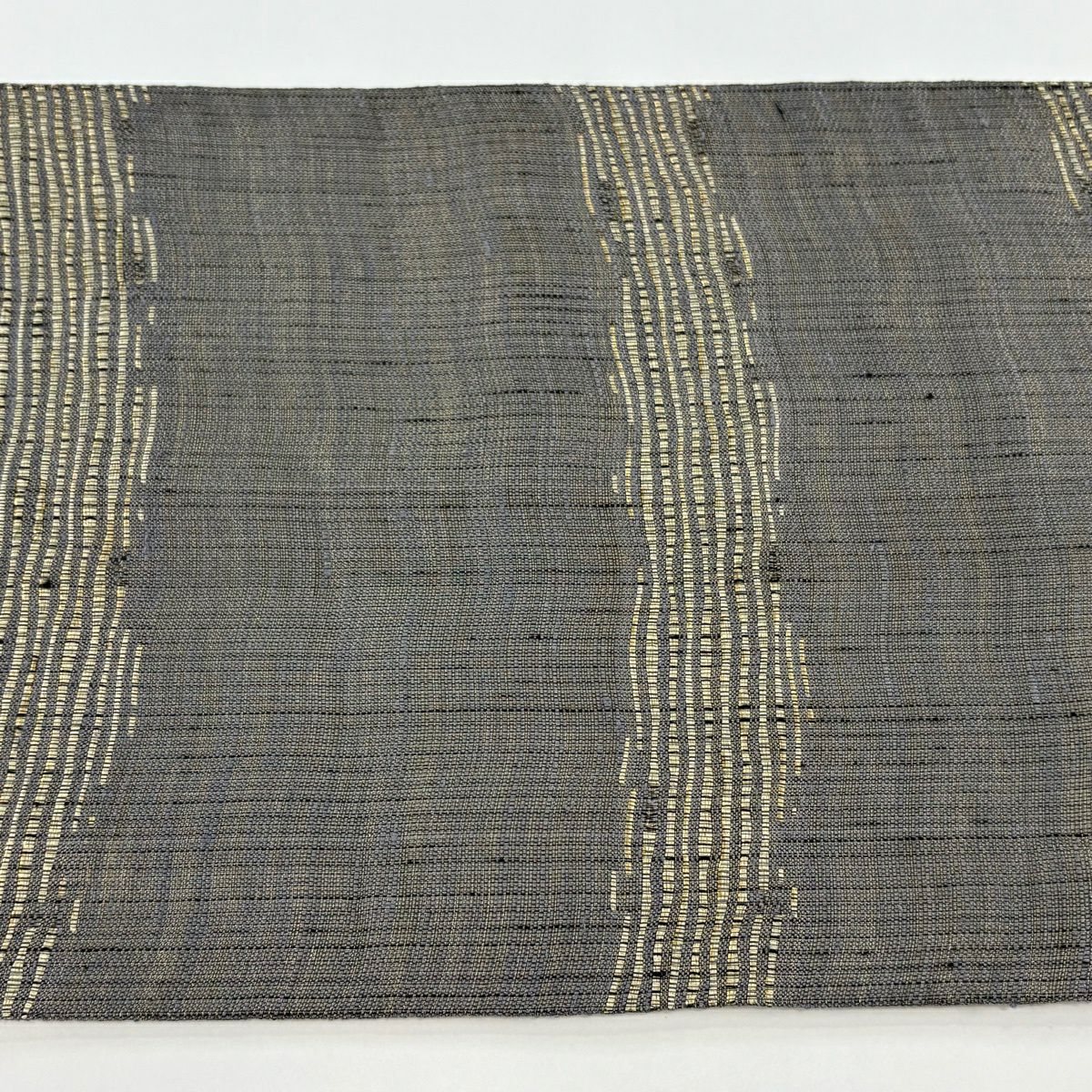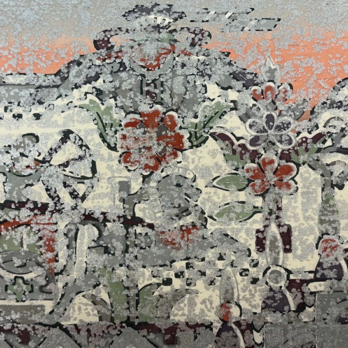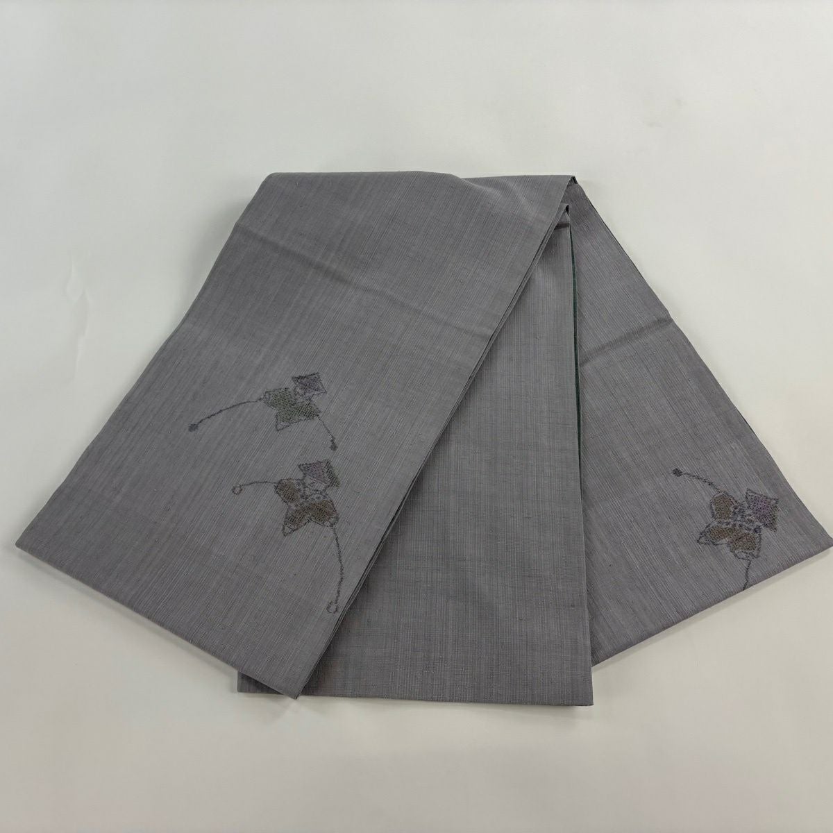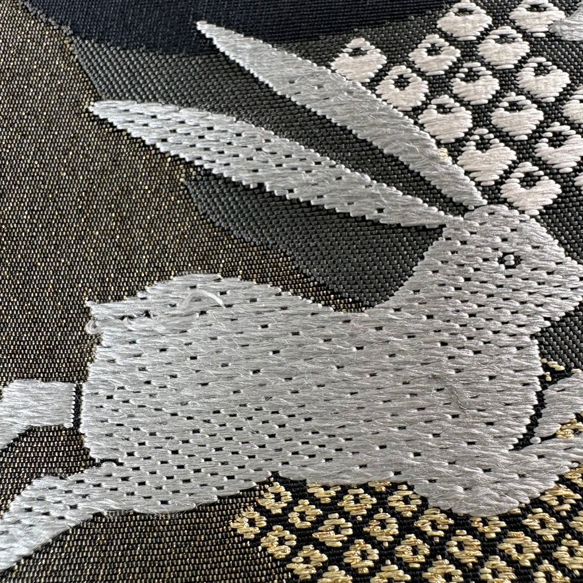 【美品】 袋帯 逸品 佐波理 落款あり 佐波理綴 落葉未定 銀糸 箔 灰色 六通 正絹