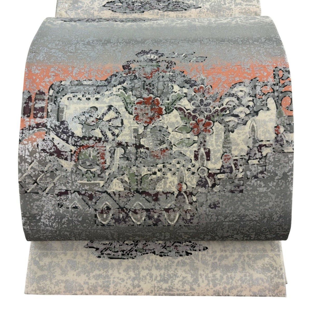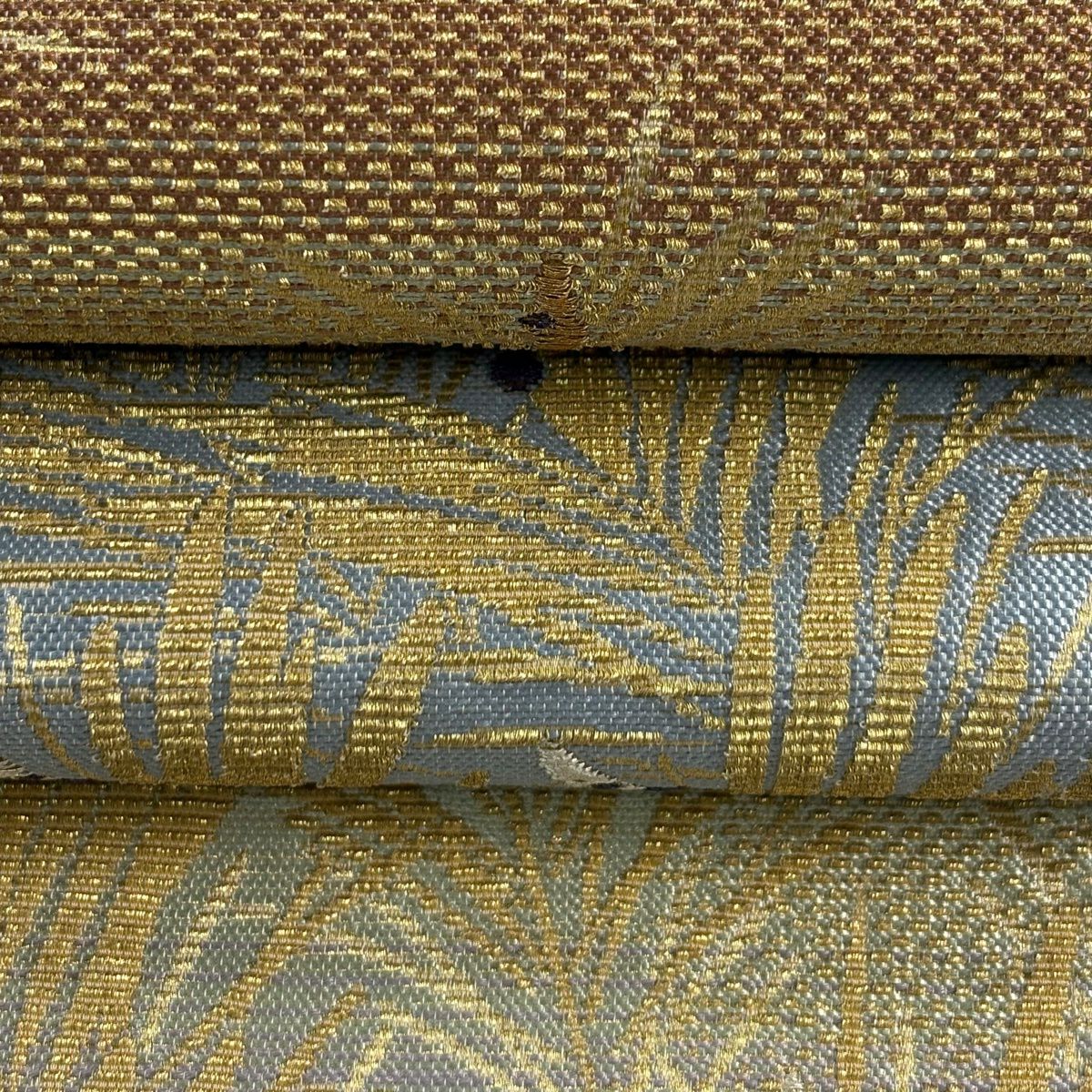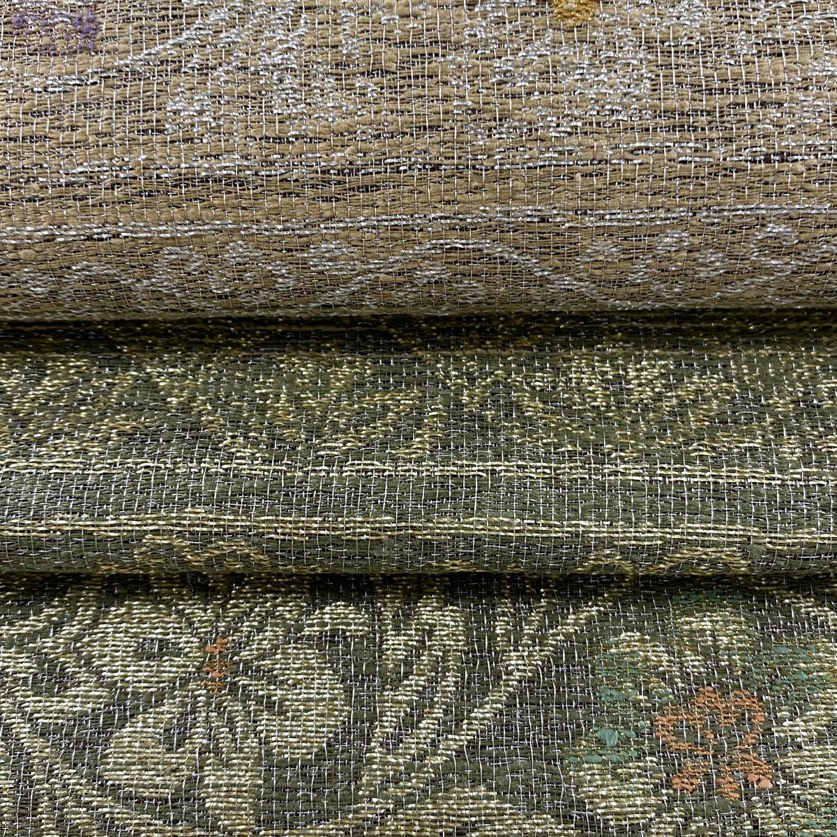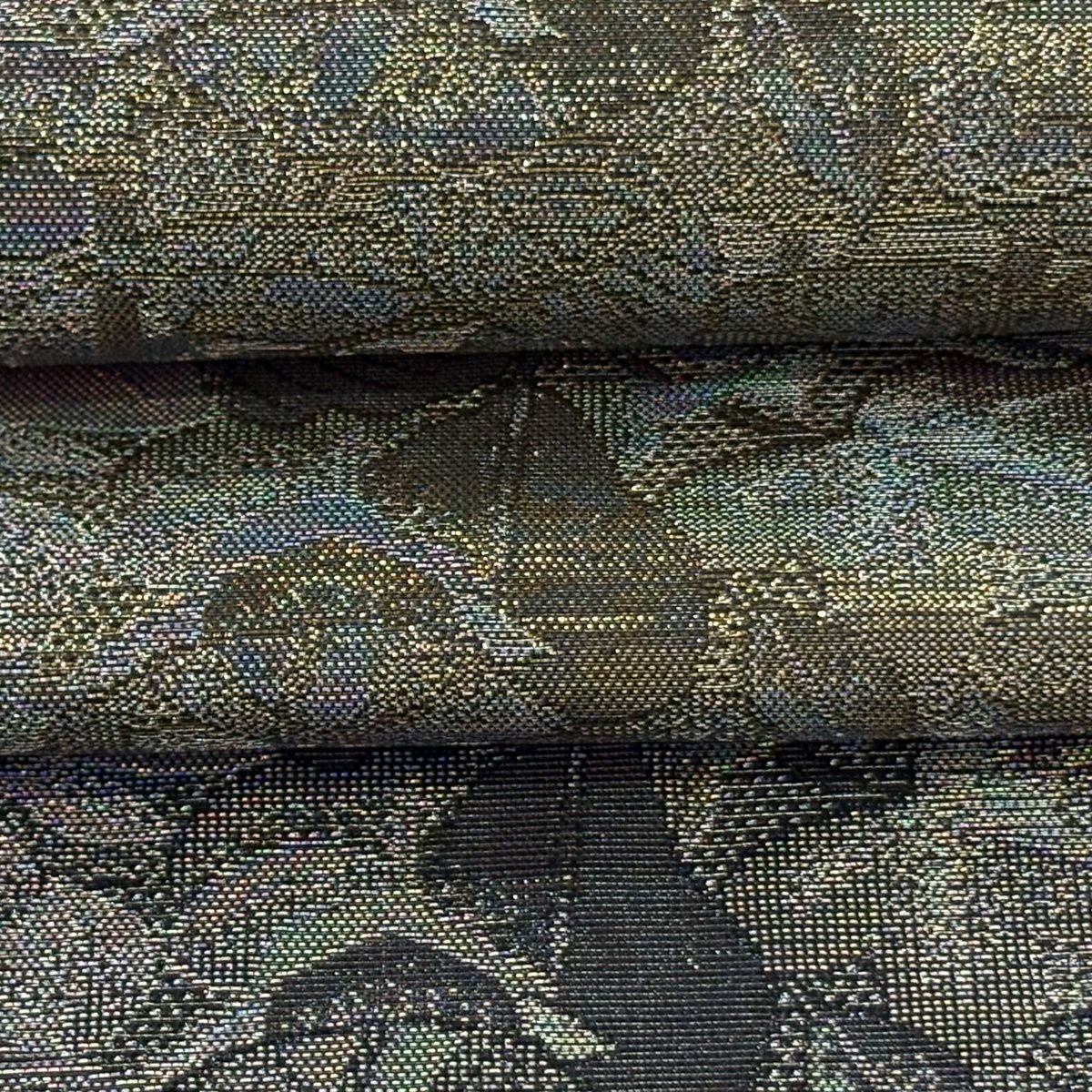 【美品】 袋帯 逸品 佐波理 落款あり 佐波理綴 落葉未定 銀糸 箔 灰色 六通 正絹