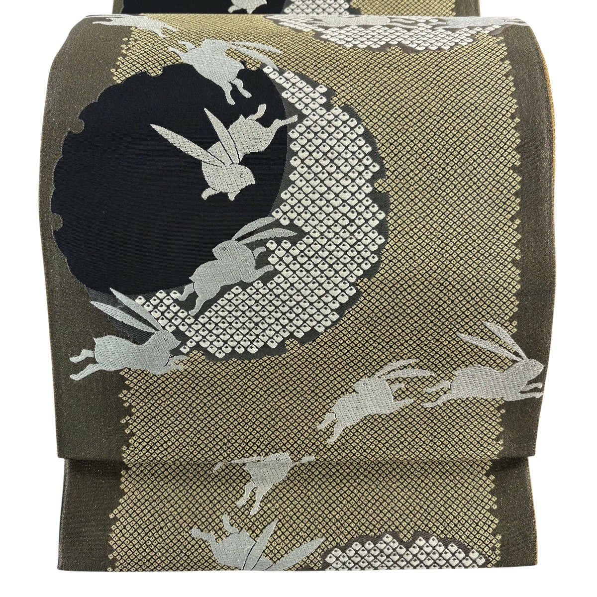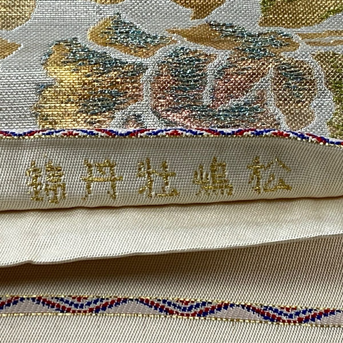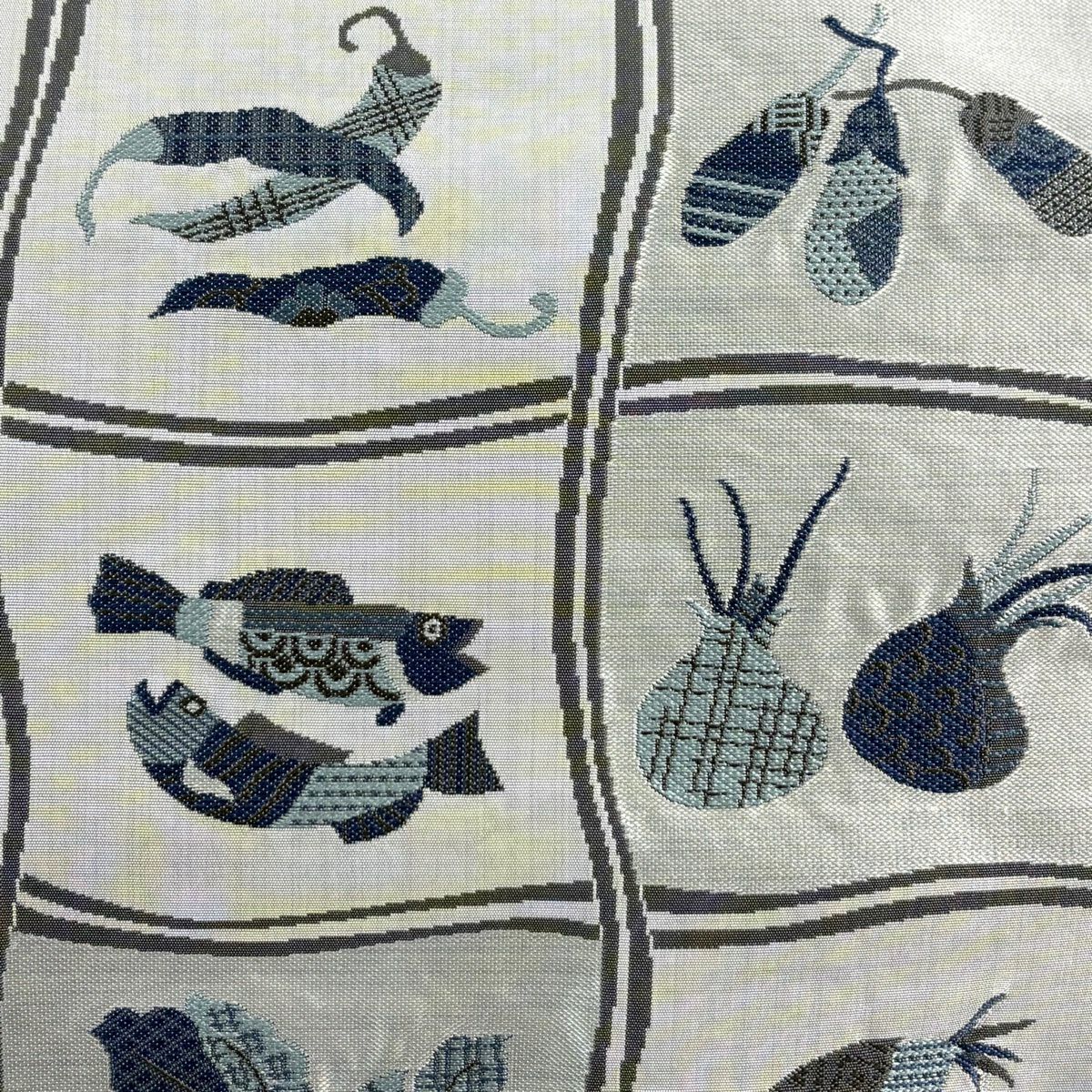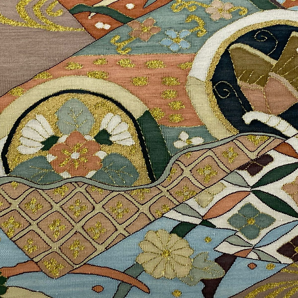 【美品】 袋帯 逸品 渡文 落款あり 動物 さざ波 金糸 灰色 お太鼓柄 正絹