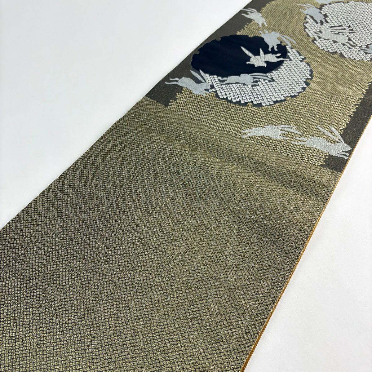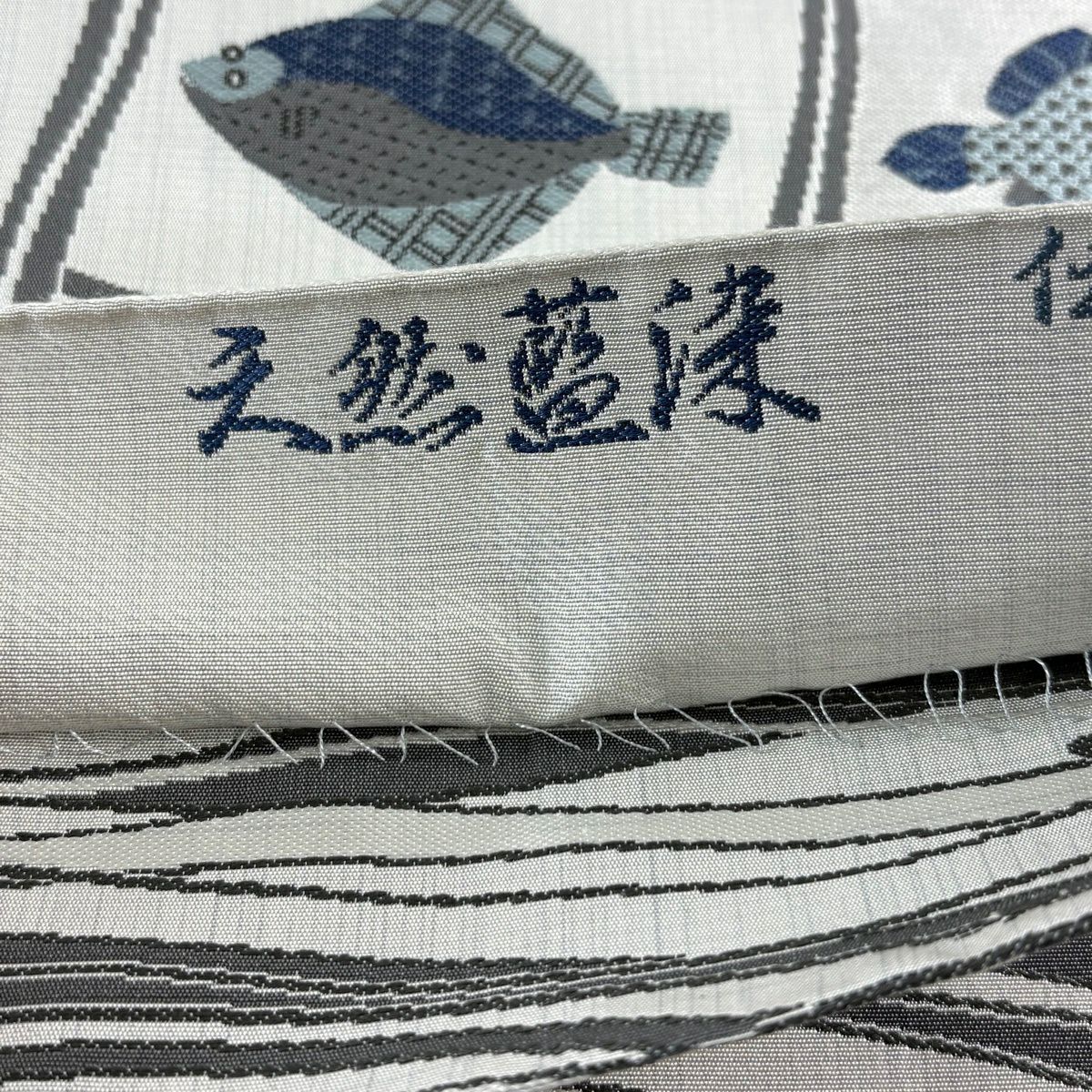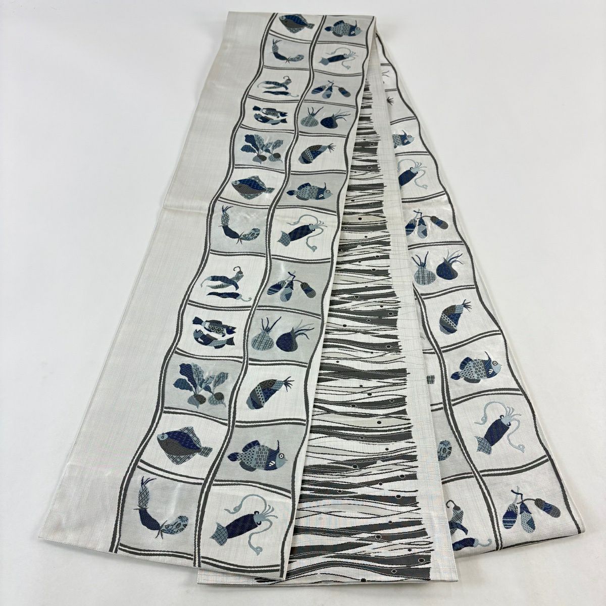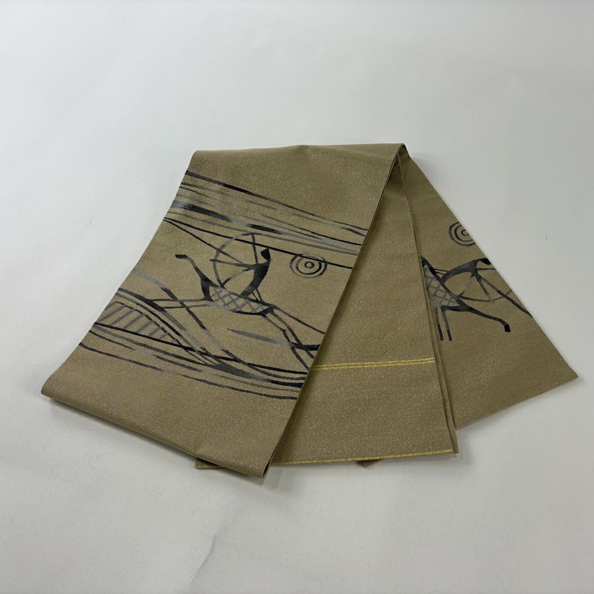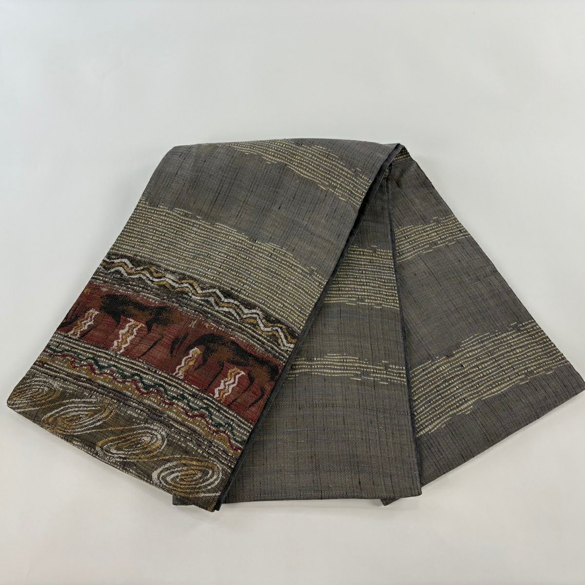【美品】 袋帯 逸品 渡文 落款あり 動物 さざ波 金糸 灰色 お太鼓柄 正絹