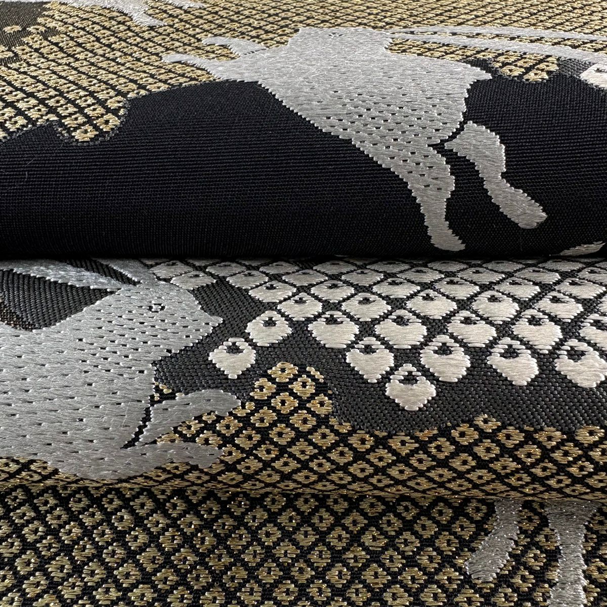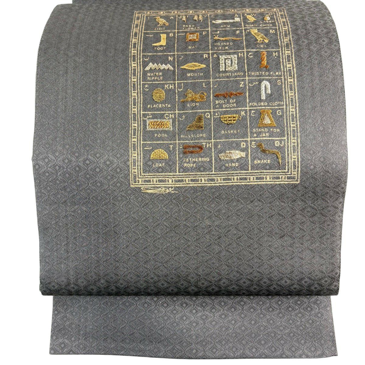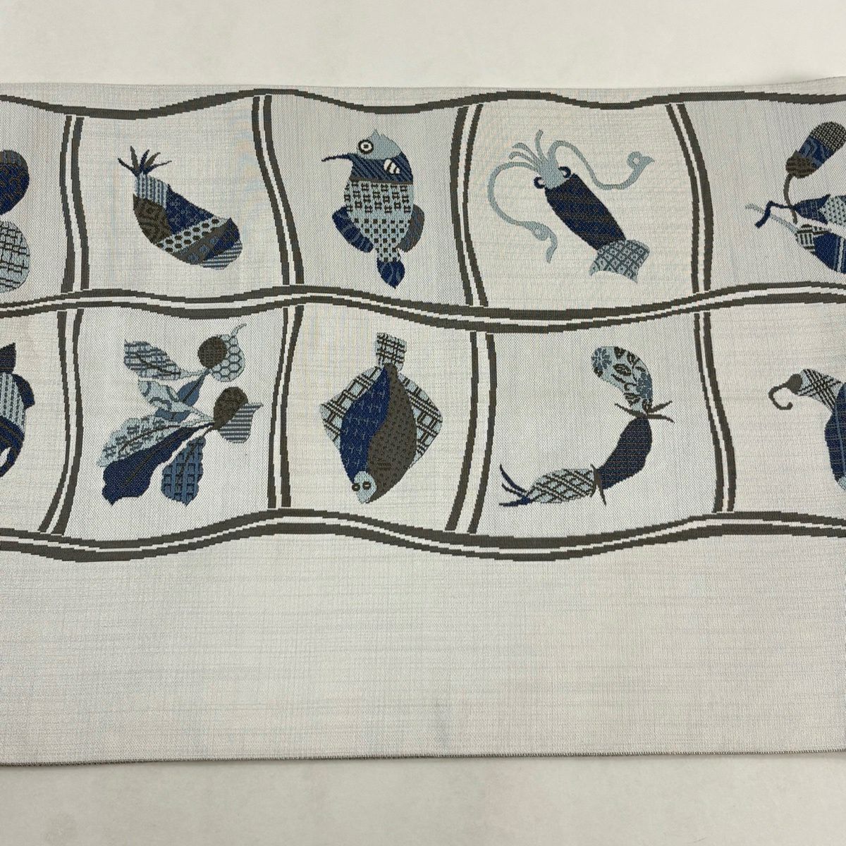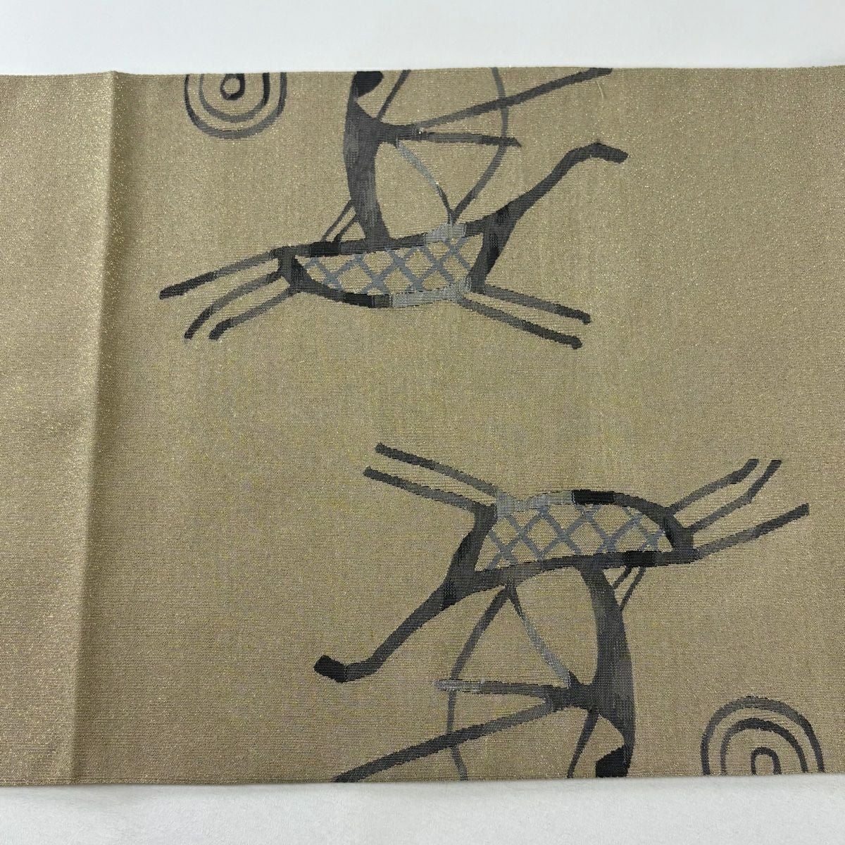 【美品】 袋帯 逸品 渡文 落款あり 動物 さざ波 金糸 灰色 お太鼓柄 正絹