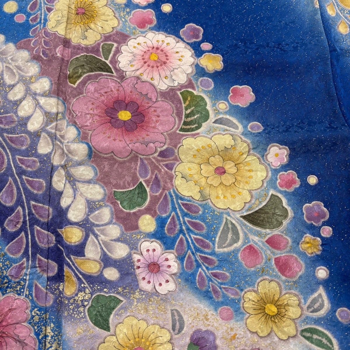 お召 身丈156cm 裄丈64cm M 袷 ますいわ屋 草花 墨色 正絹 逸品