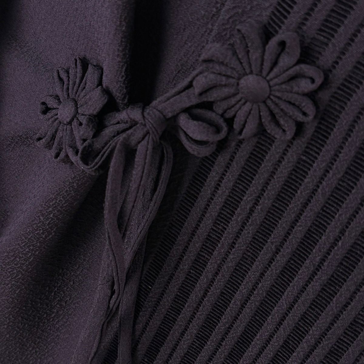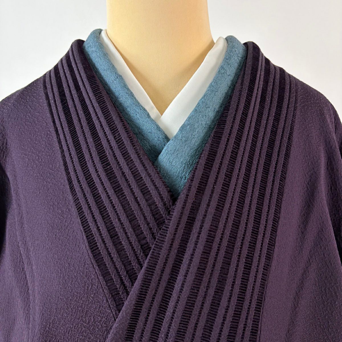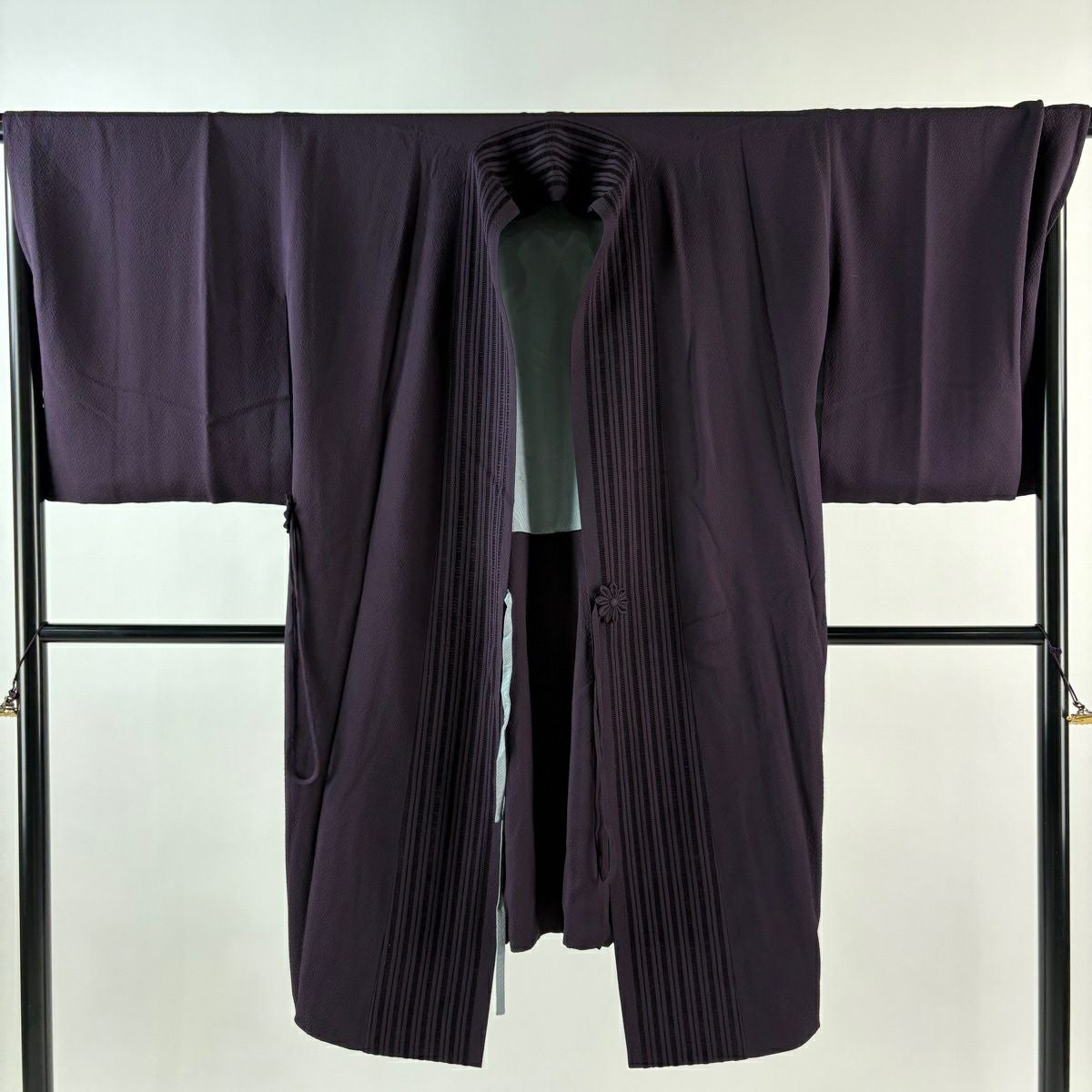 道中着 身丈110.5cm 裄丈69cm L 和装コート 縦縞 濃紫 正絹 逸品