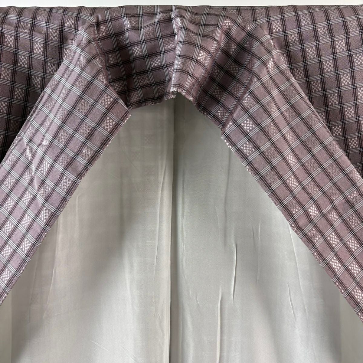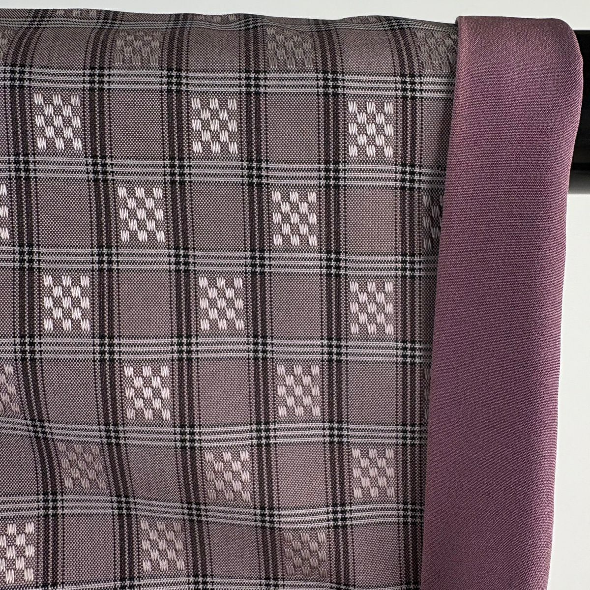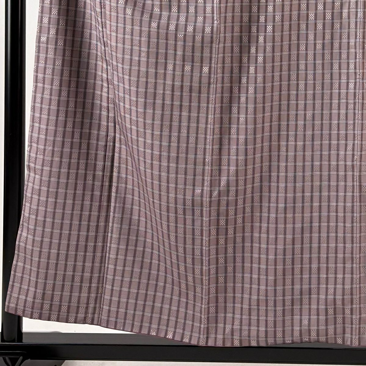 紬 身丈157.5cm 裄丈64.5cm M 袷 格子 幾何学模様 灰紫 正絹 逸品