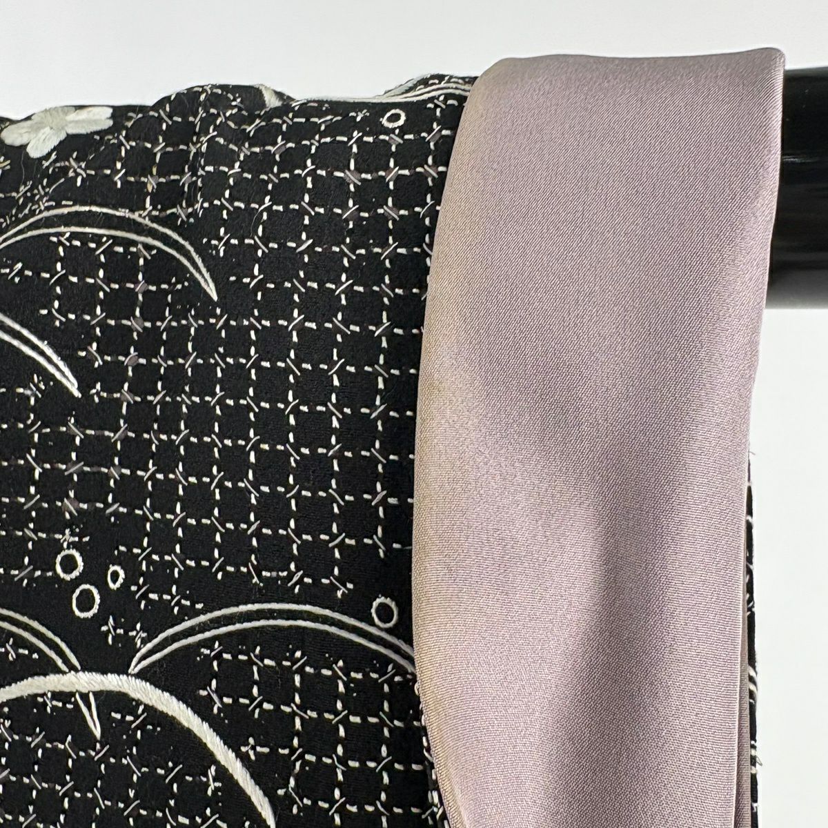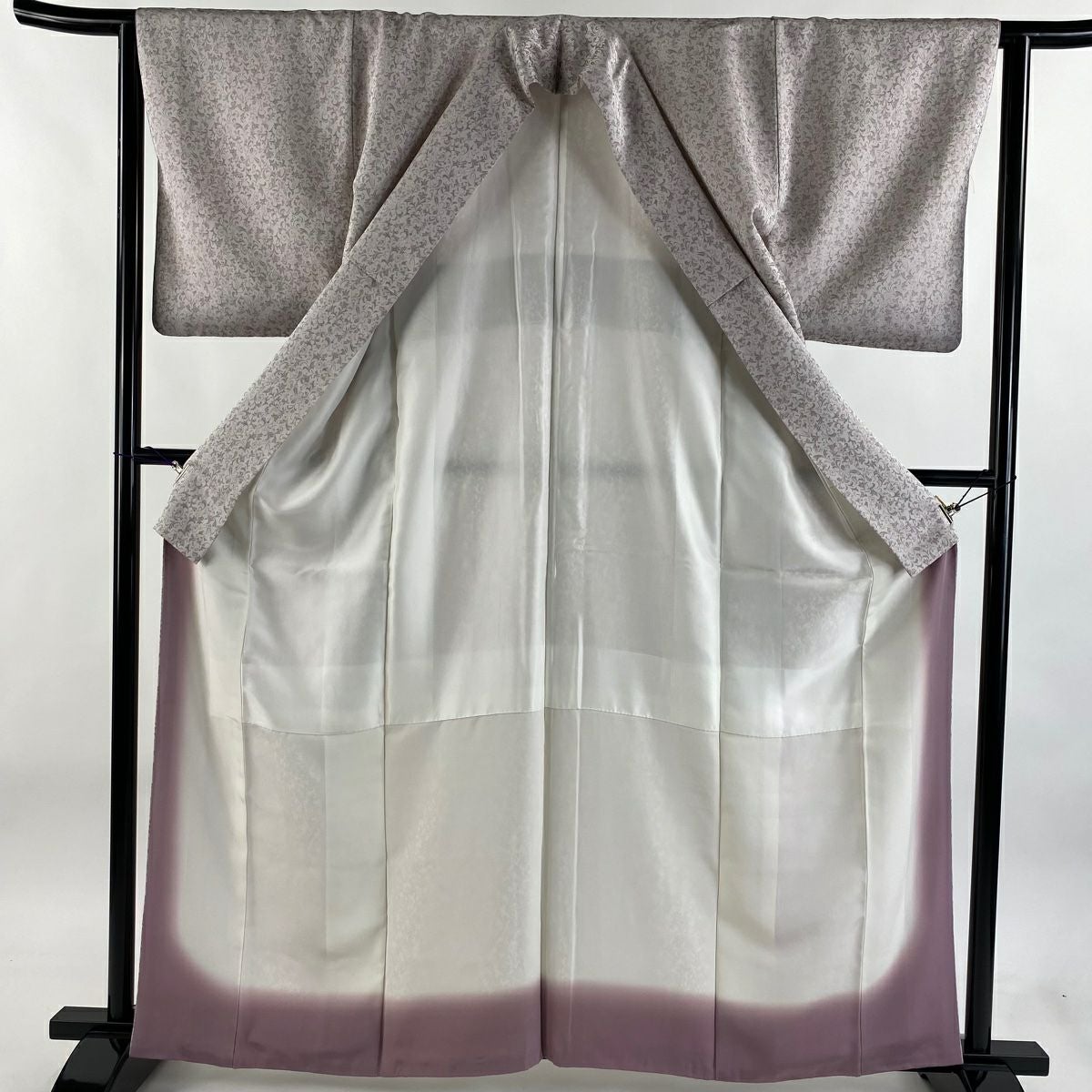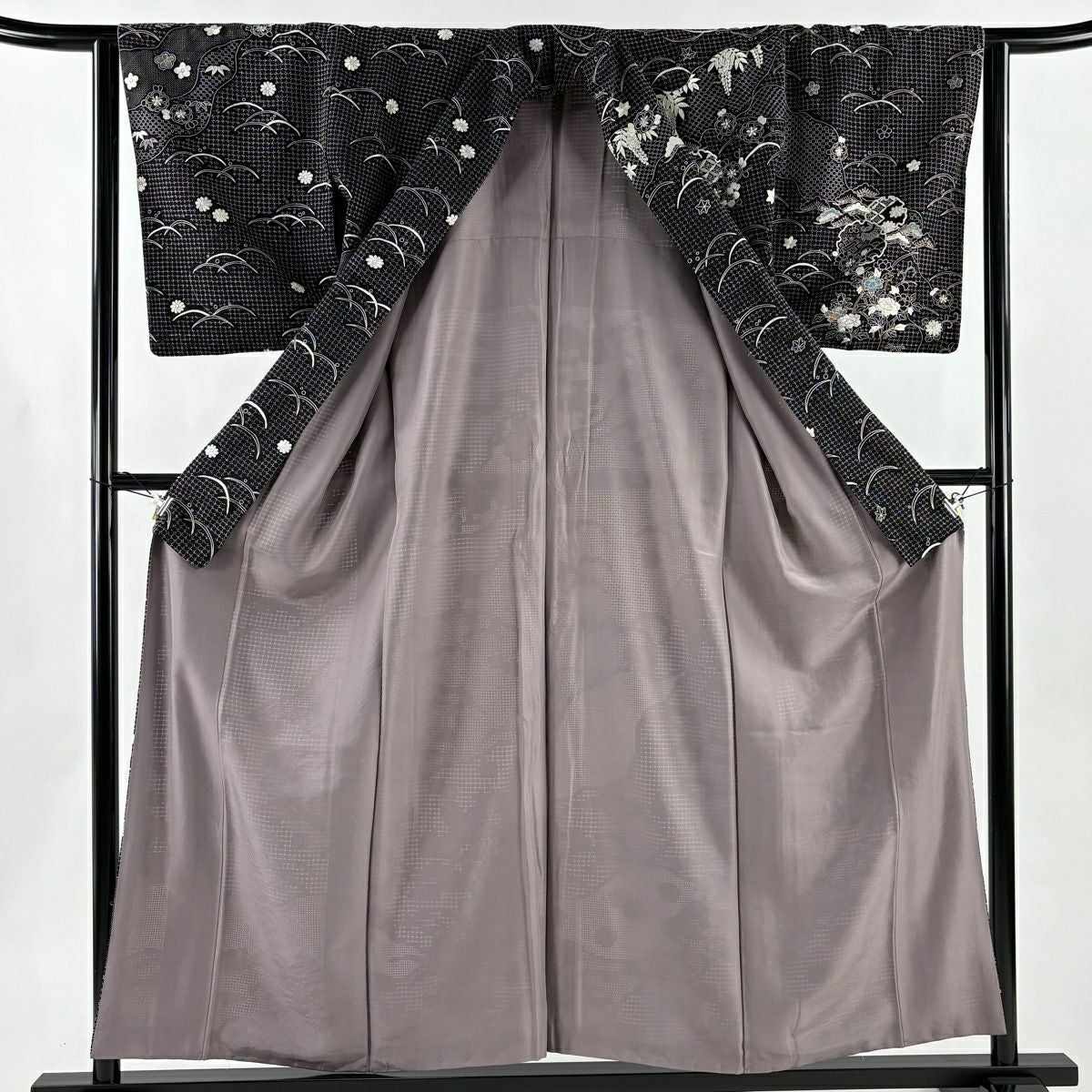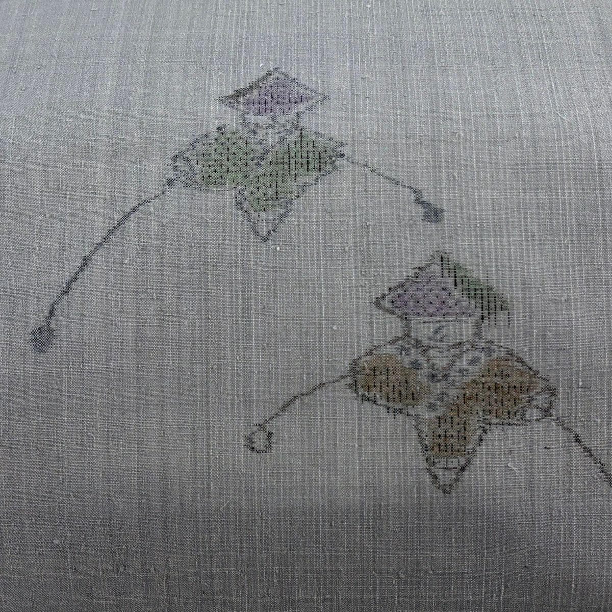 紬 身丈157.5cm 裄丈64.5cm M 袷 格子 幾何学模様 灰紫 正絹 逸品