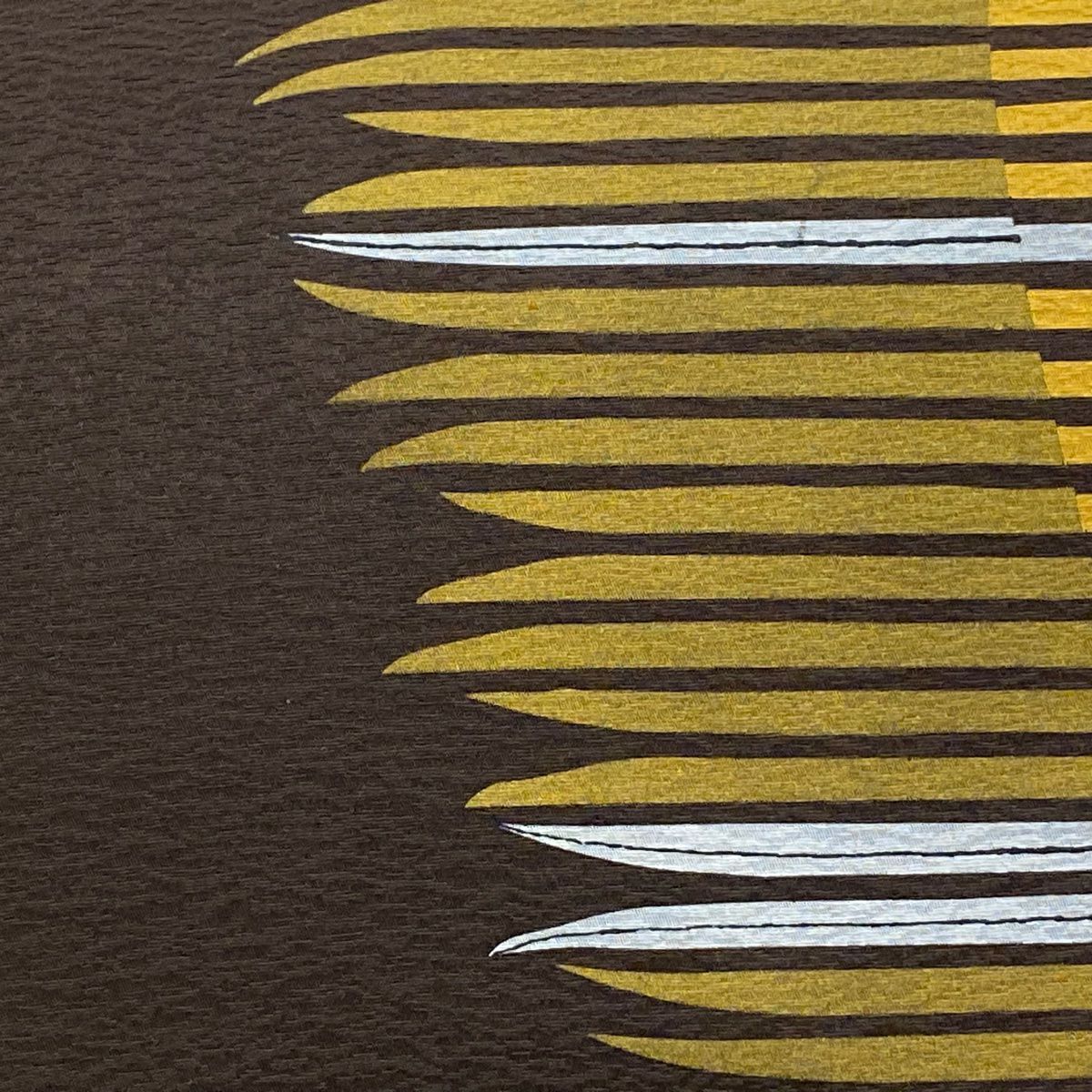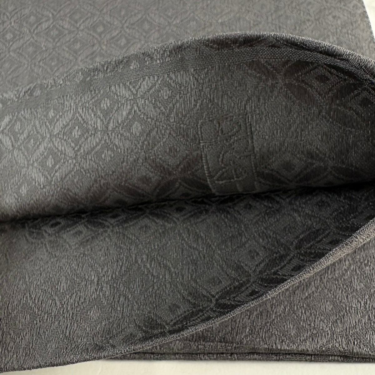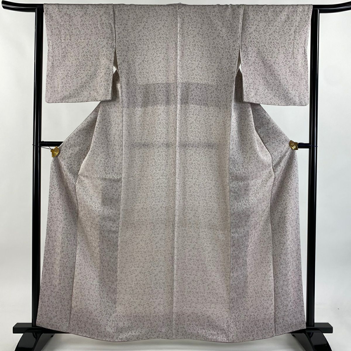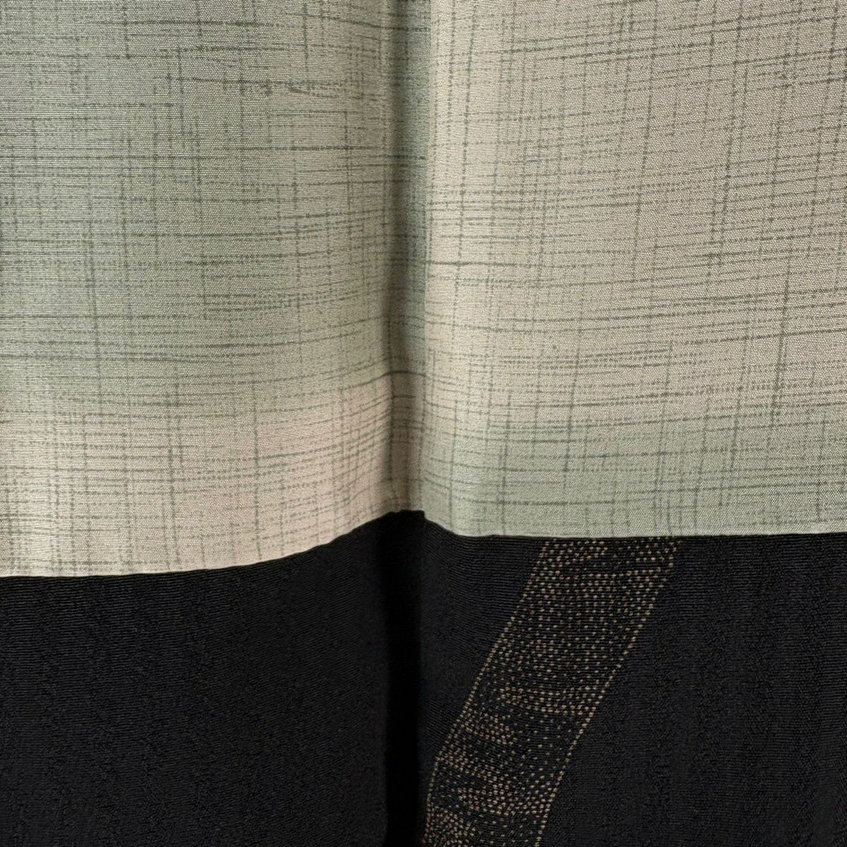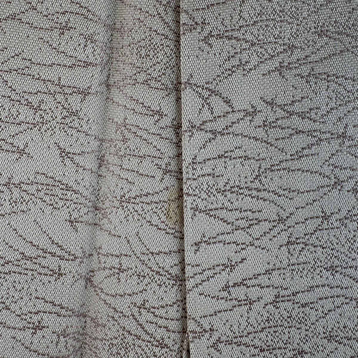 【美品】 お召 身丈167cm 裄丈66.5cm M 袷 松葉 灰白 正絹 逸品