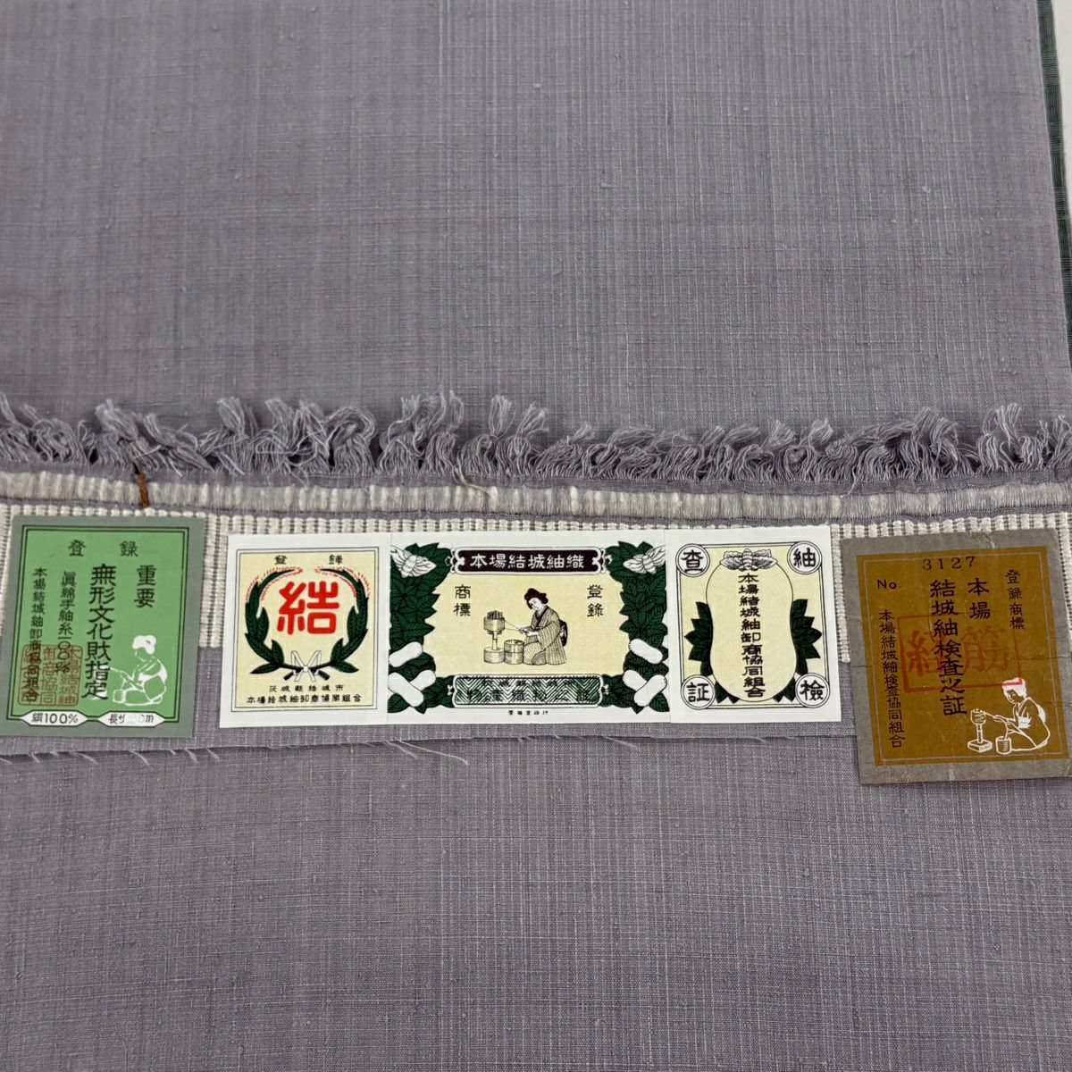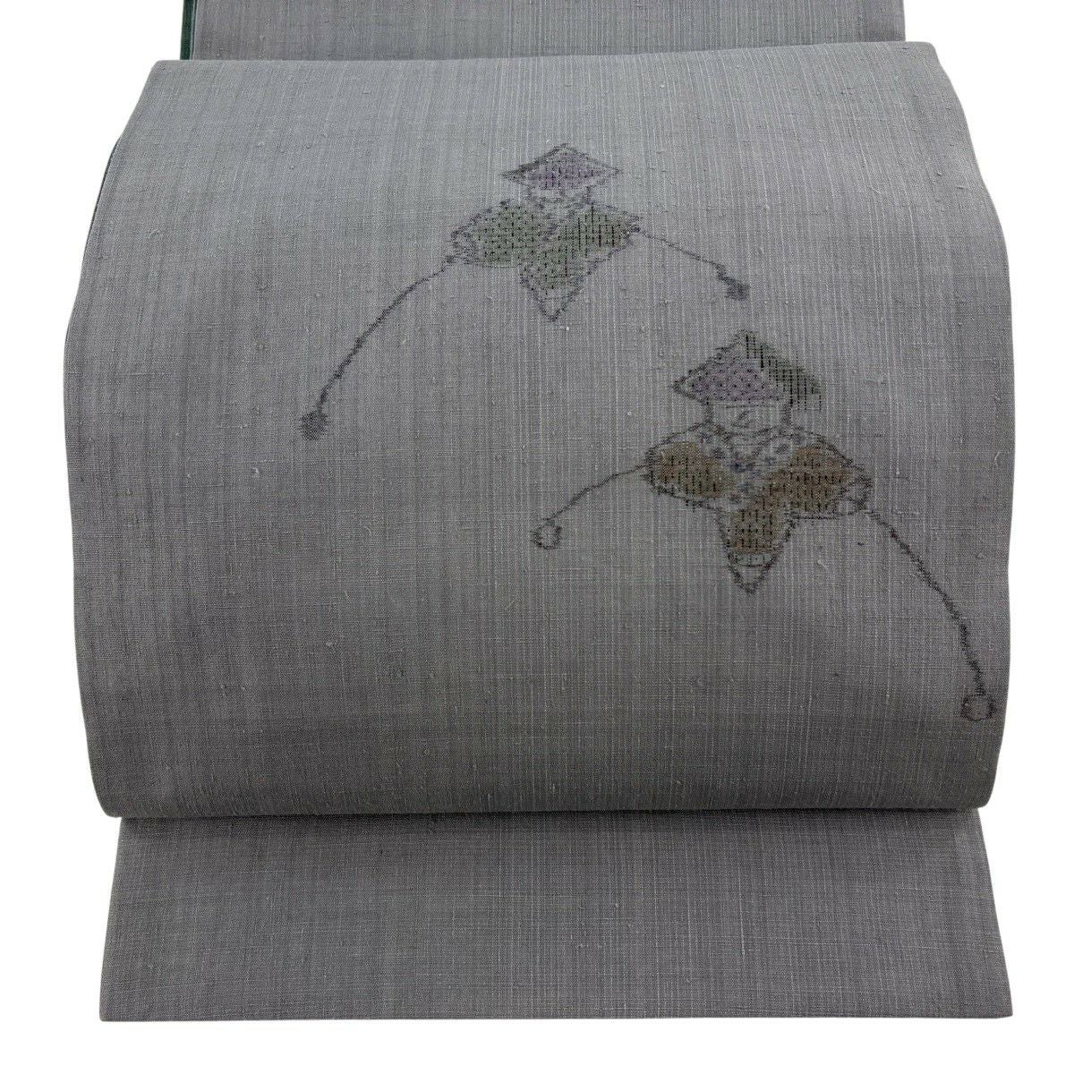 【美品】 袋帯 逸品 証紙あり 本場結城紬地 やじろべえ 灰紫 お太鼓柄 正絹