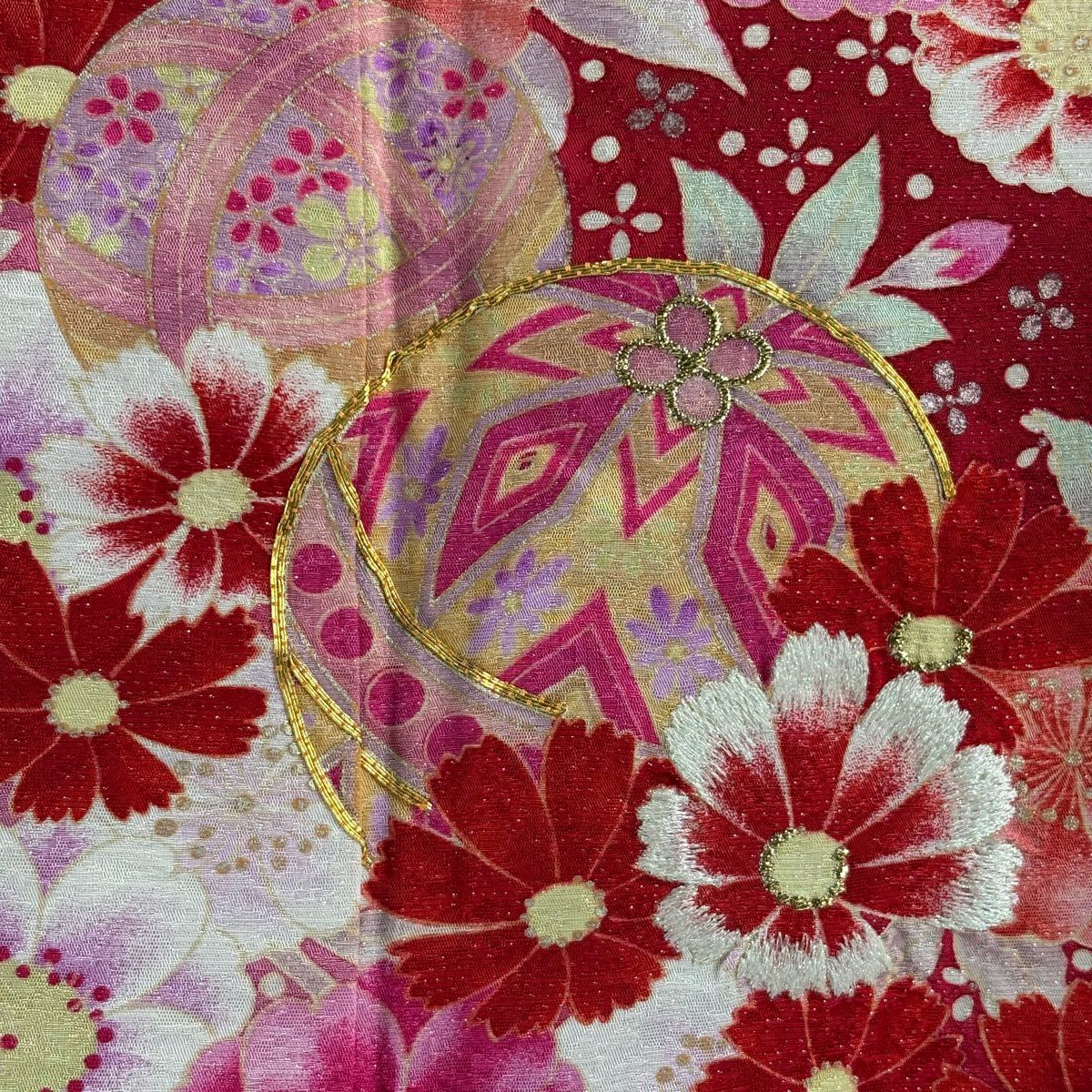 振袖 身丈166cm 裄丈66cm M 袷 手鞠 草花 金糸 銀通し 赤 正絹 逸品