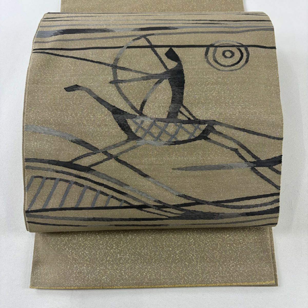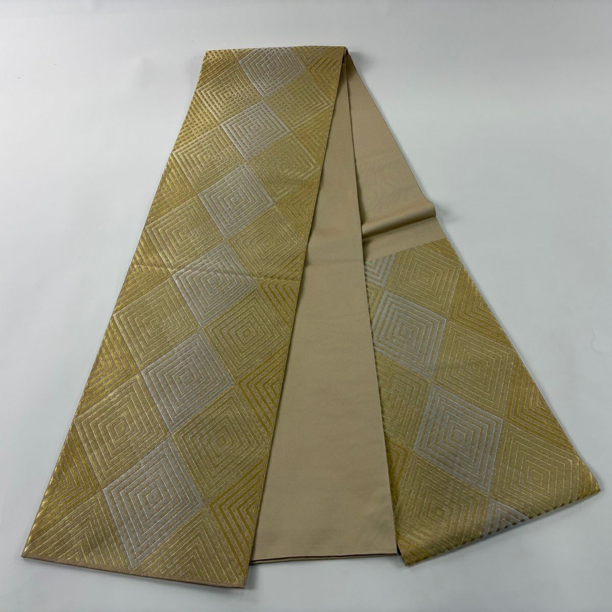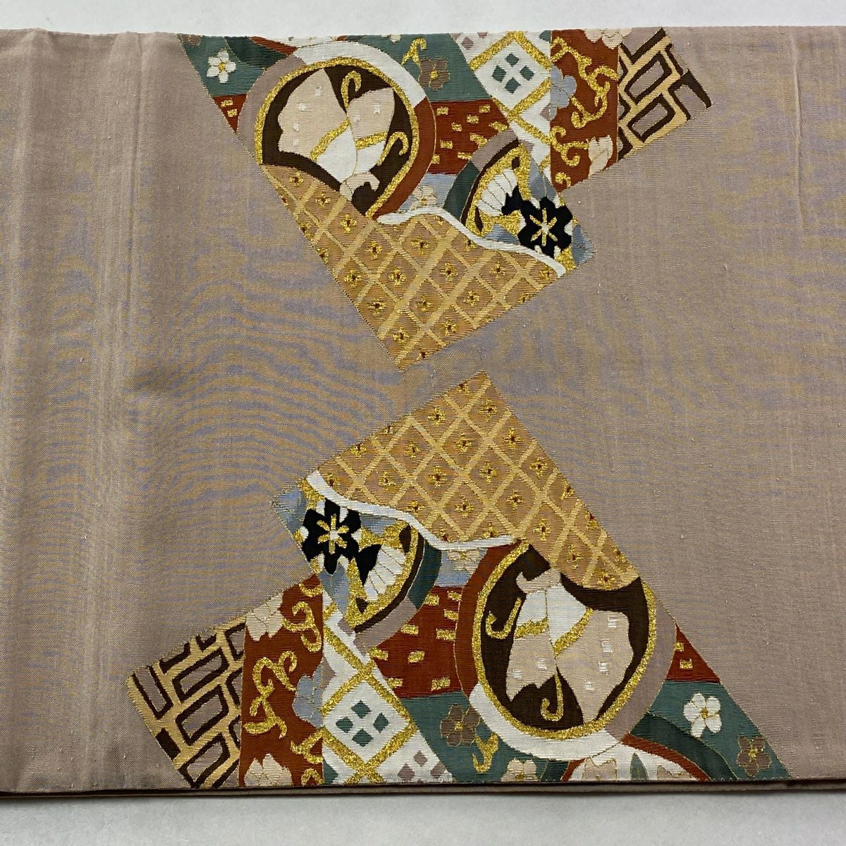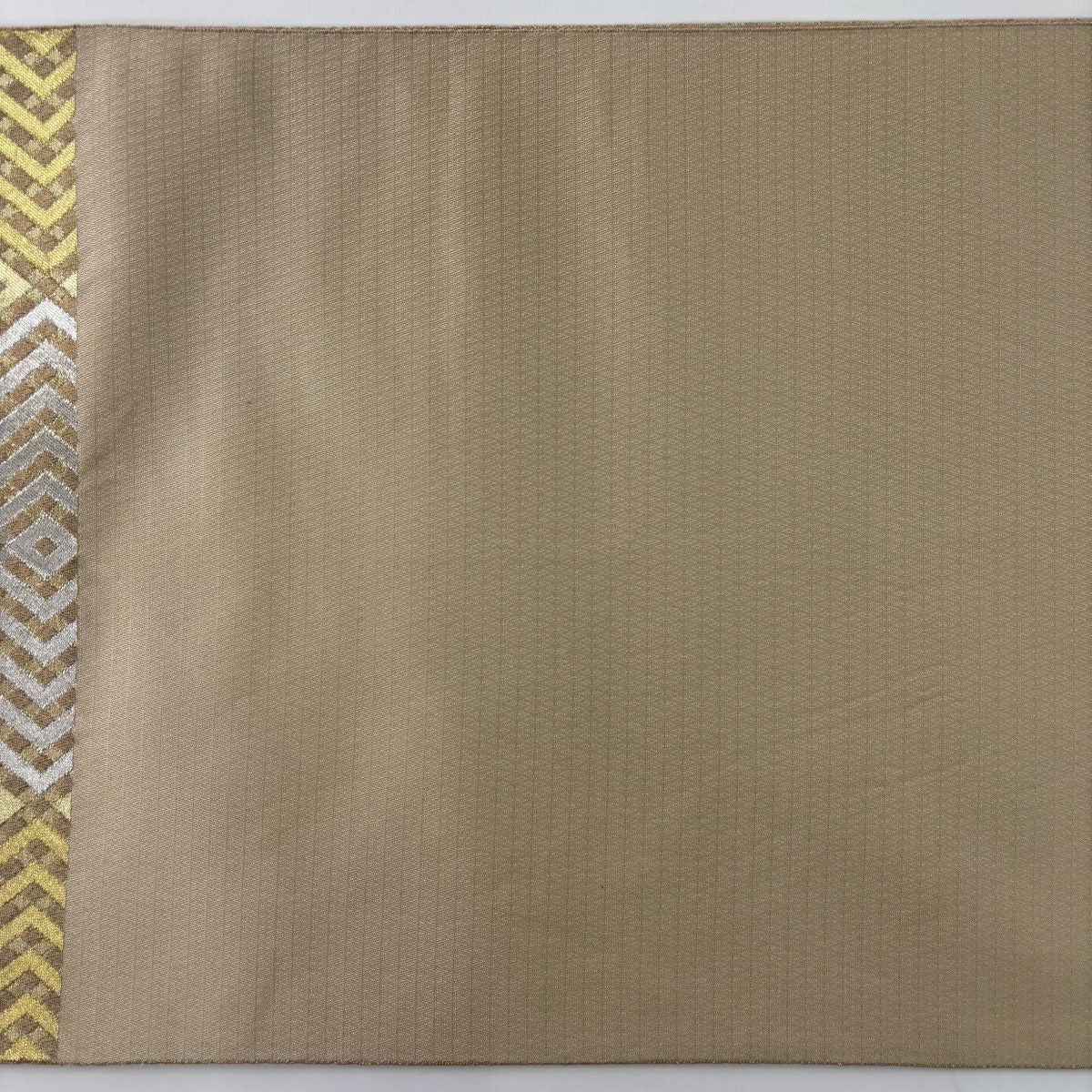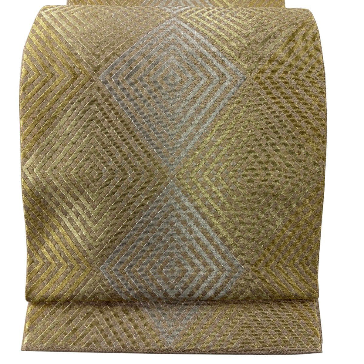 袋帯 逸品 落款あり 証紙あり 小森久 博多織 幾何学 ベージュ 全通 正絹